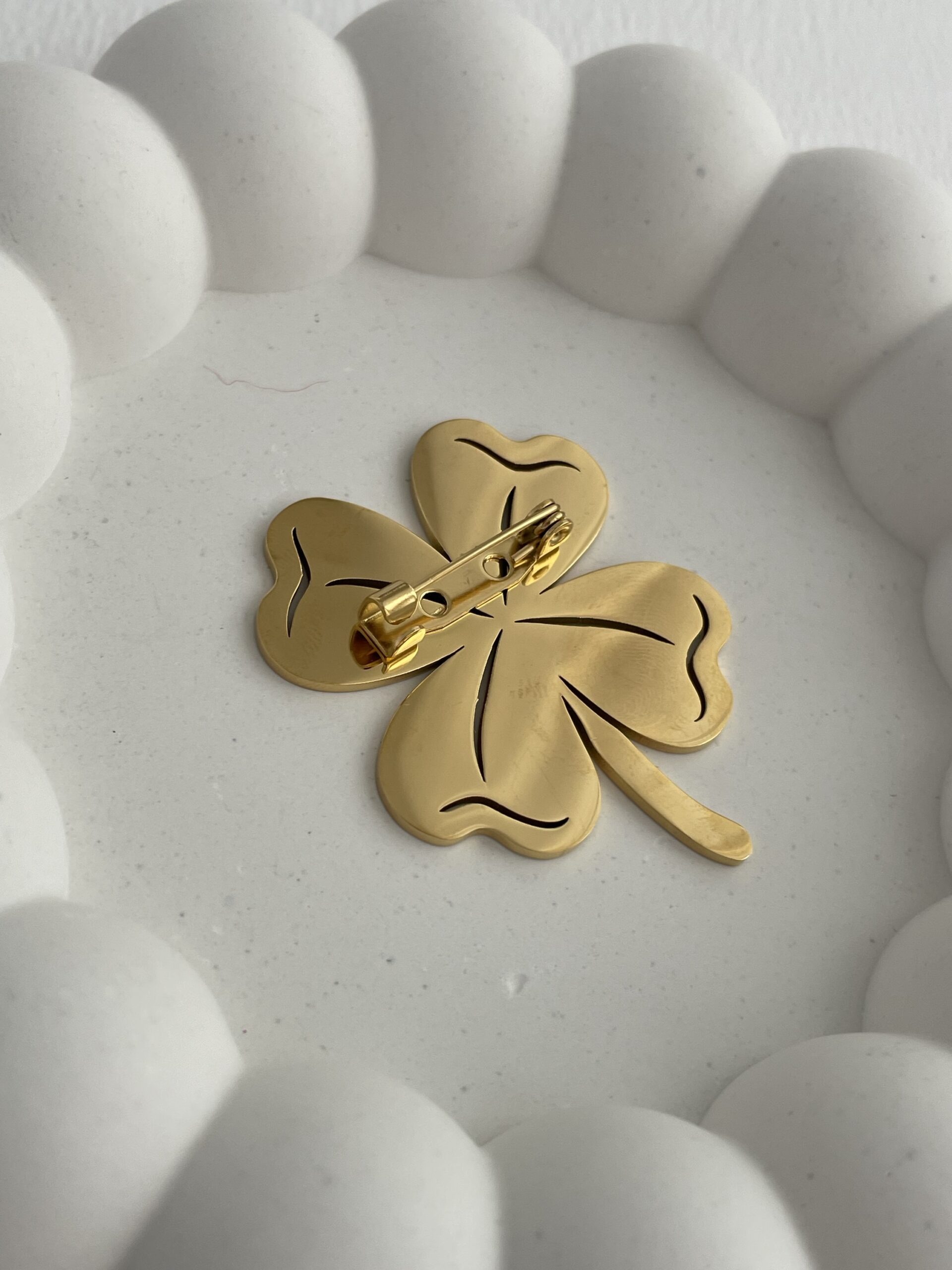 Özel Seri Yonca Tasarım Gold Plaka Broş
