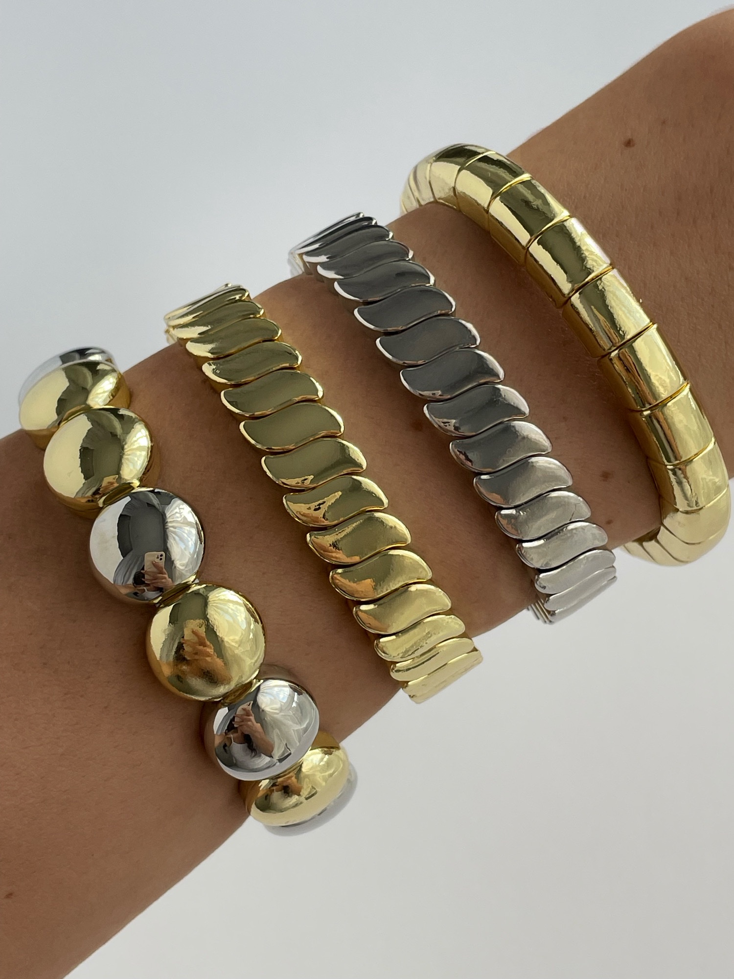 Özel Seri Yuvarlak Desen Lastikli Gold Gümüş Bileklik