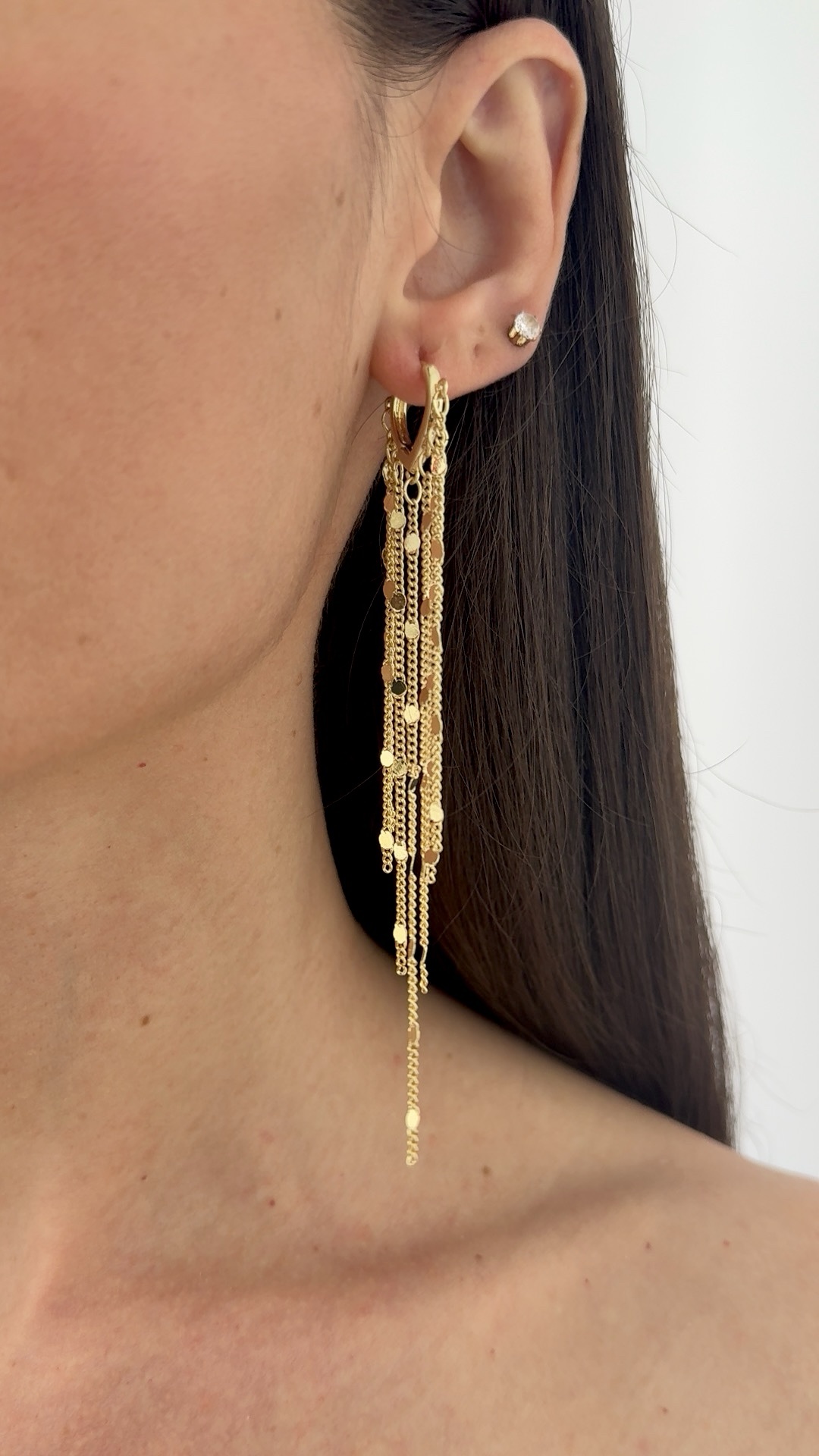 Özel Seri Yuvarlak Pul Tasarım Sallantılı Zincir Gold Küpe