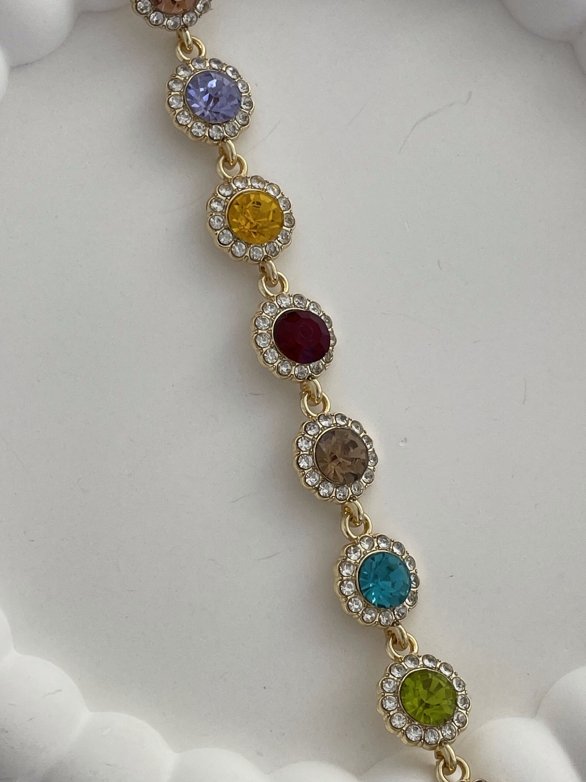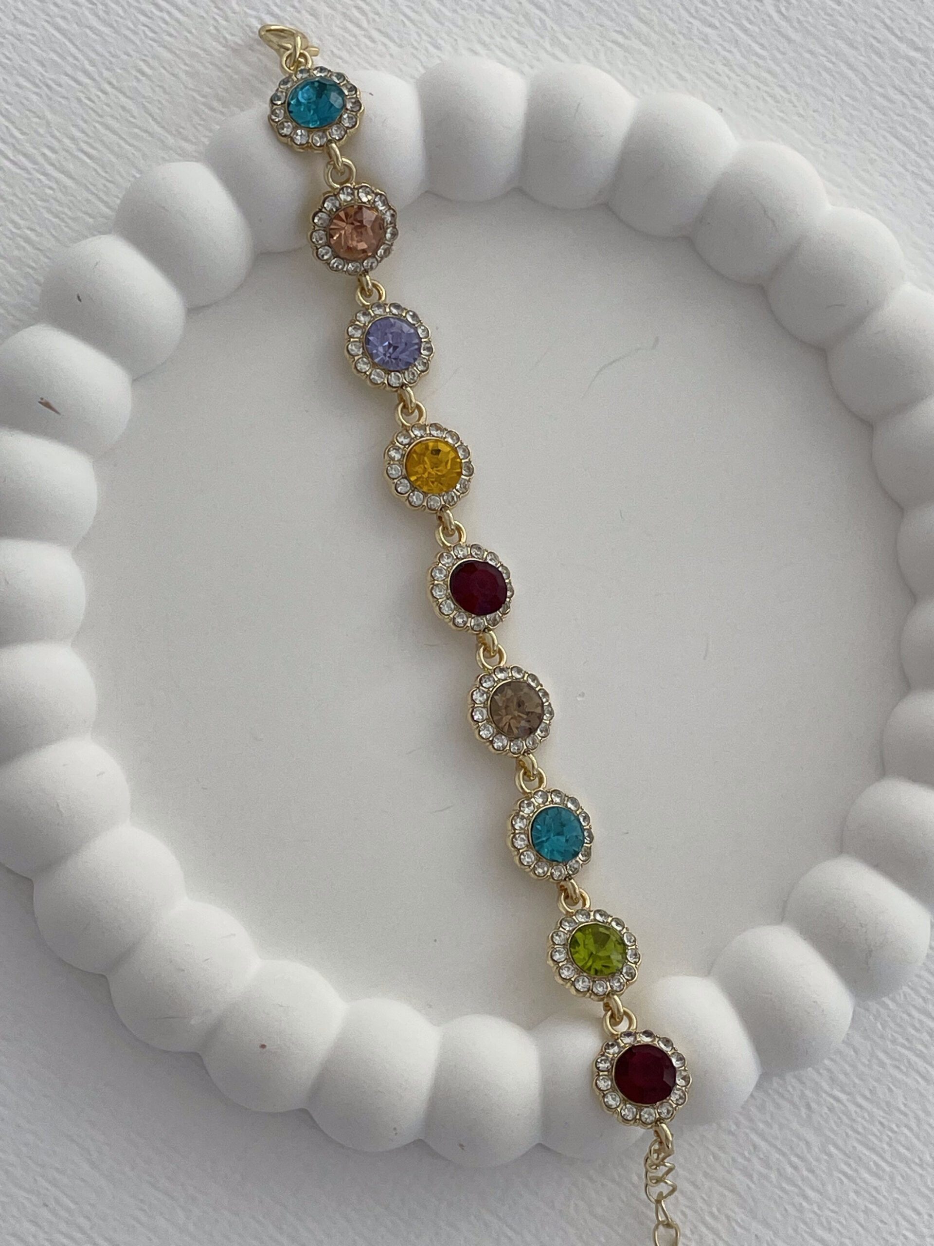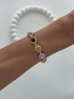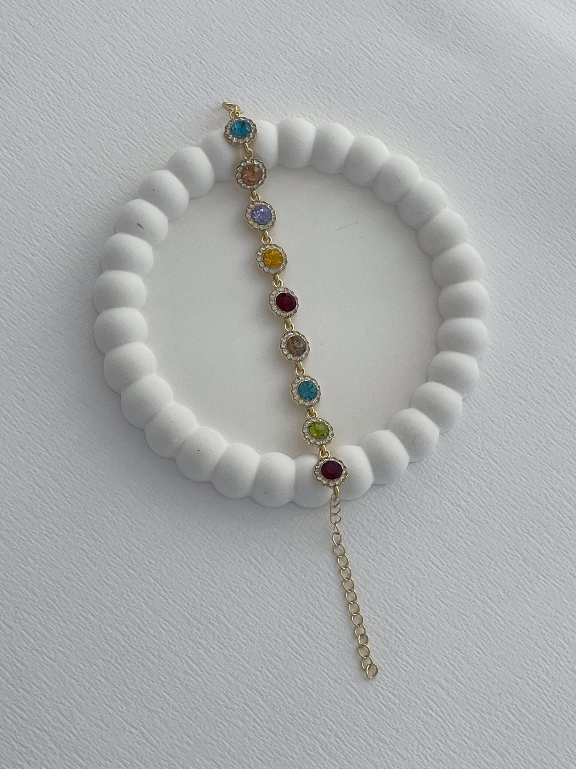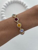 Özel Seri Yuvarlak Tasarım Renkli Baget Taş Detay Gold Bileklik