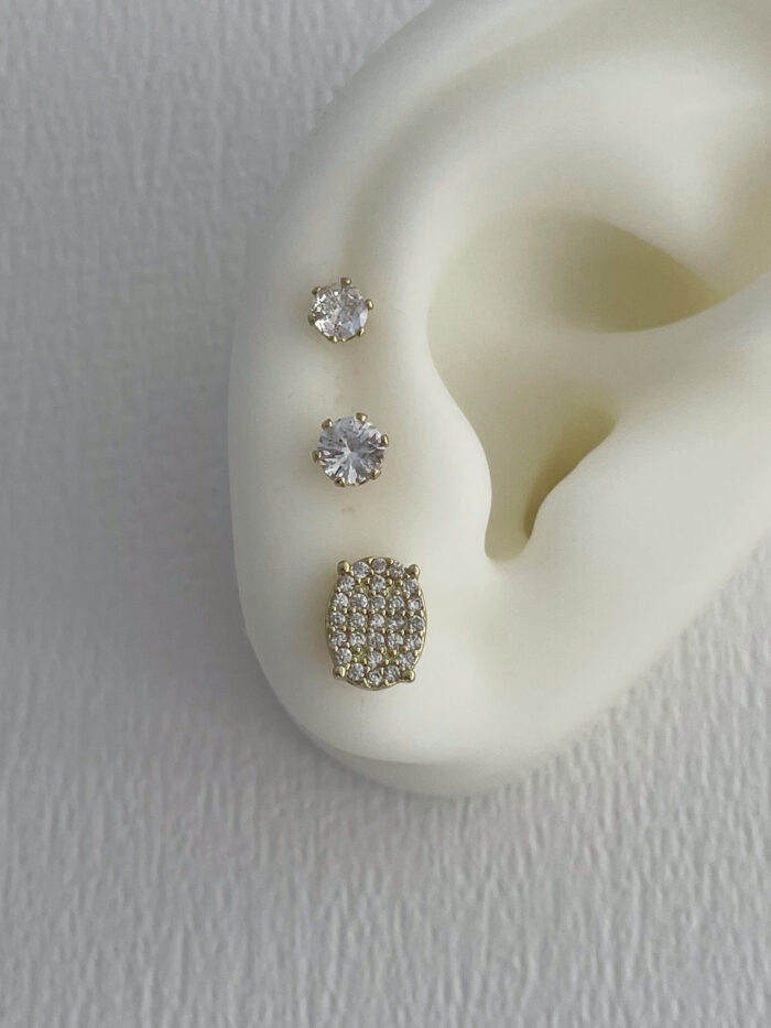 Özel Seri Yuvarlak Tasarım Zirkon Taşlı Gold Üçlü Küpe Seti