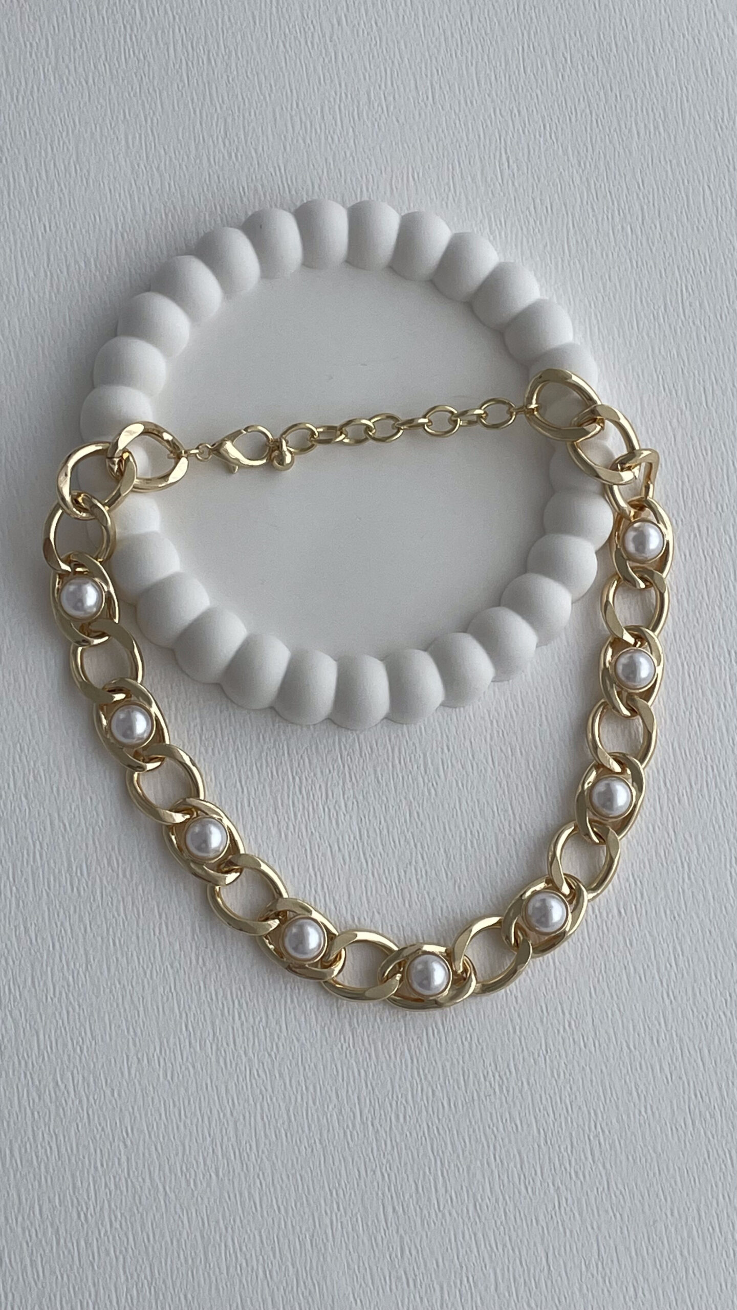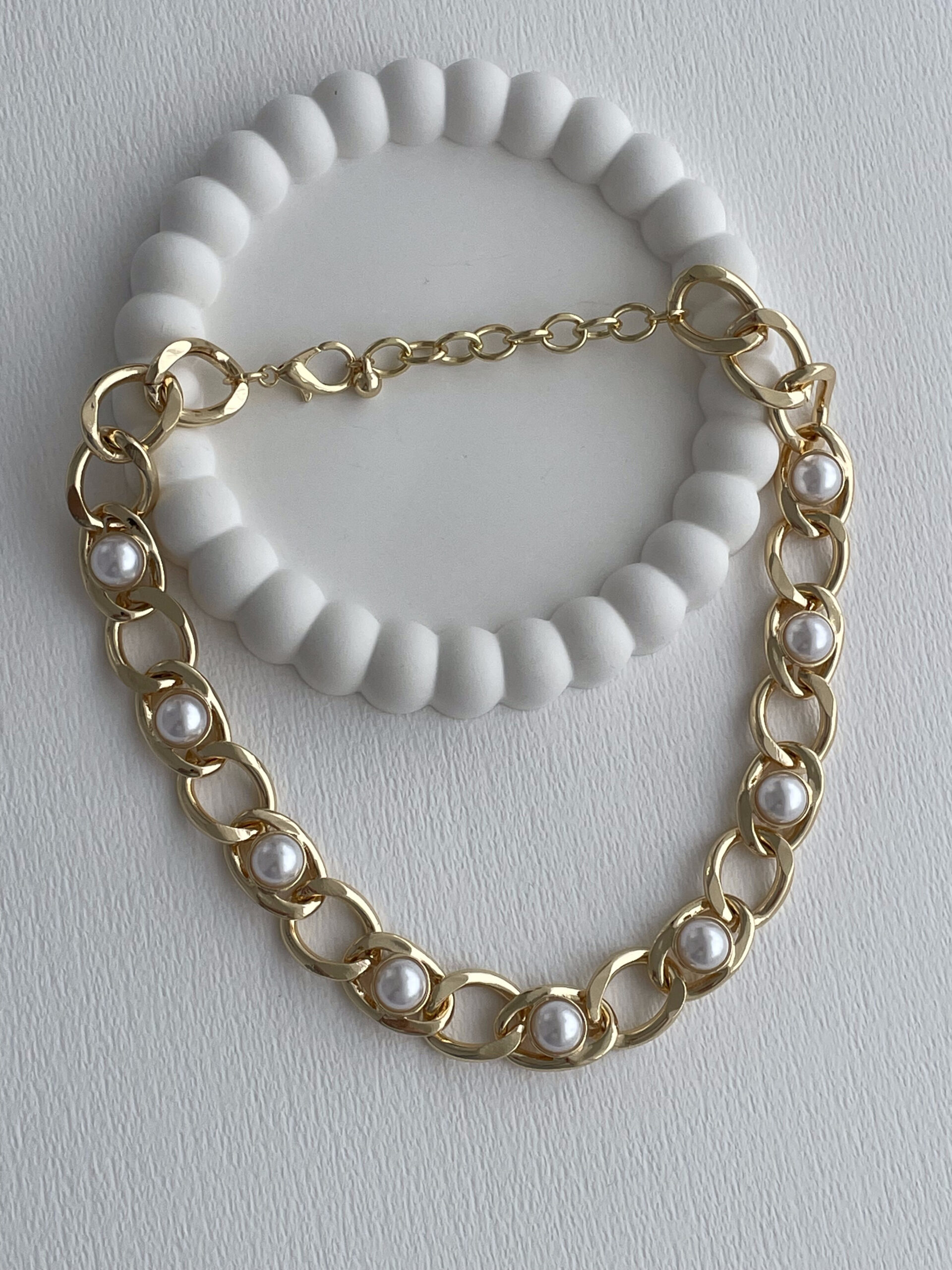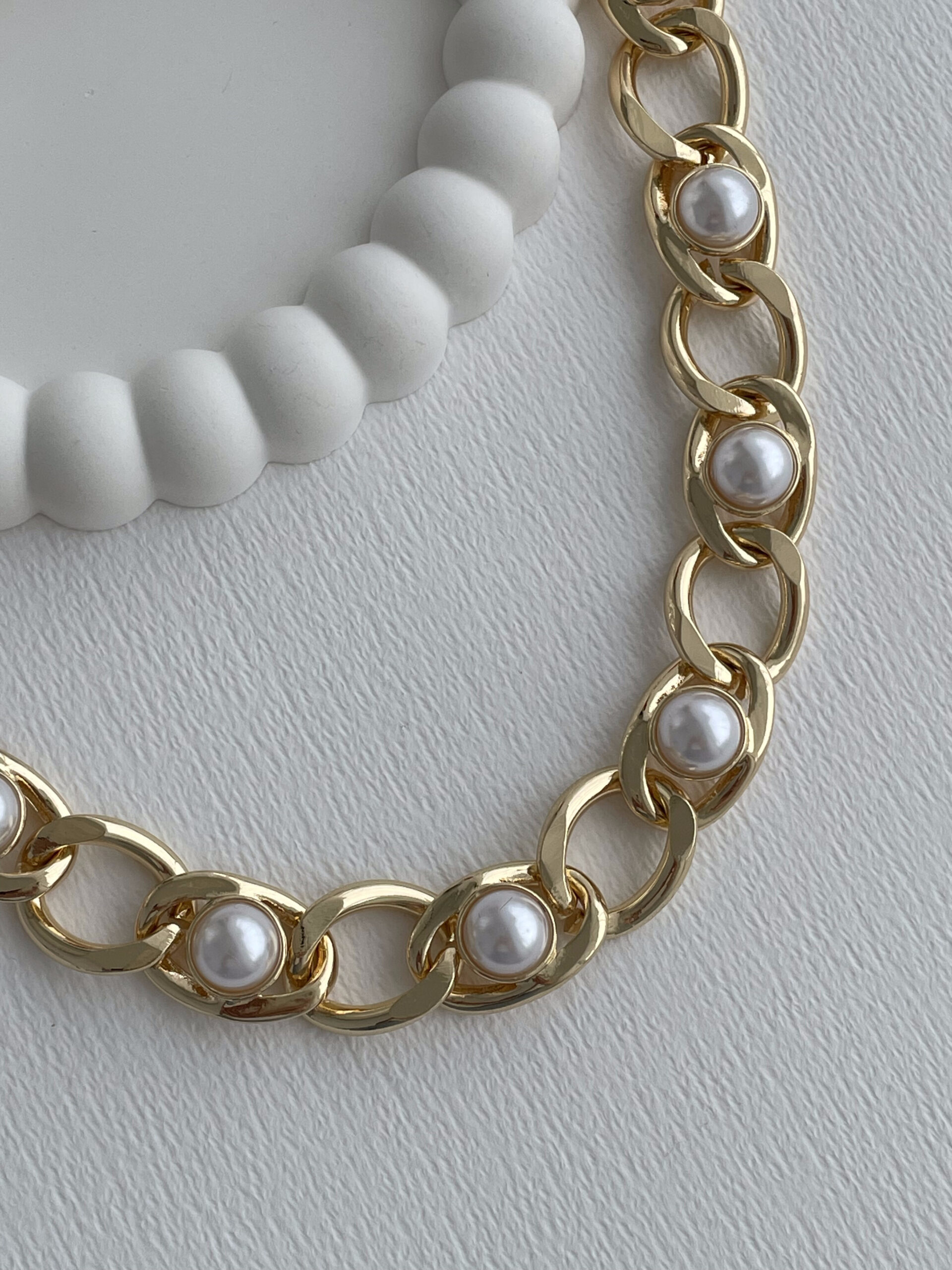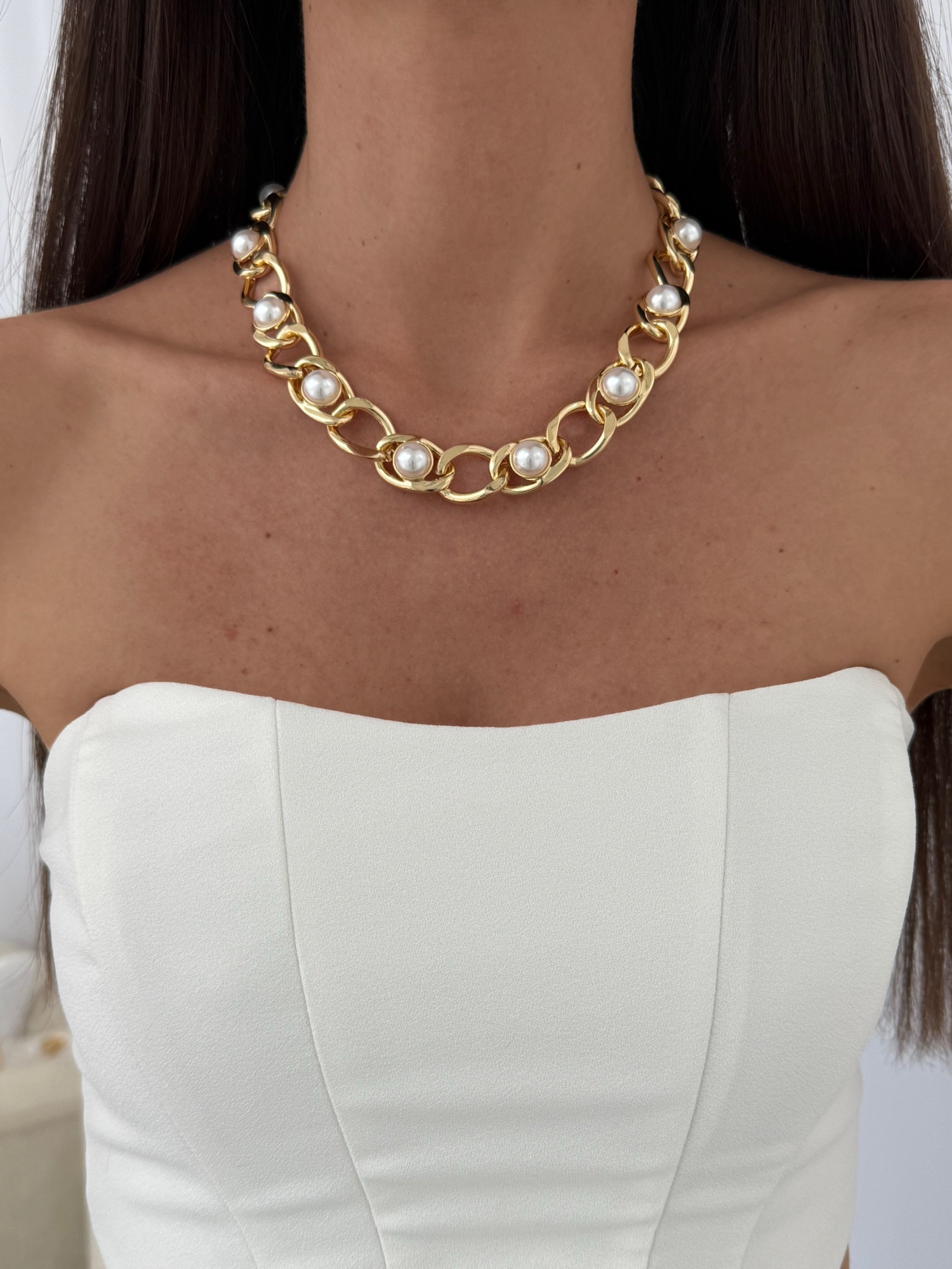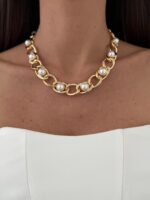 Özel Seri Zincir Tasarım İnci Detay Gold Kolye