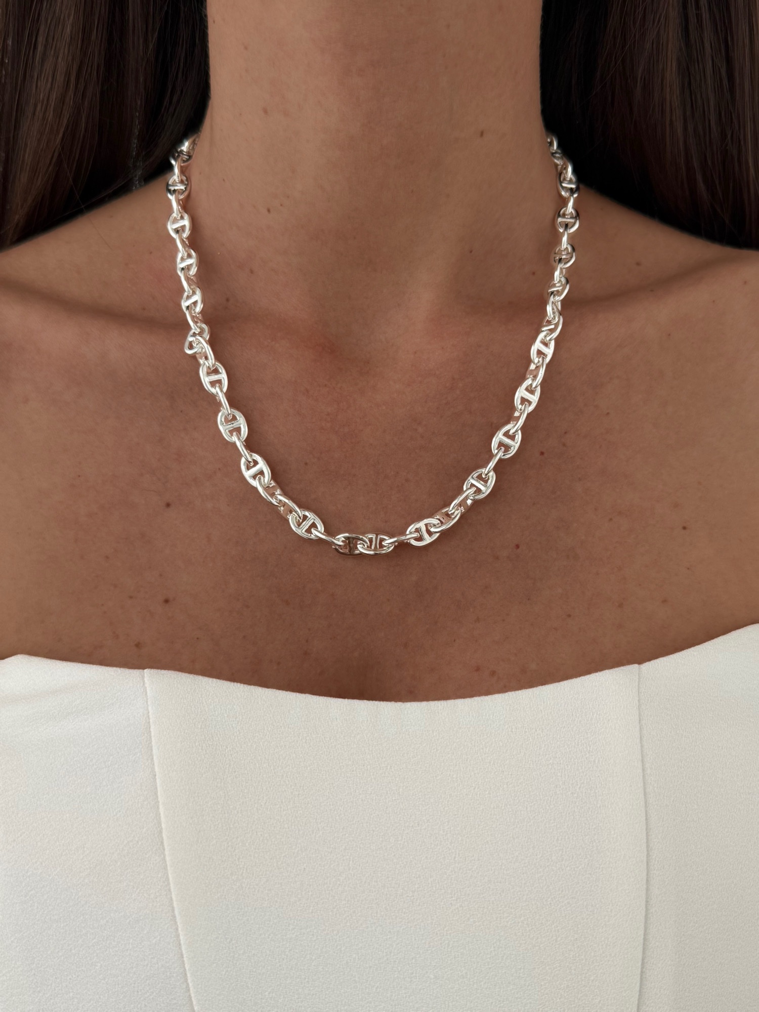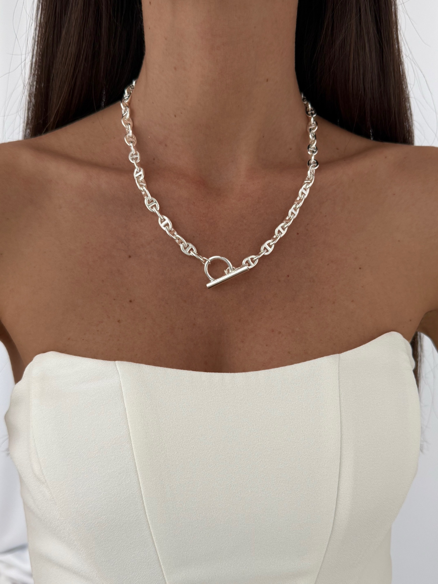 Özel Seri Zincir Tasarım Marka Model Gümüş İnce Kolye