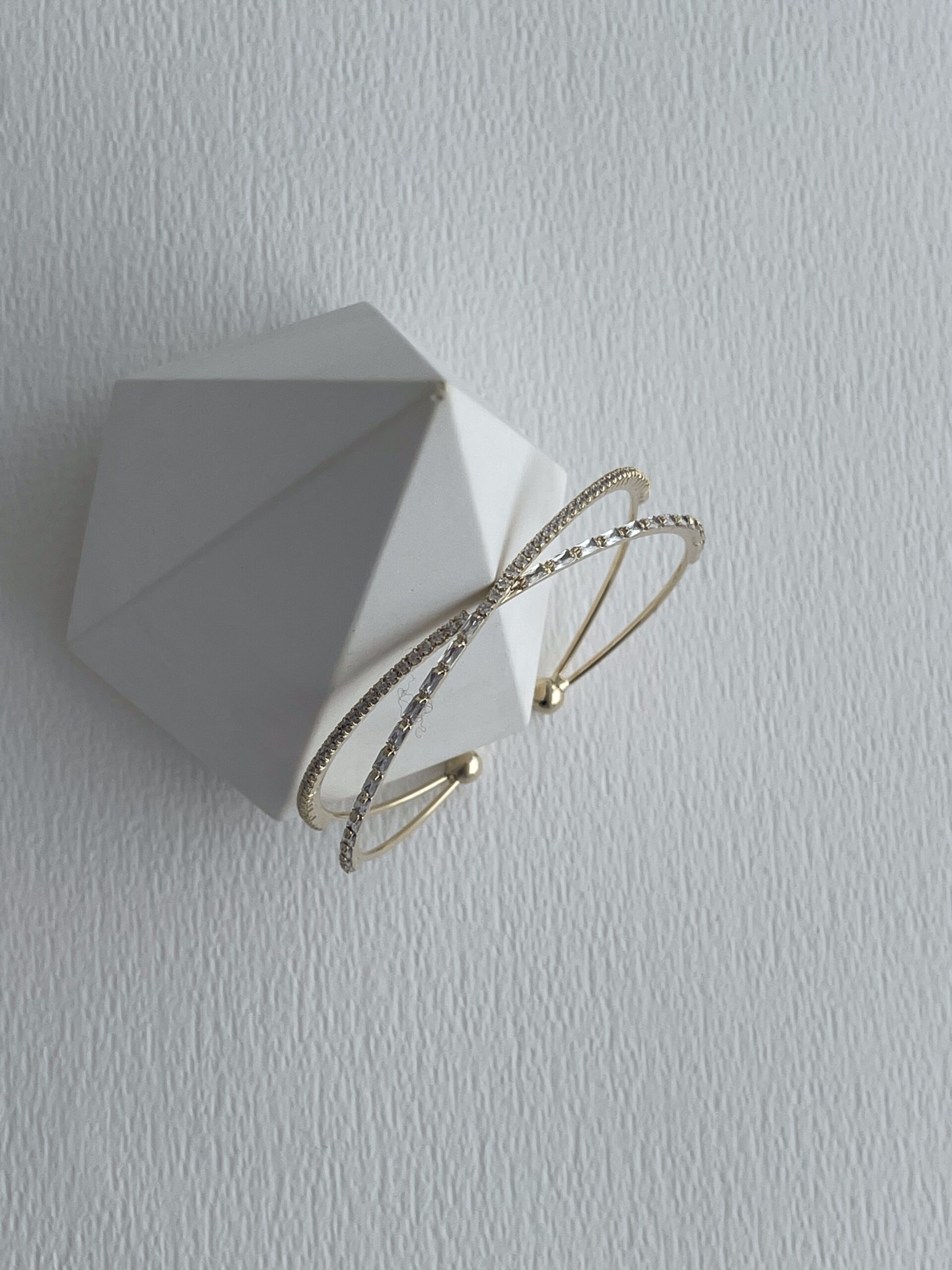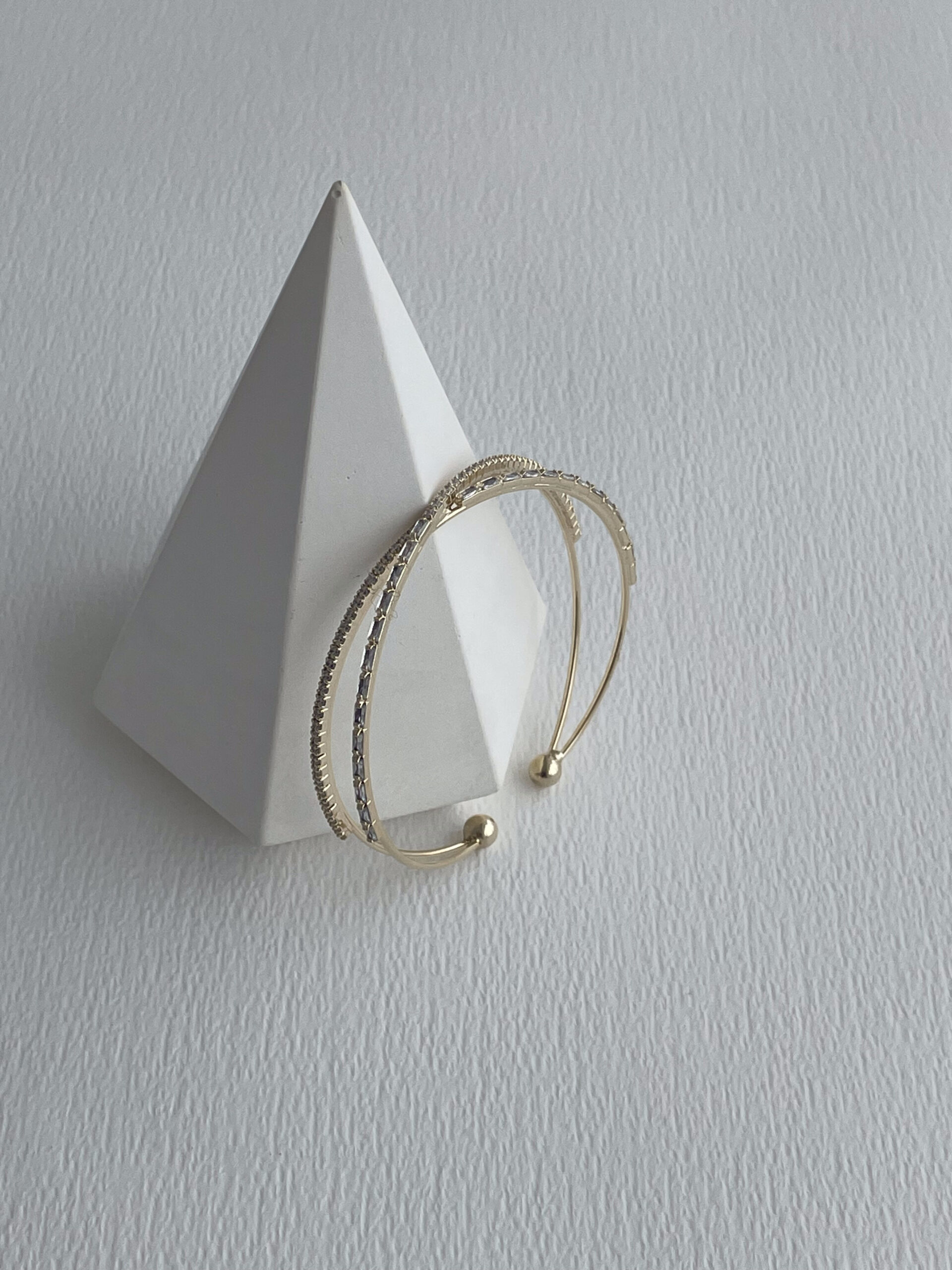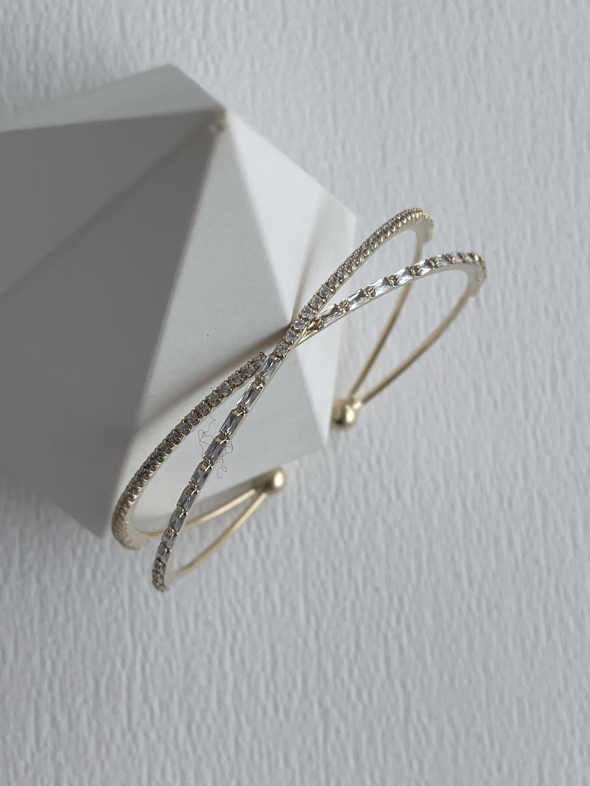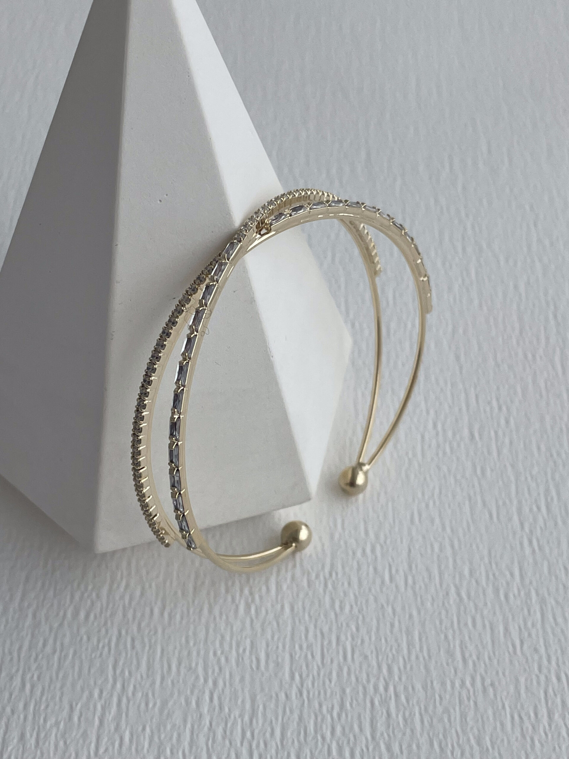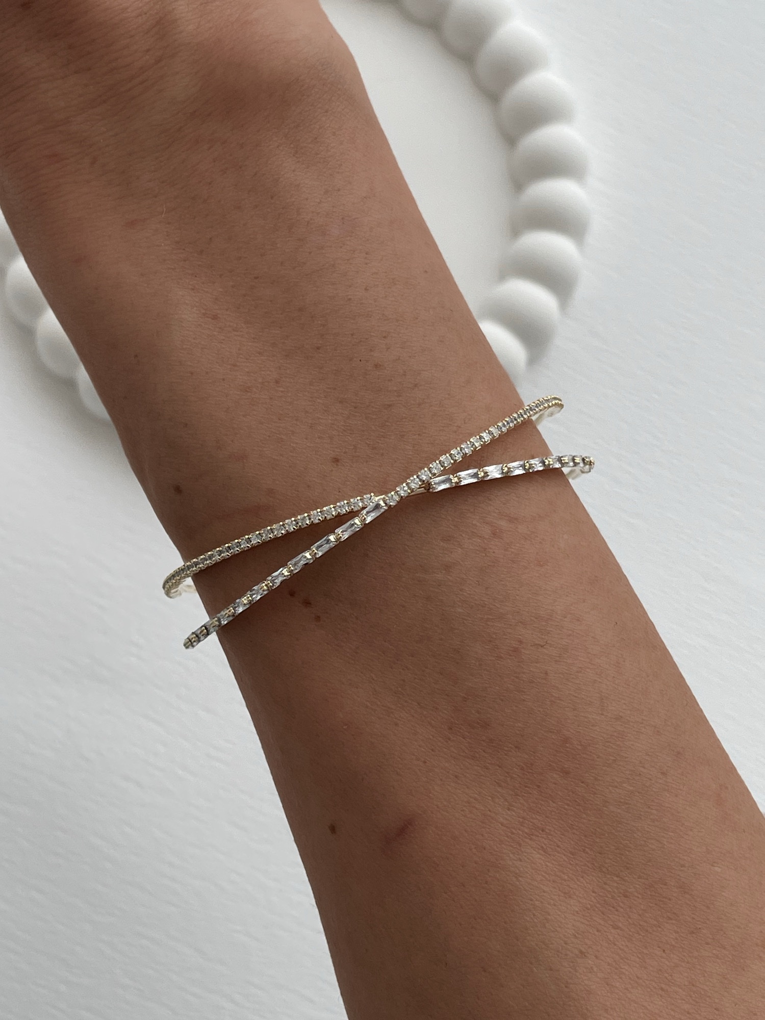 Özel Seri Zirkon & Baget Taşlı Çapraz Tasarım Gold Bileklik