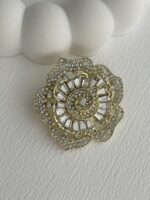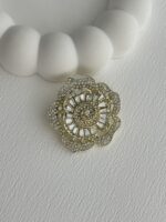 Özel Seri Zirkon & Baget Taşlı Çiçek Tasarım Gold Broş