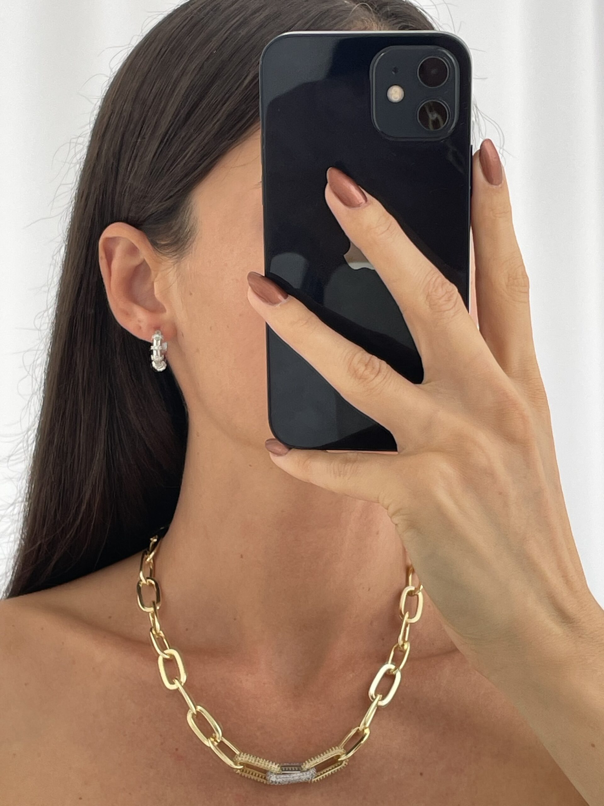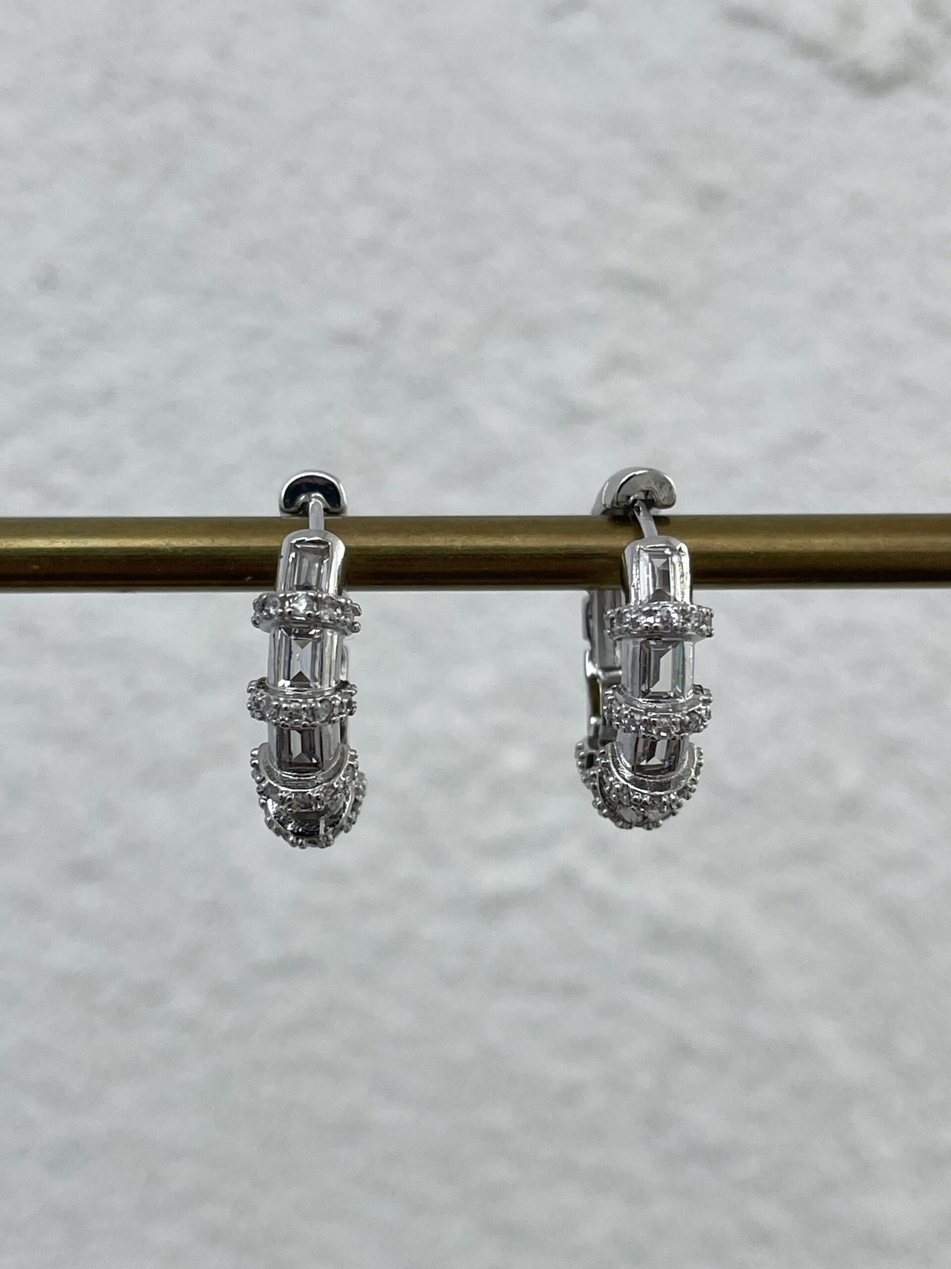 Özel Seri Zirkon & Baget Taşlı Gümüş Halka Küpe