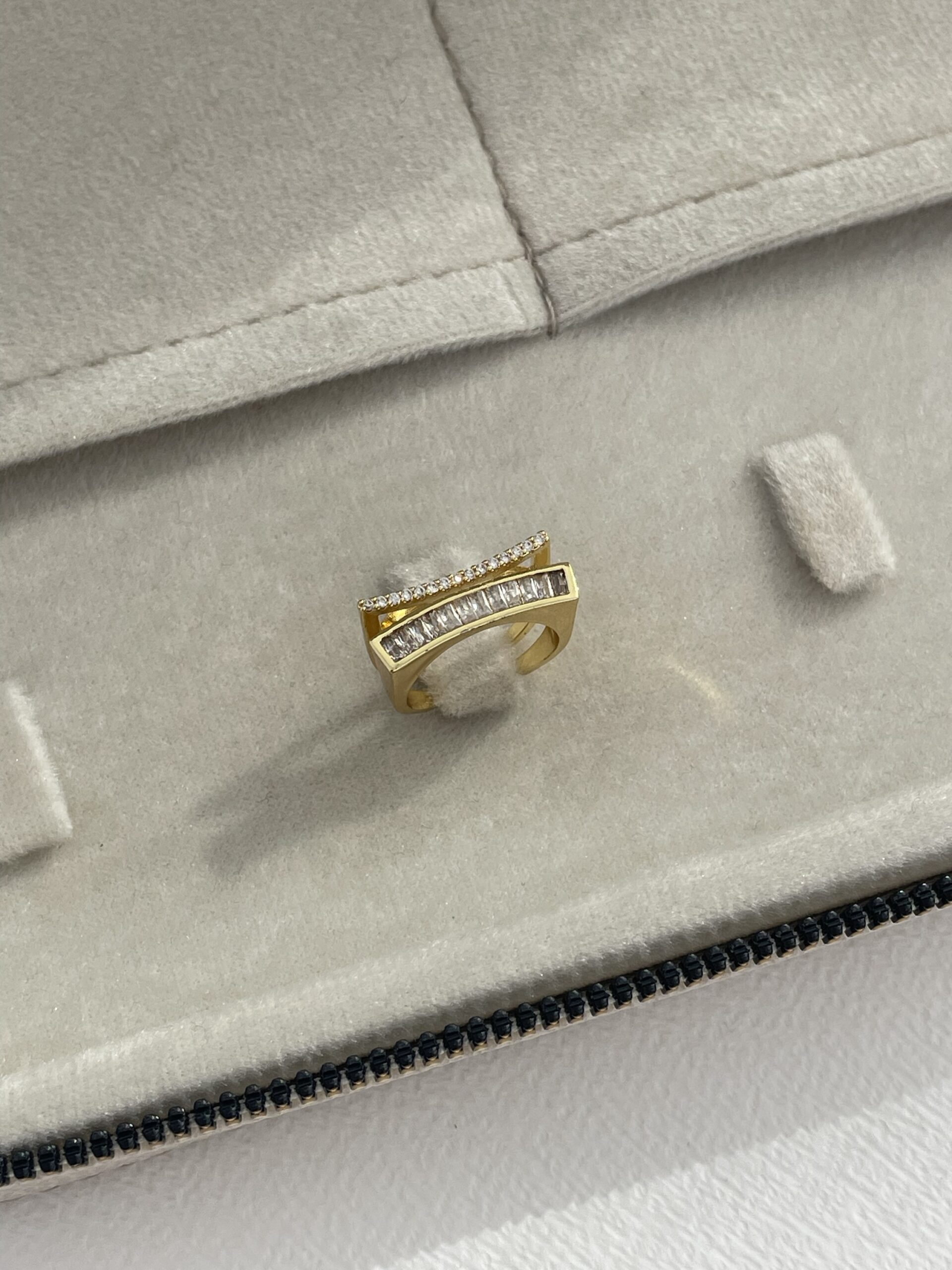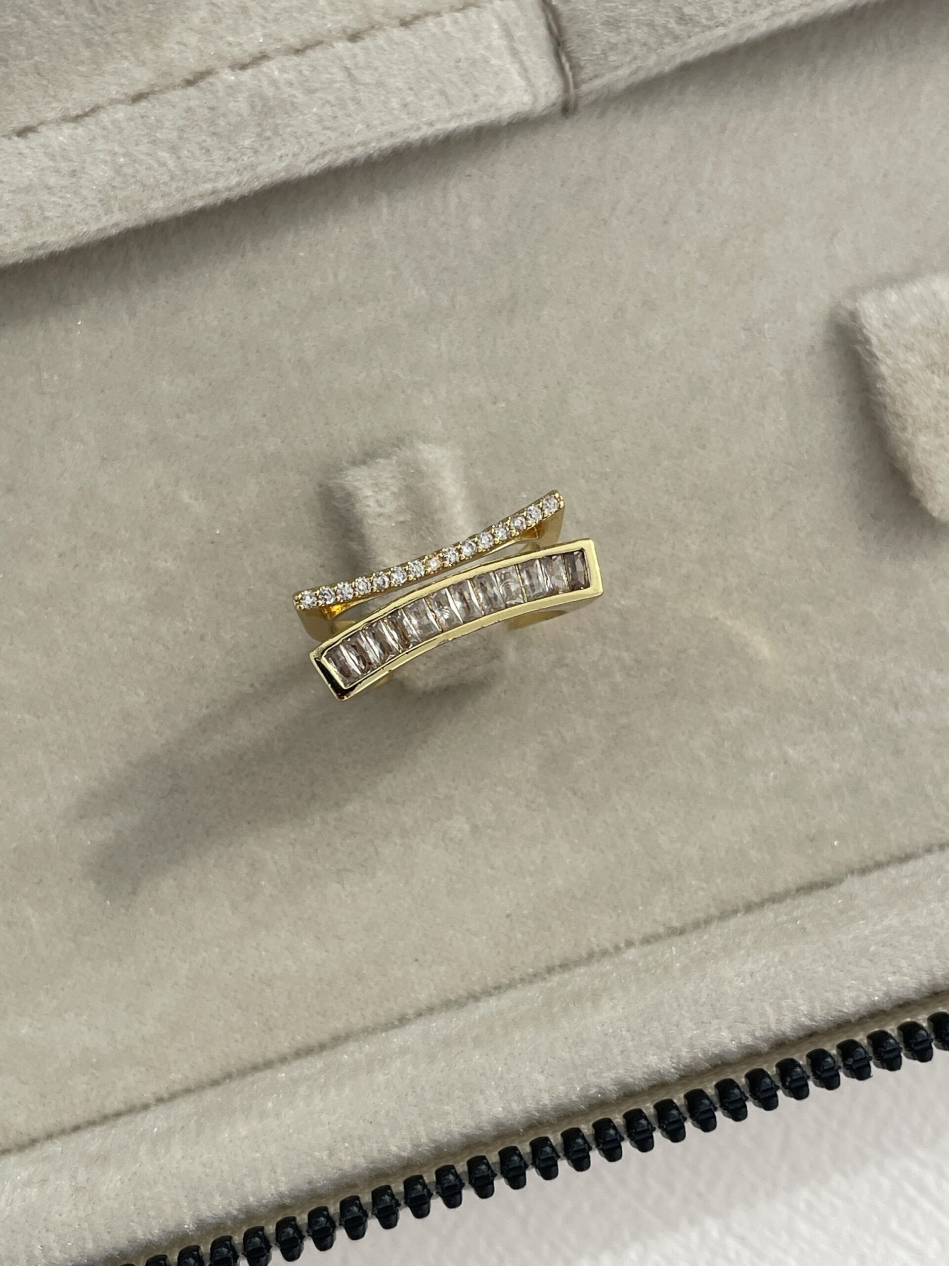 Özel Seri Zirkon & Baget Taşlı İkili Gold Ayarlanabilir Yüzük