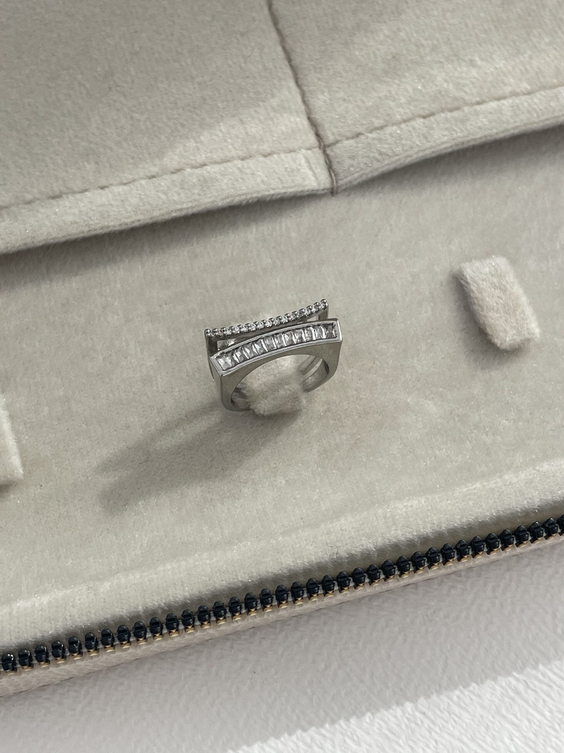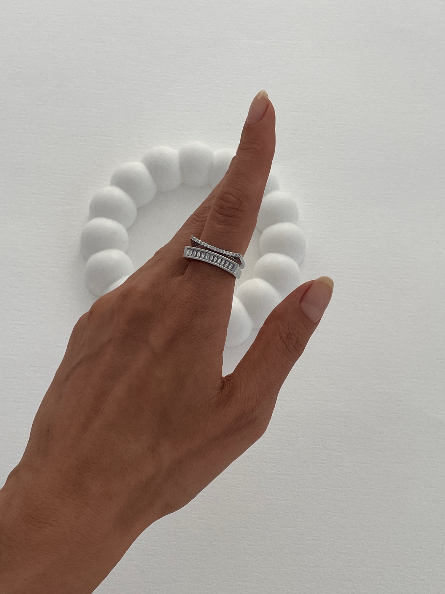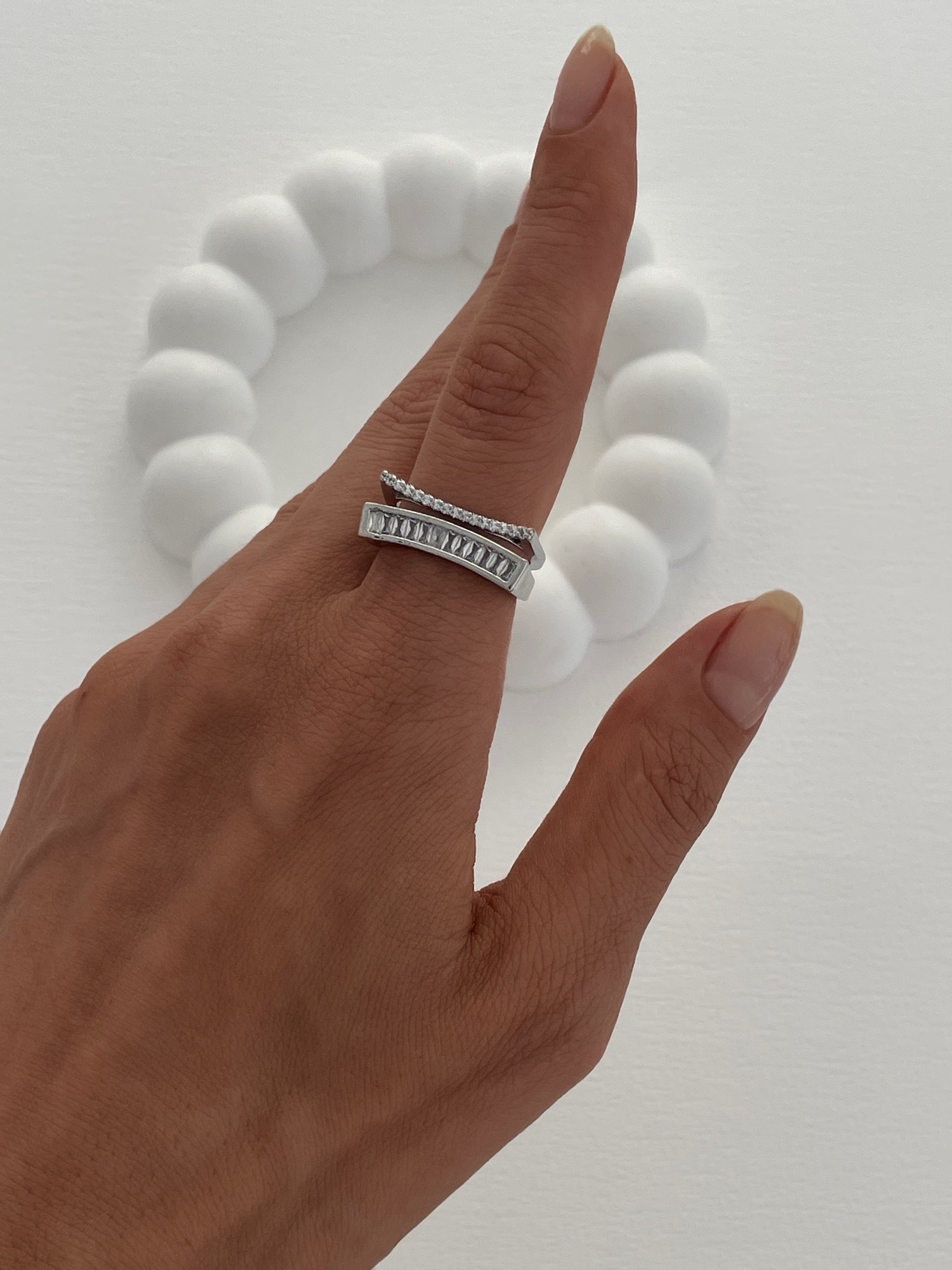 Özel Seri Zirkon & Baget Taşlı İkili Gümüş Ayarlanabilir Yüzük