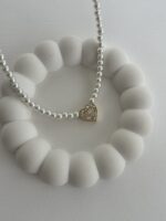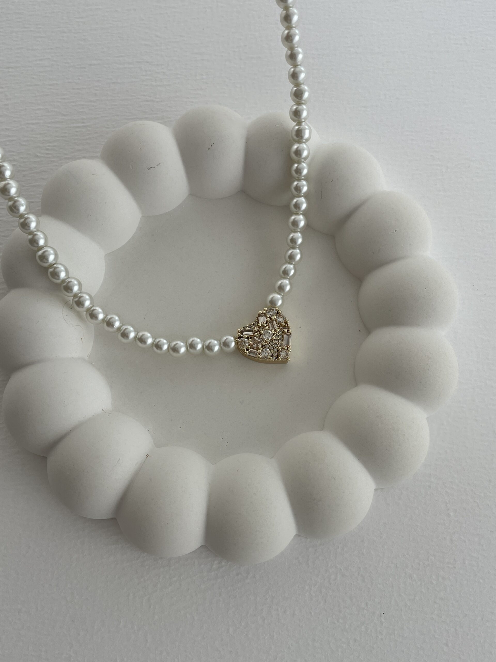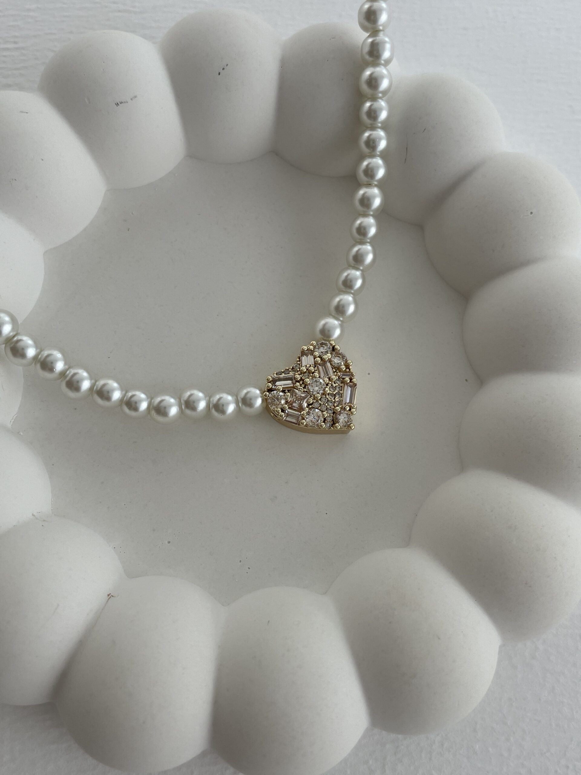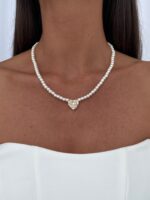 Özel Seri Zirkon & Baget Taşlı Kalp Tasarım İnci Kolye