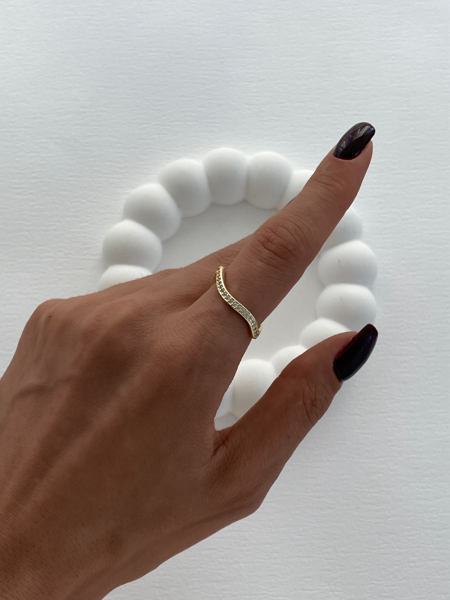 Özel Seri Zirkon Taşlı S Tasarım Ayarlanabilir Gold Yüzük