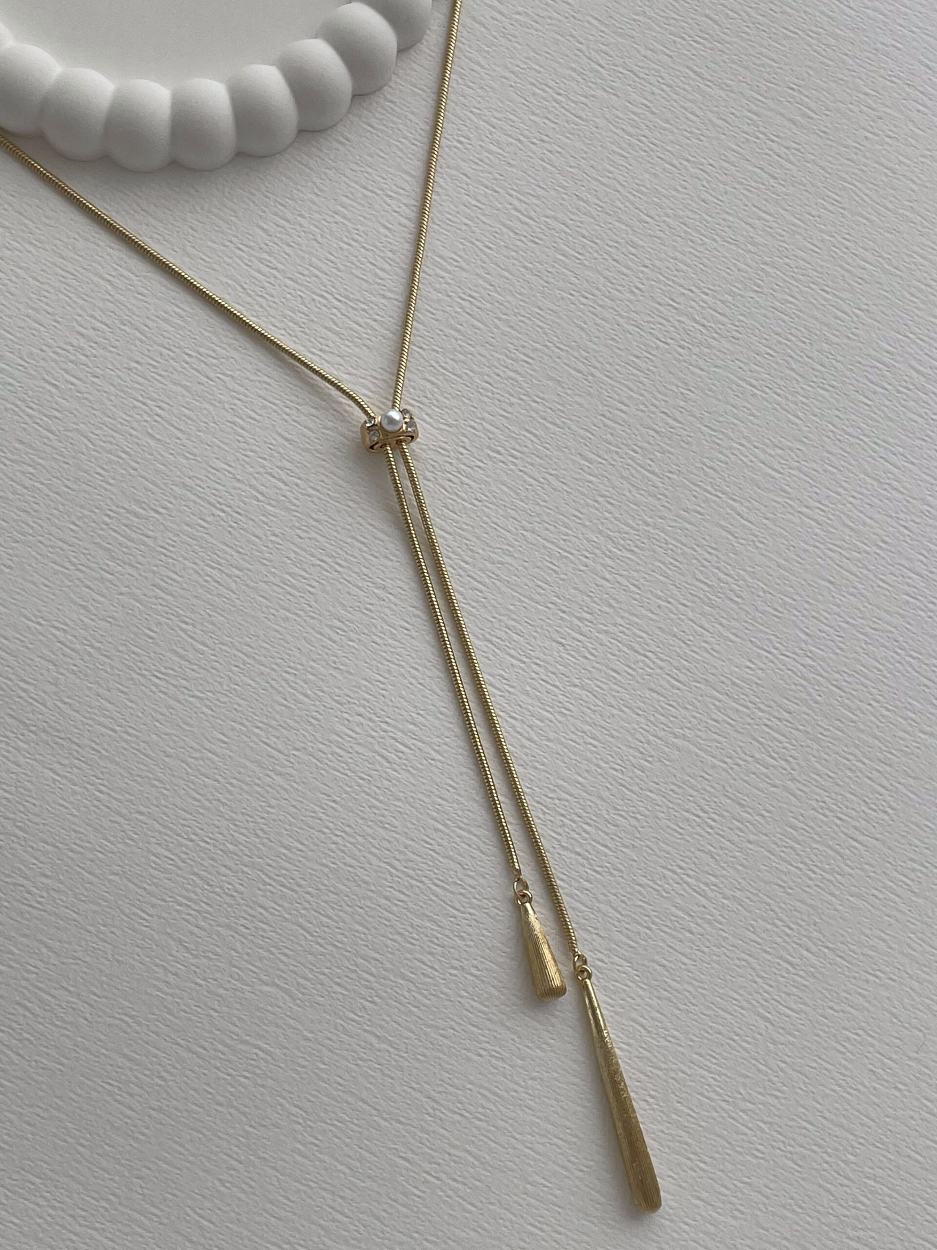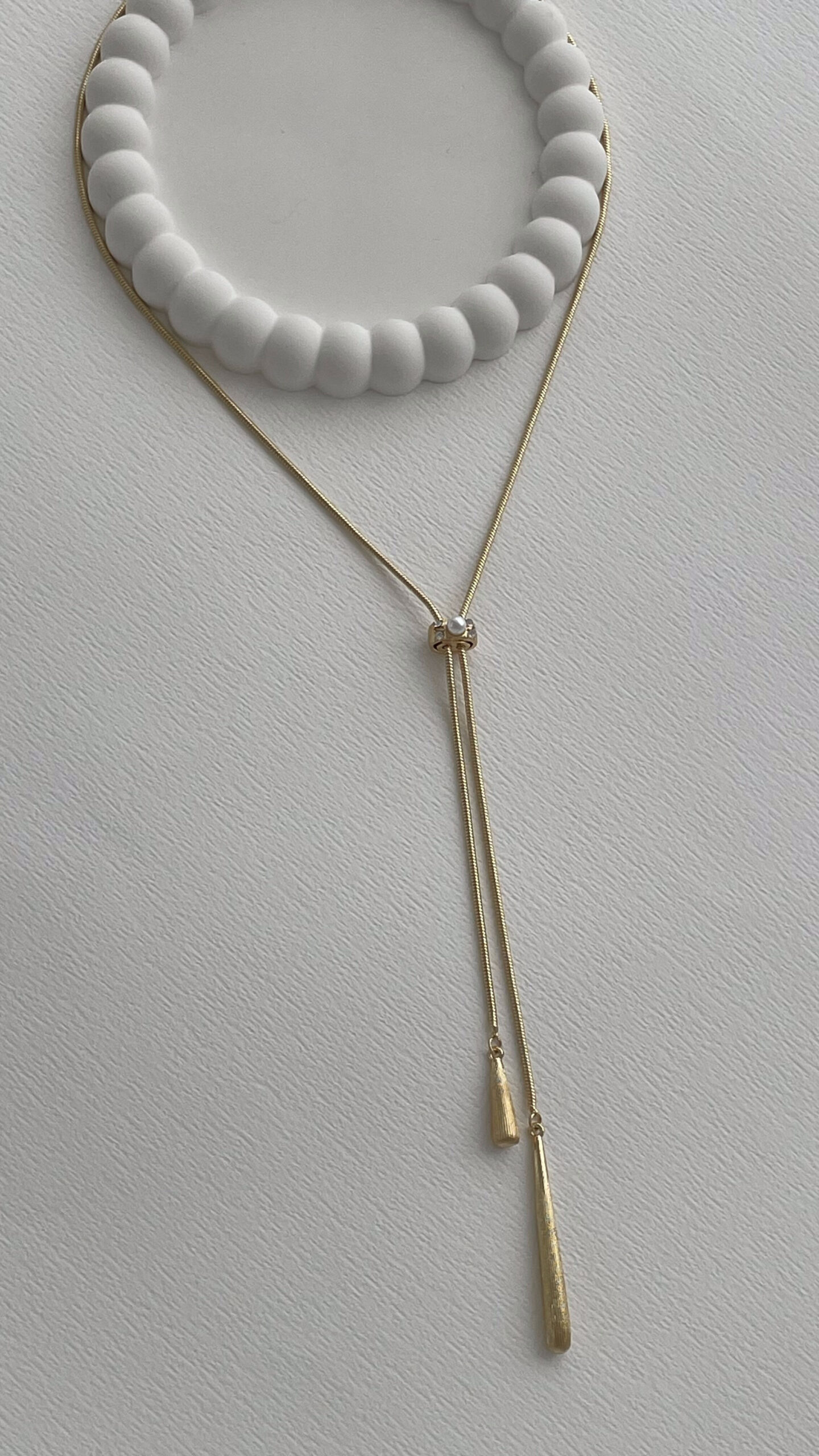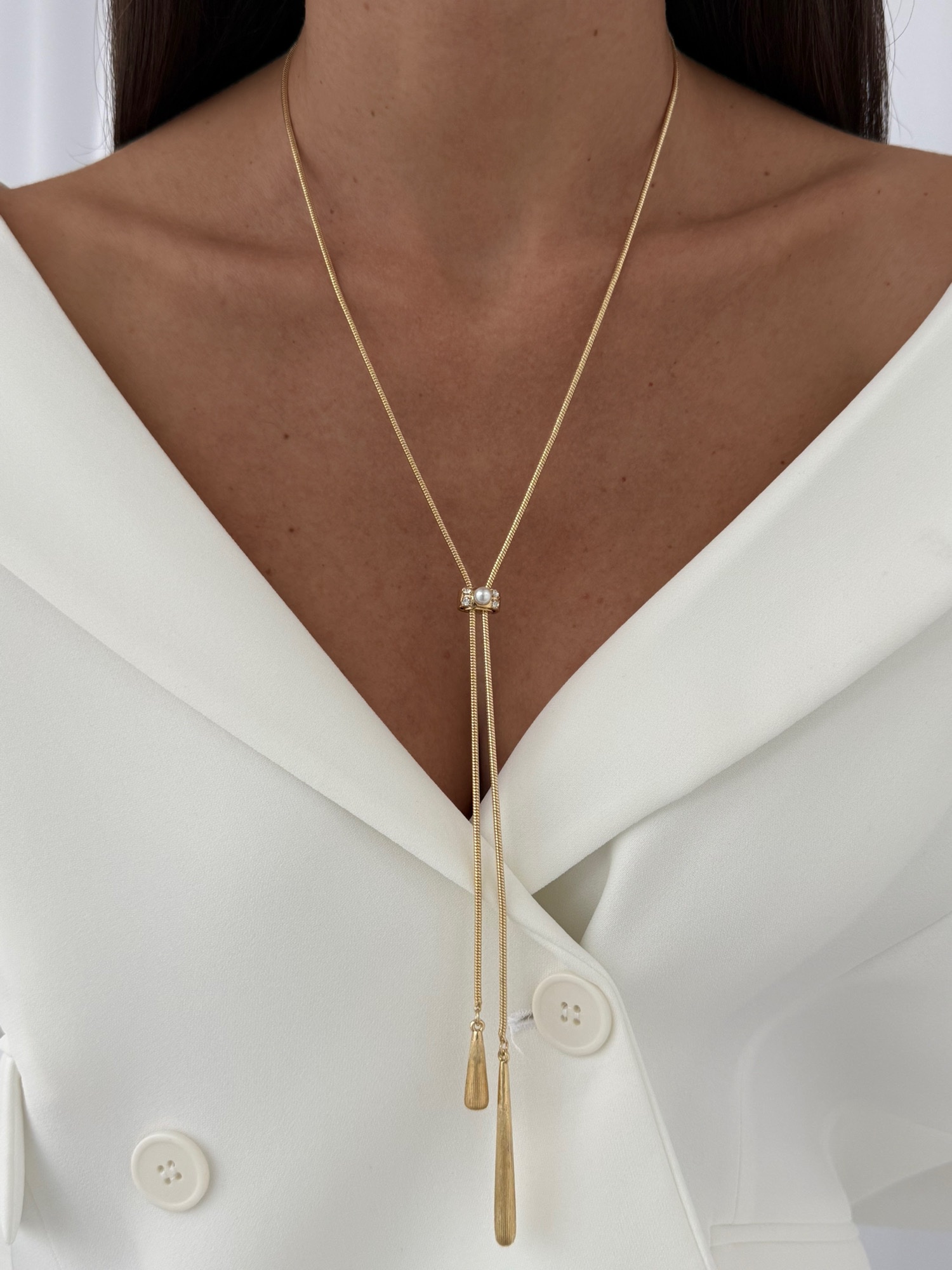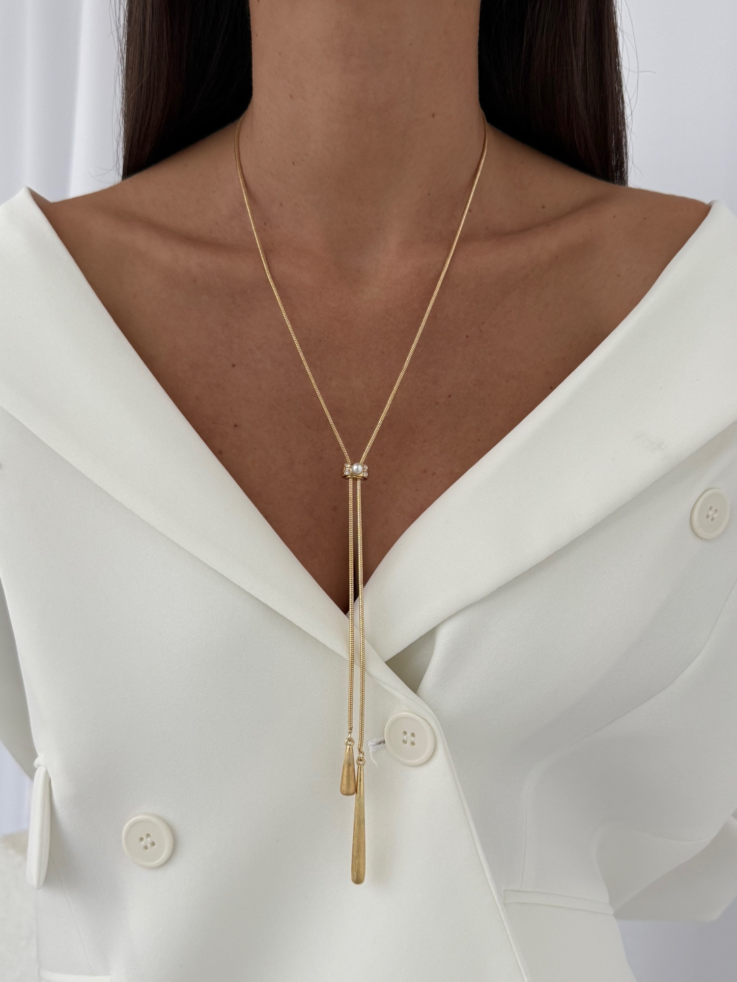 Özel Seri Zirkon & İnci Detay Gold İkili Çubuk Kolye