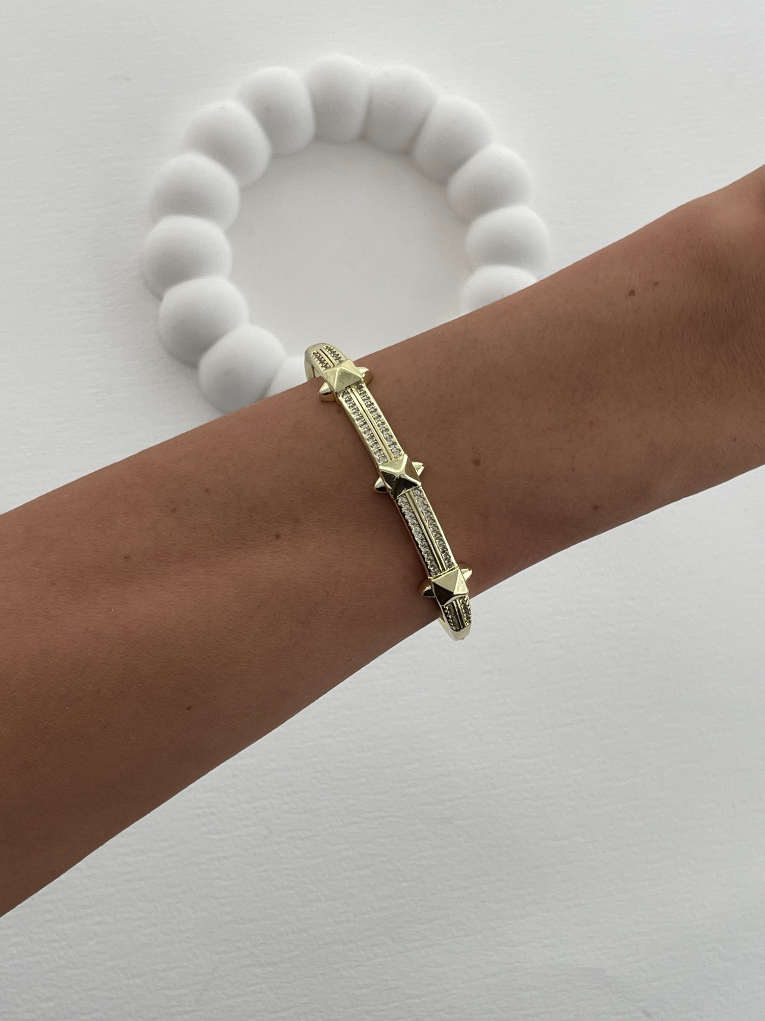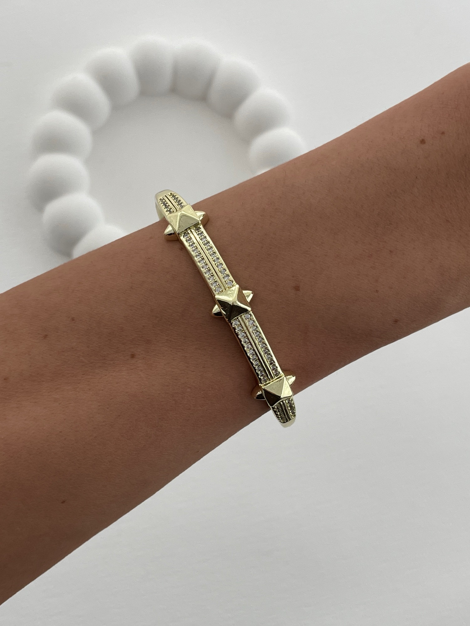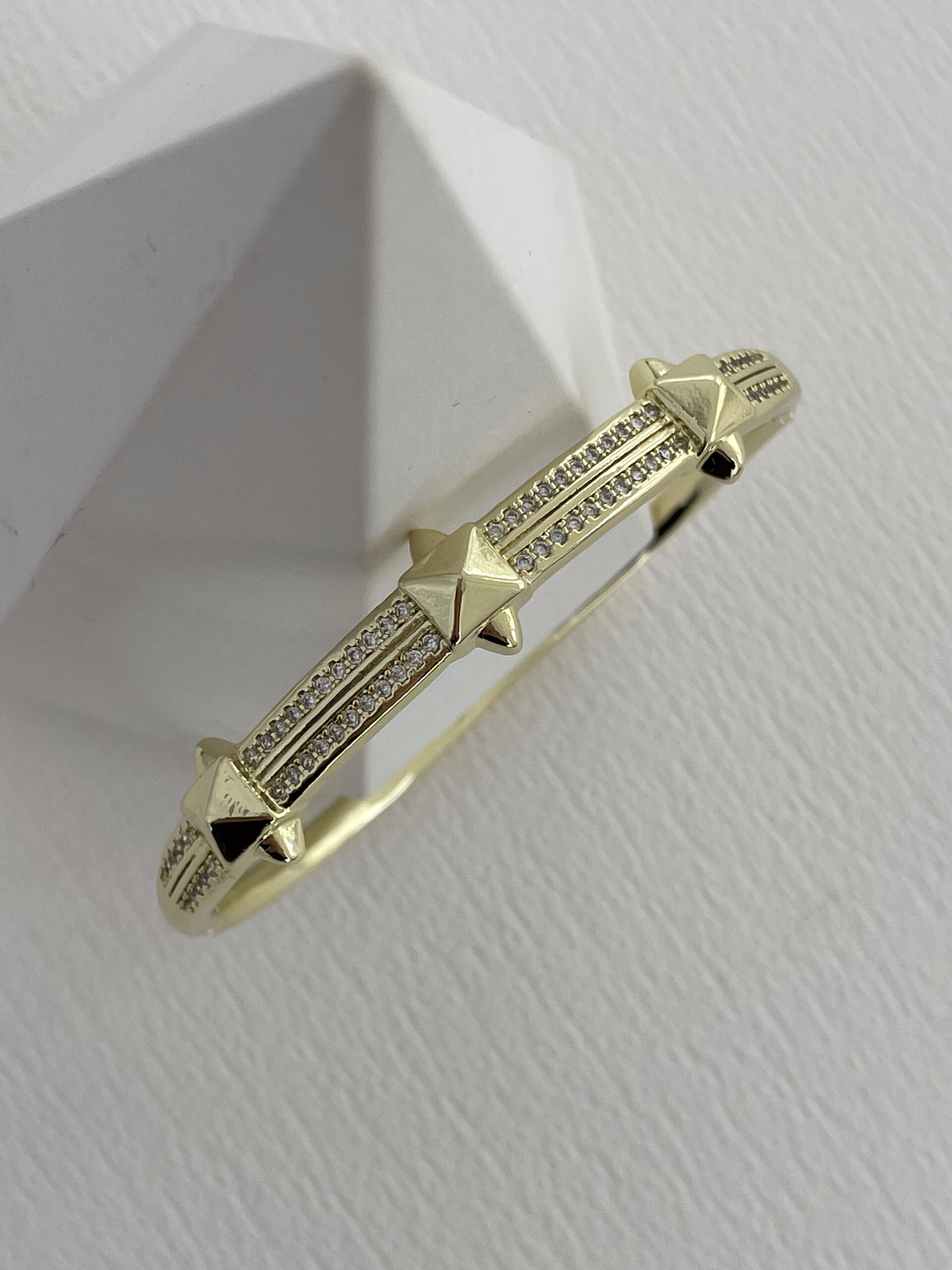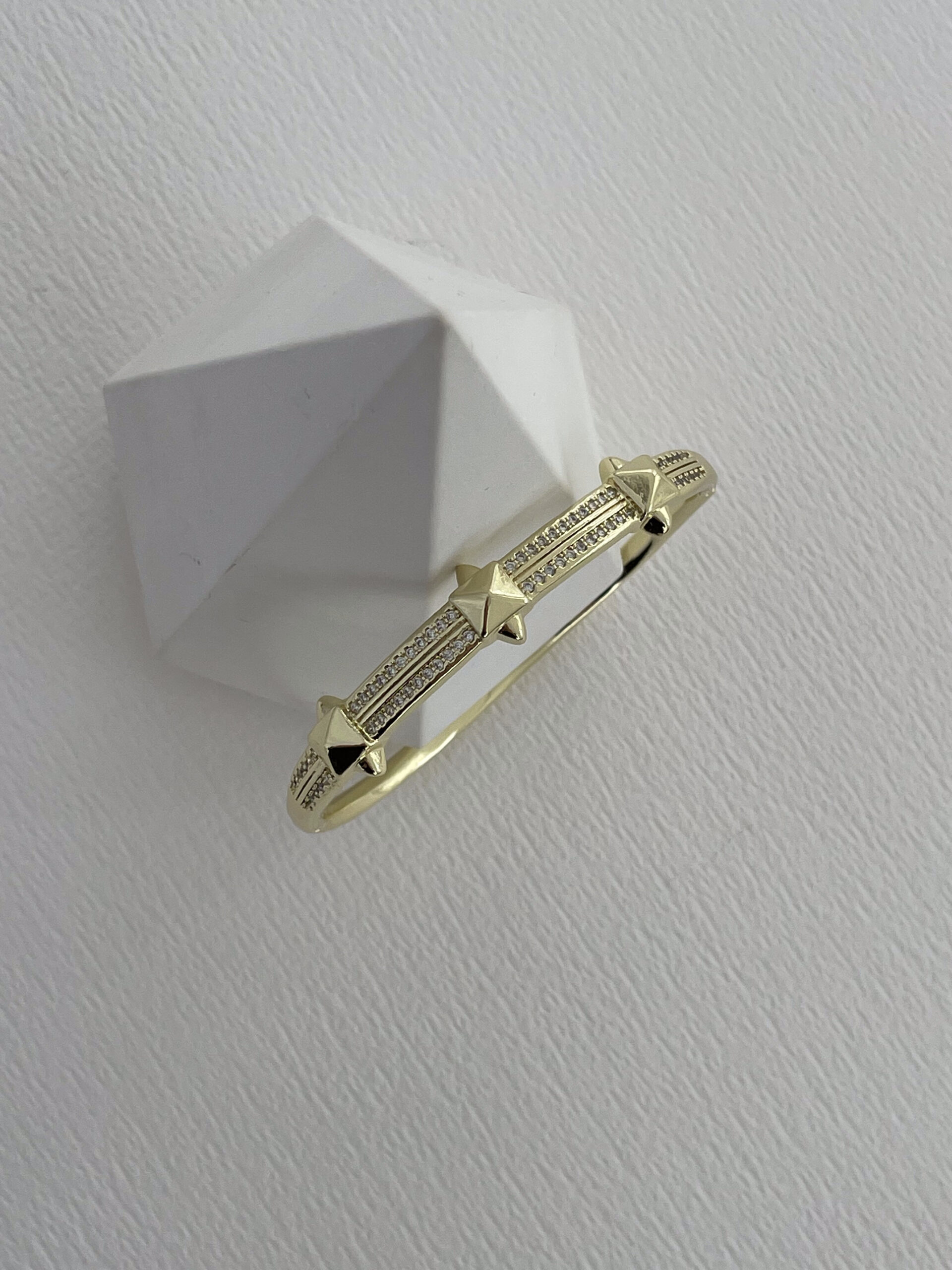 Özel Seri Zirkon Taş Detay Kare Çivi Tasarım Gold Kelepçe Bileklik