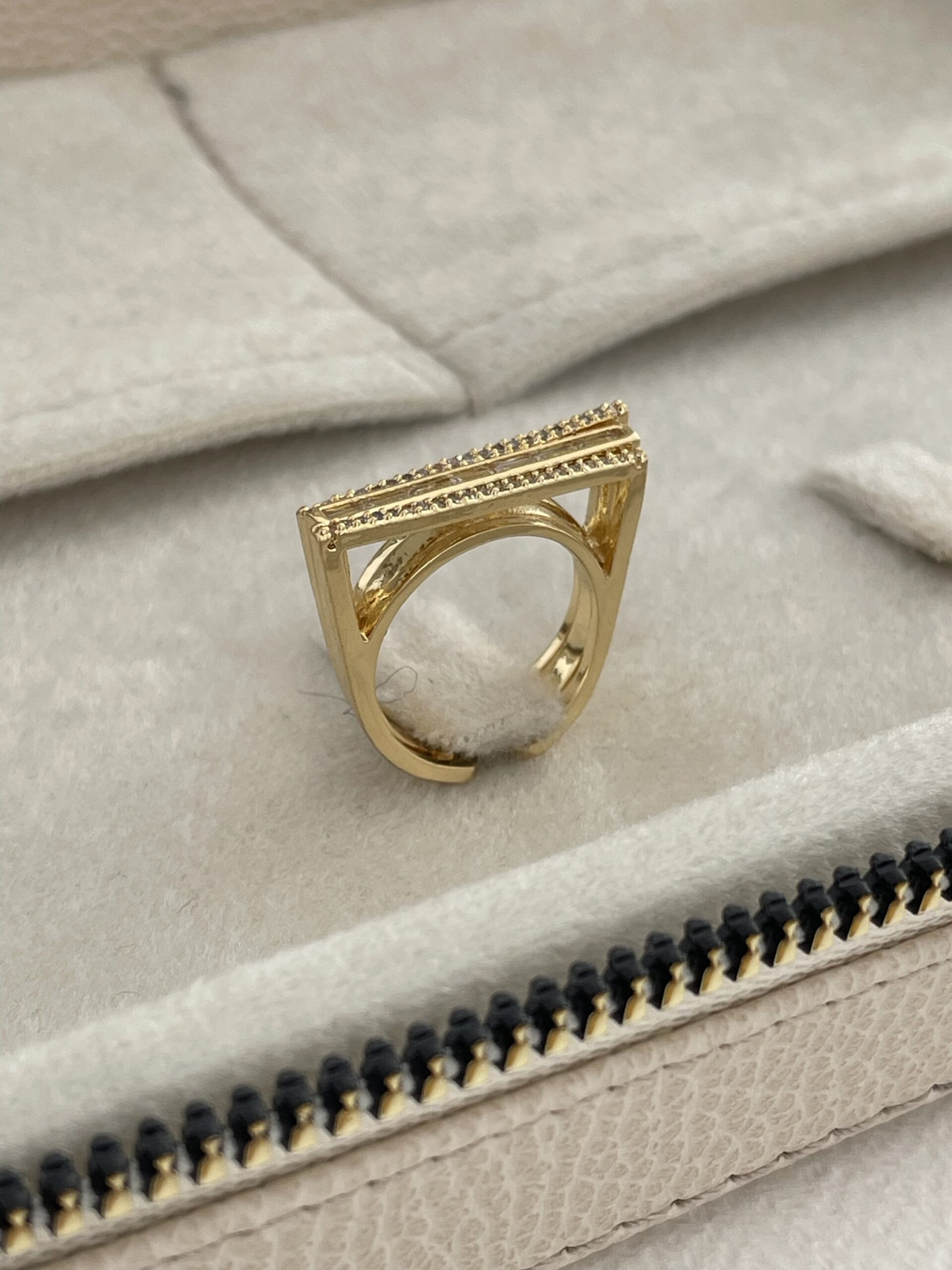 Özel Seri Zirkon Taş Geometrik Tasarım Ayarlanabilir Gold Yüzük