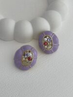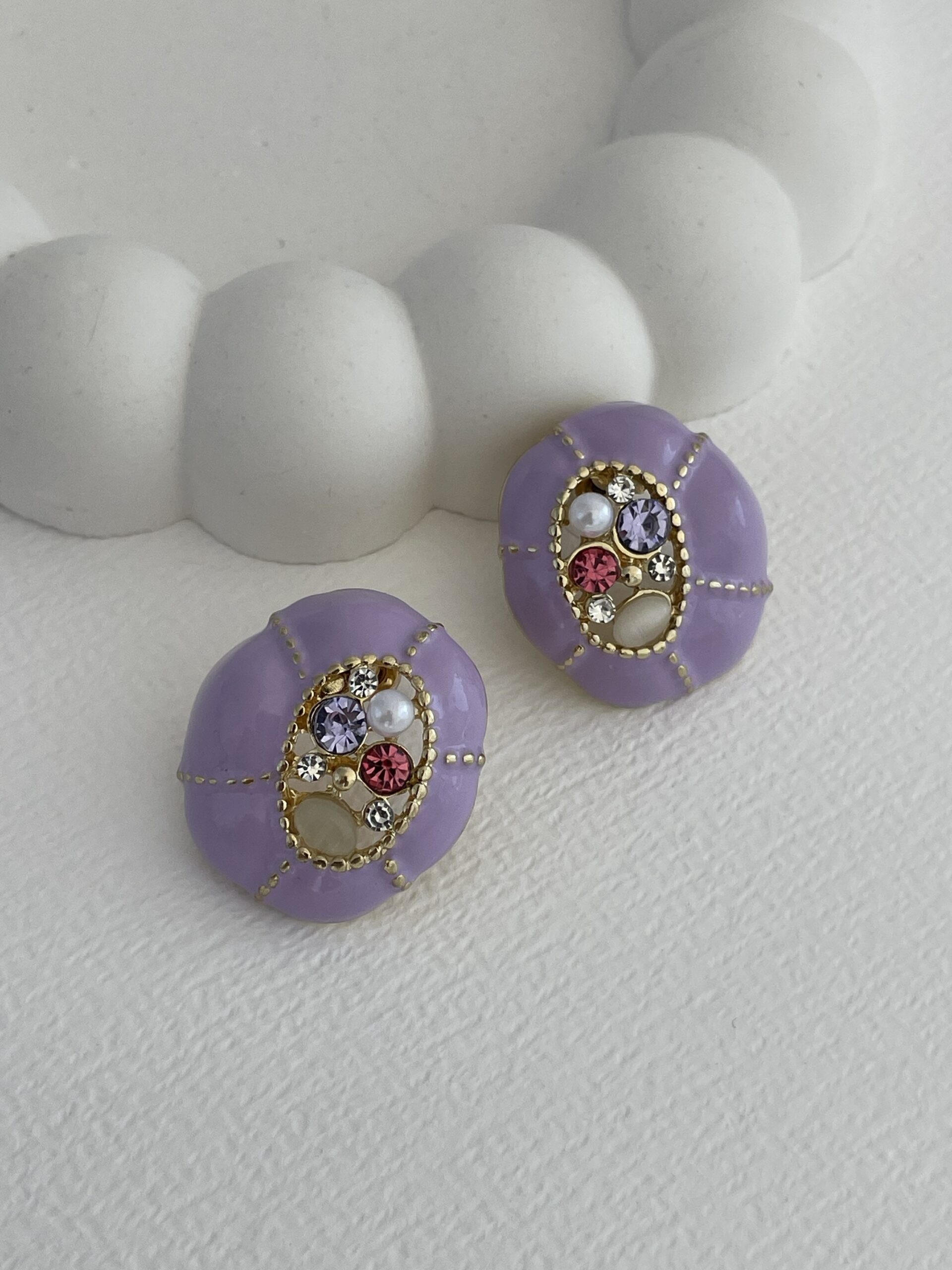 Özel Seri Zirkon Taş İncili Vintage Mor Gold Küpe