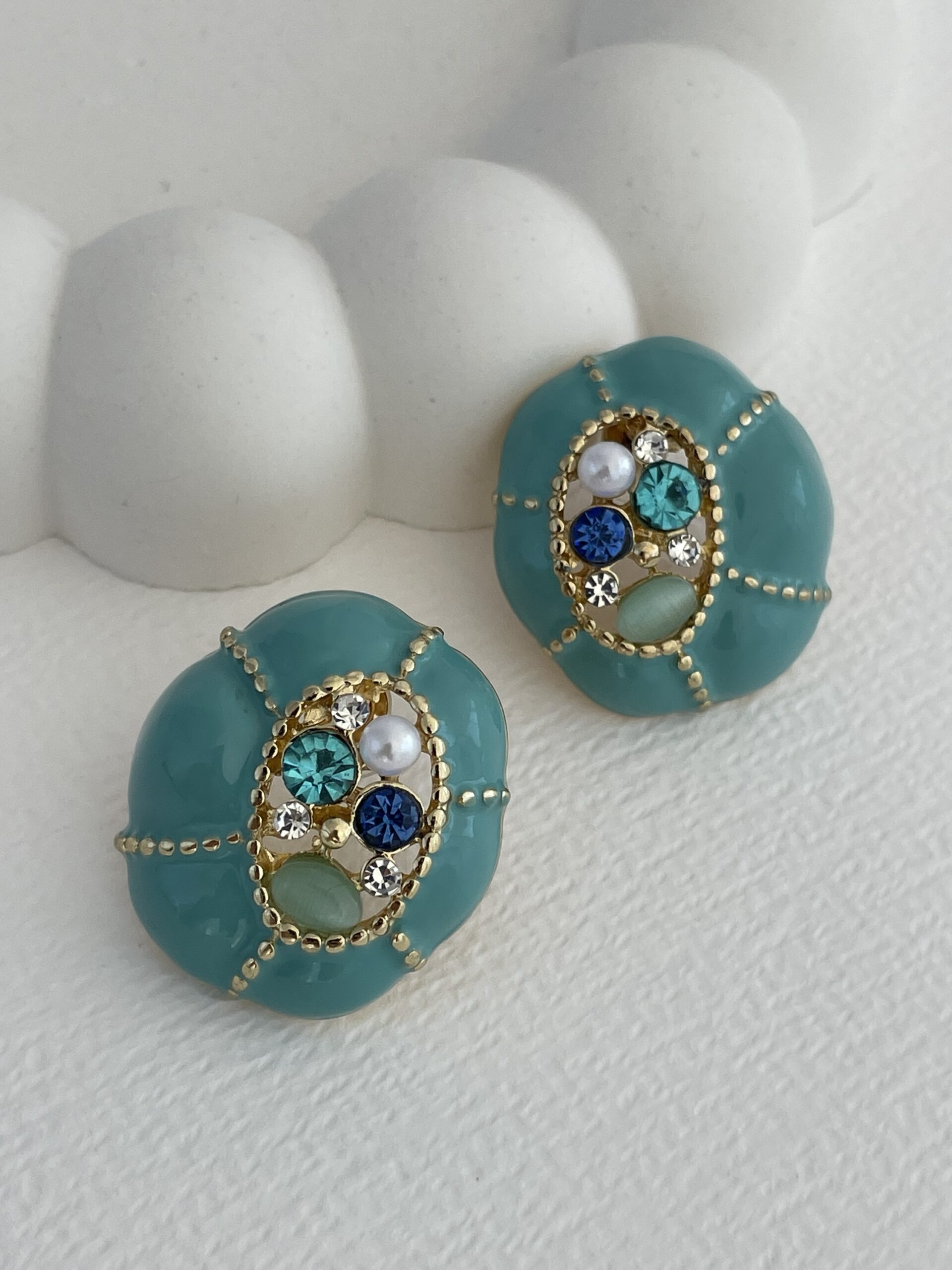 Özel Seri Zirkon Taş İncili Vintage Yeşil Gold Küpe