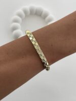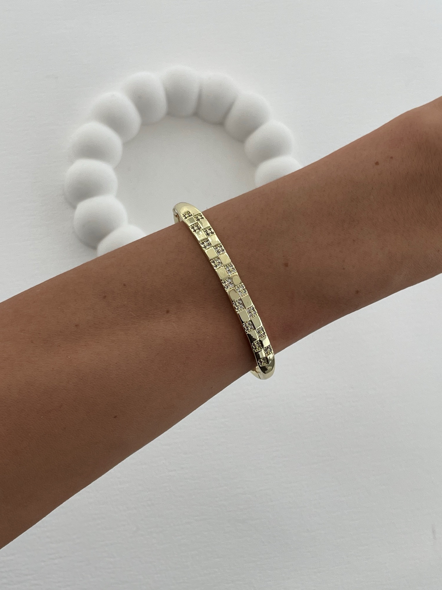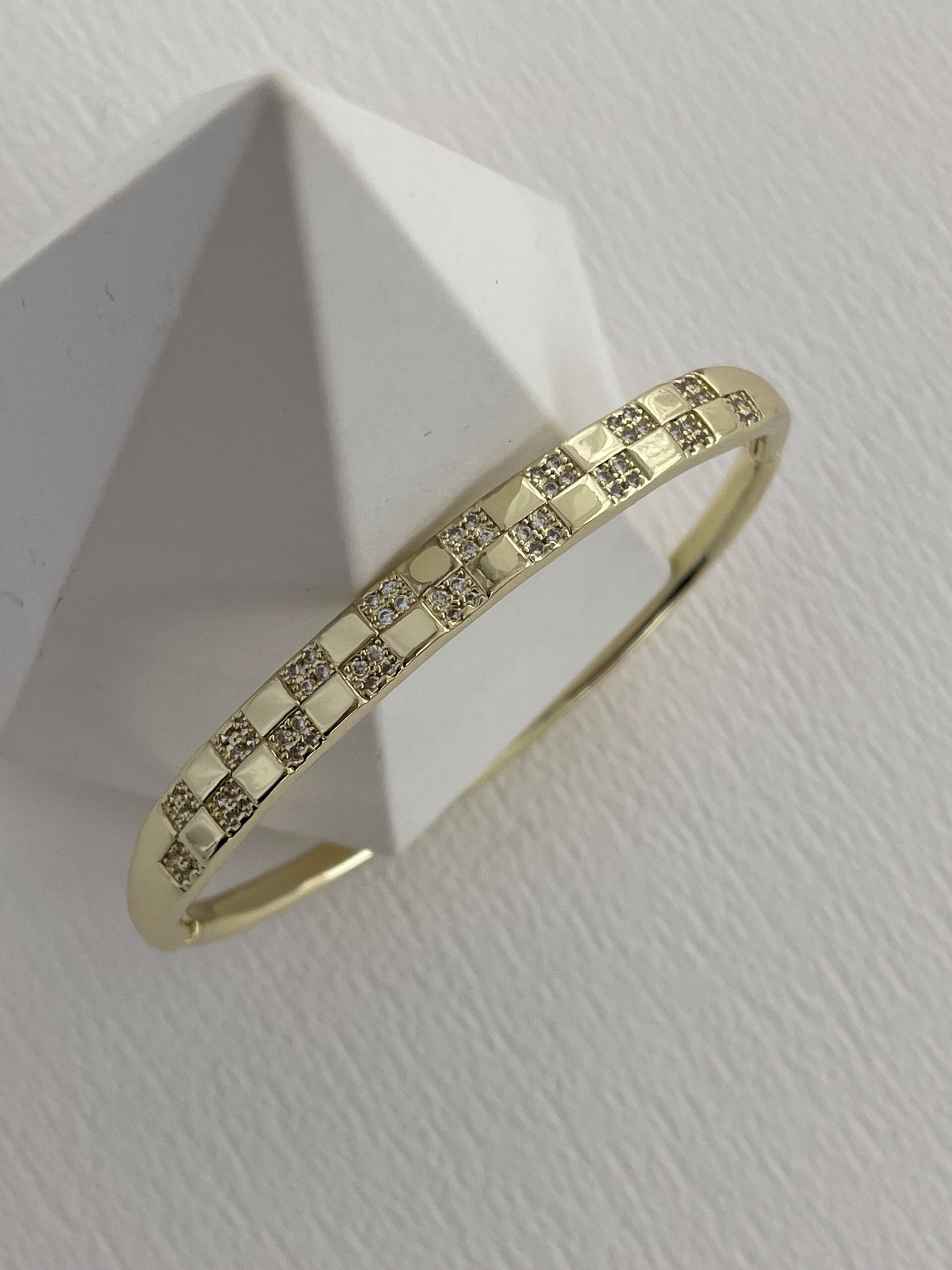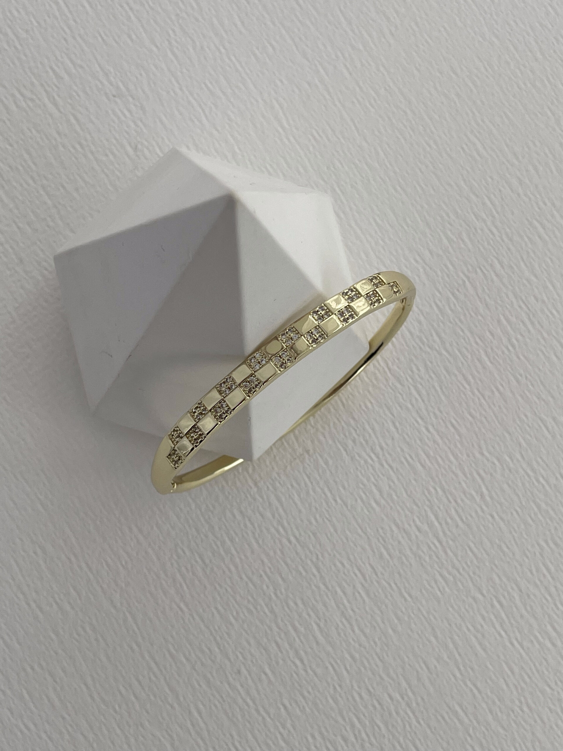 Özel Seri Zirkon Taş Kare Model Gold Kelepçe Bileklik