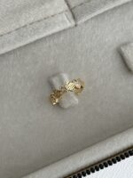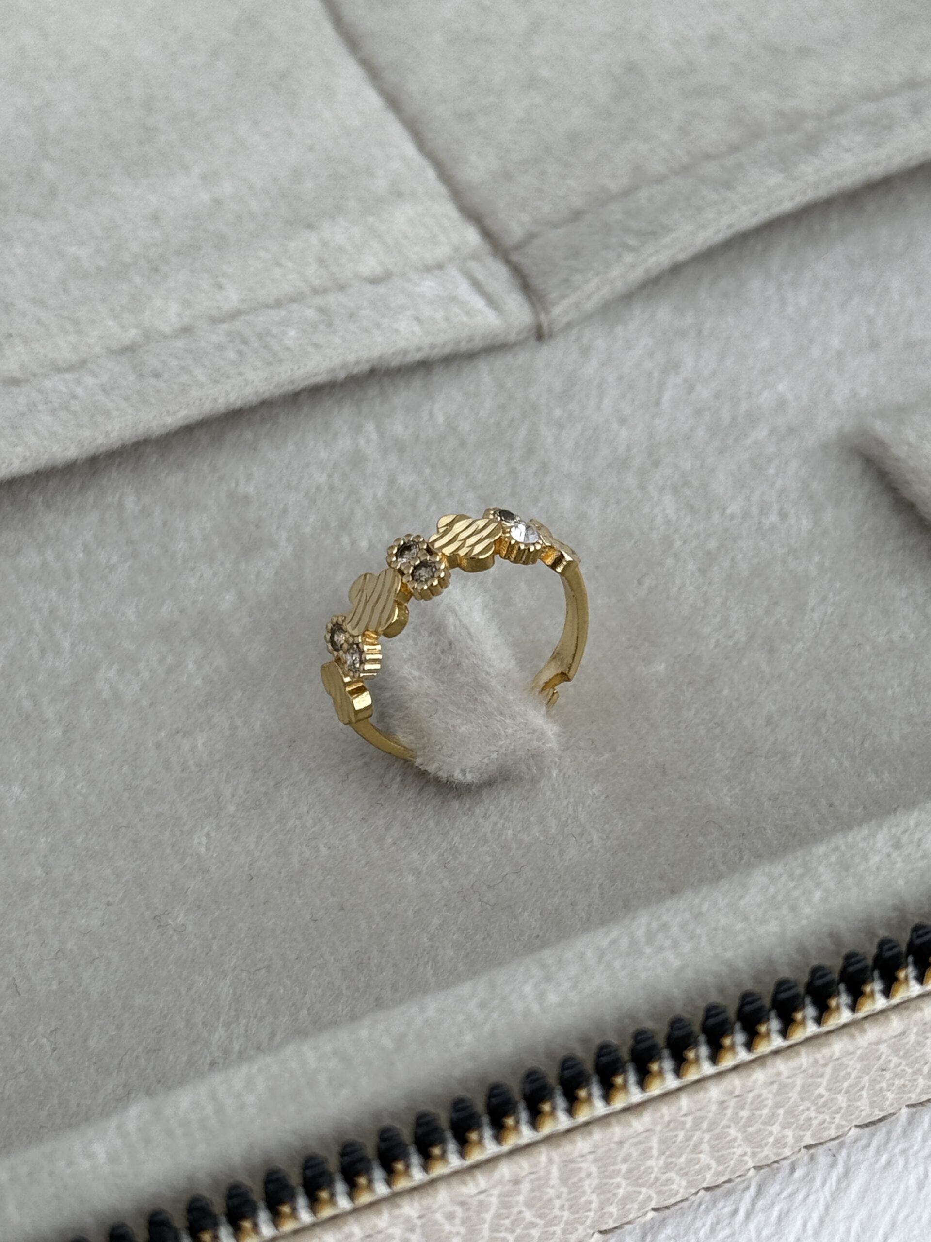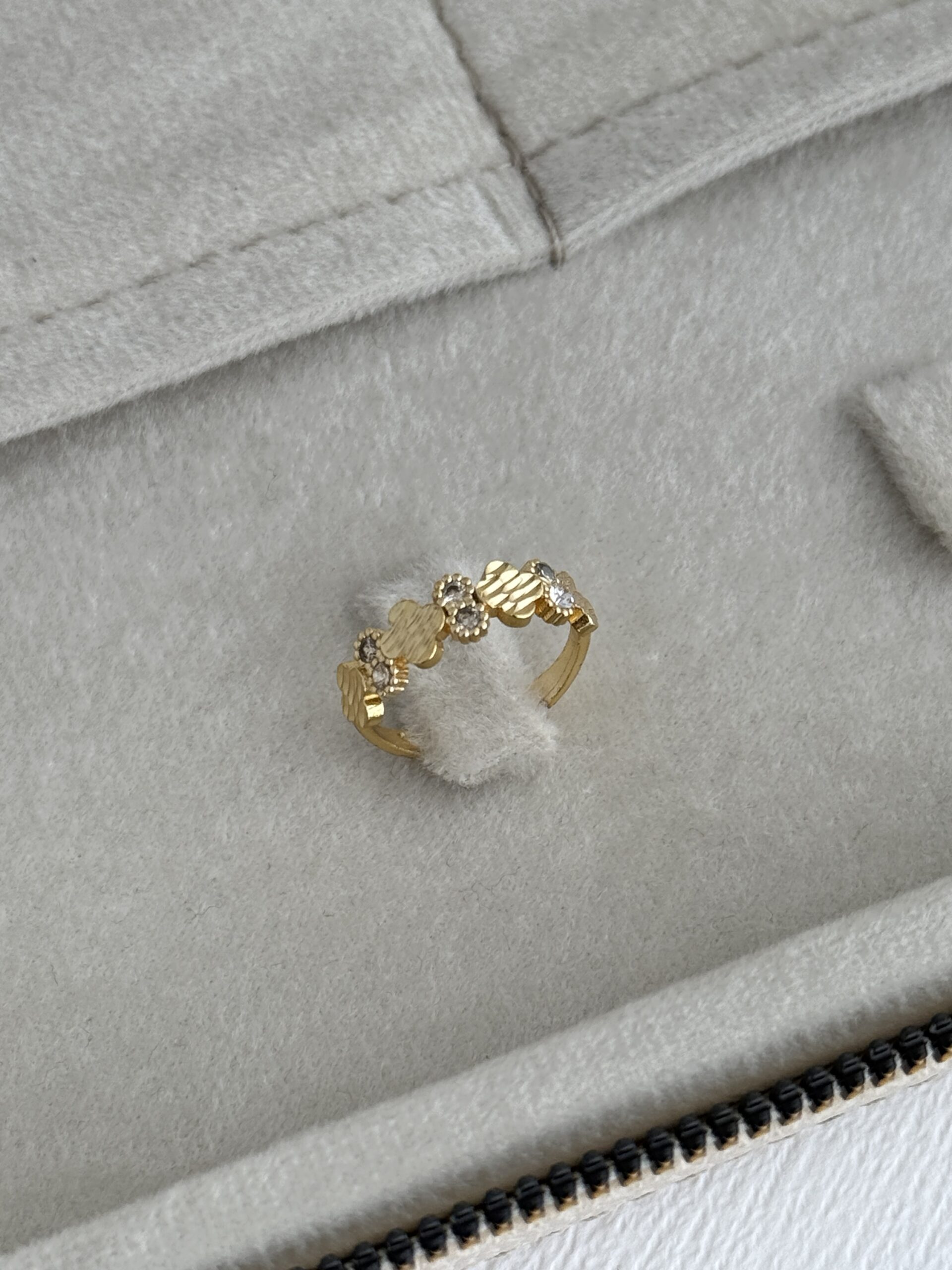 Özel Seri Zirkon Taş Sıralı Mini Yonca Tasarım Ayarlanabilir Gold Yüzük
