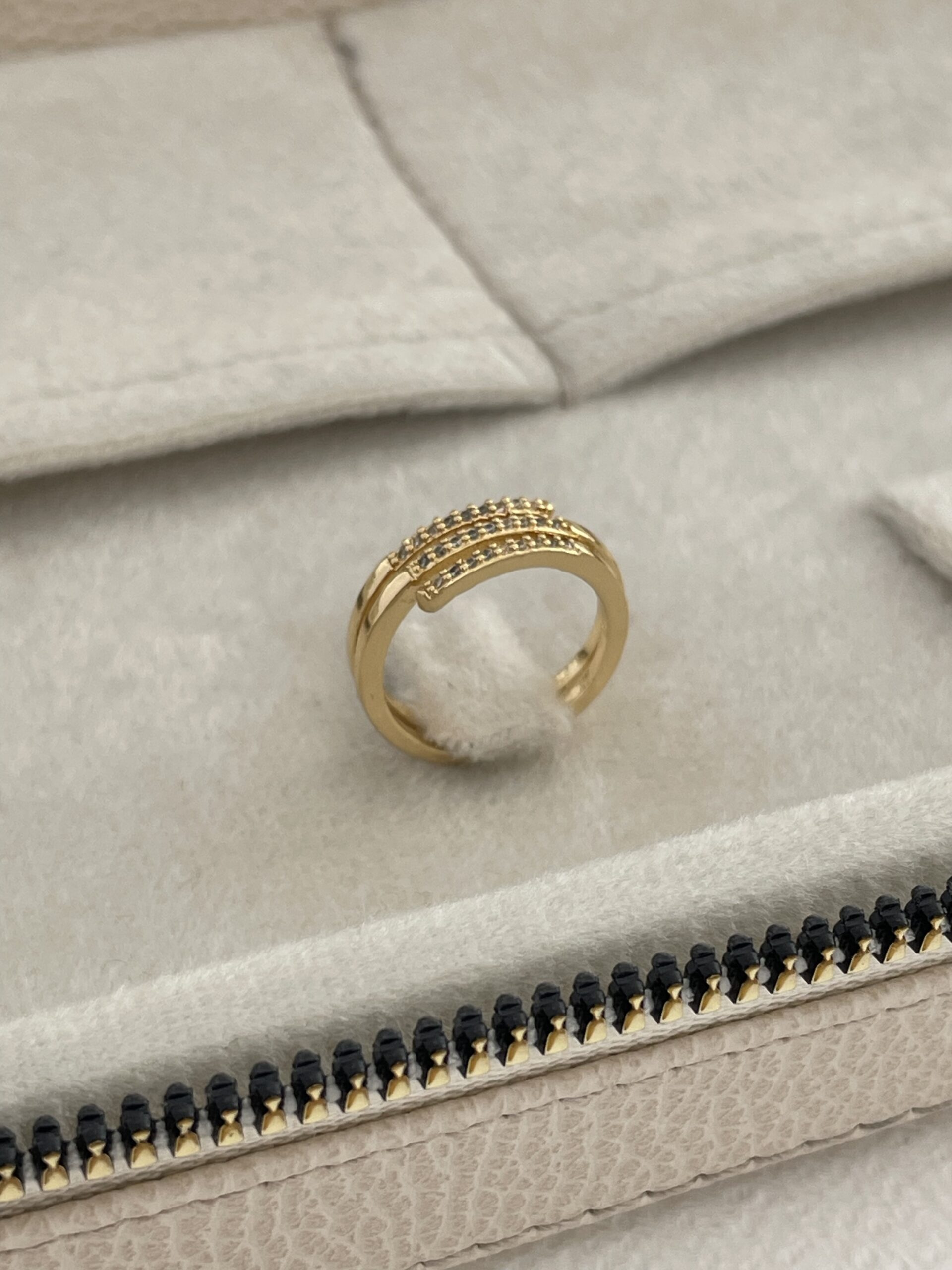 Özel Seri Zirkon Taş Üçlü Sarmal Tasarım Ayarlanabilir Gold Yüzük