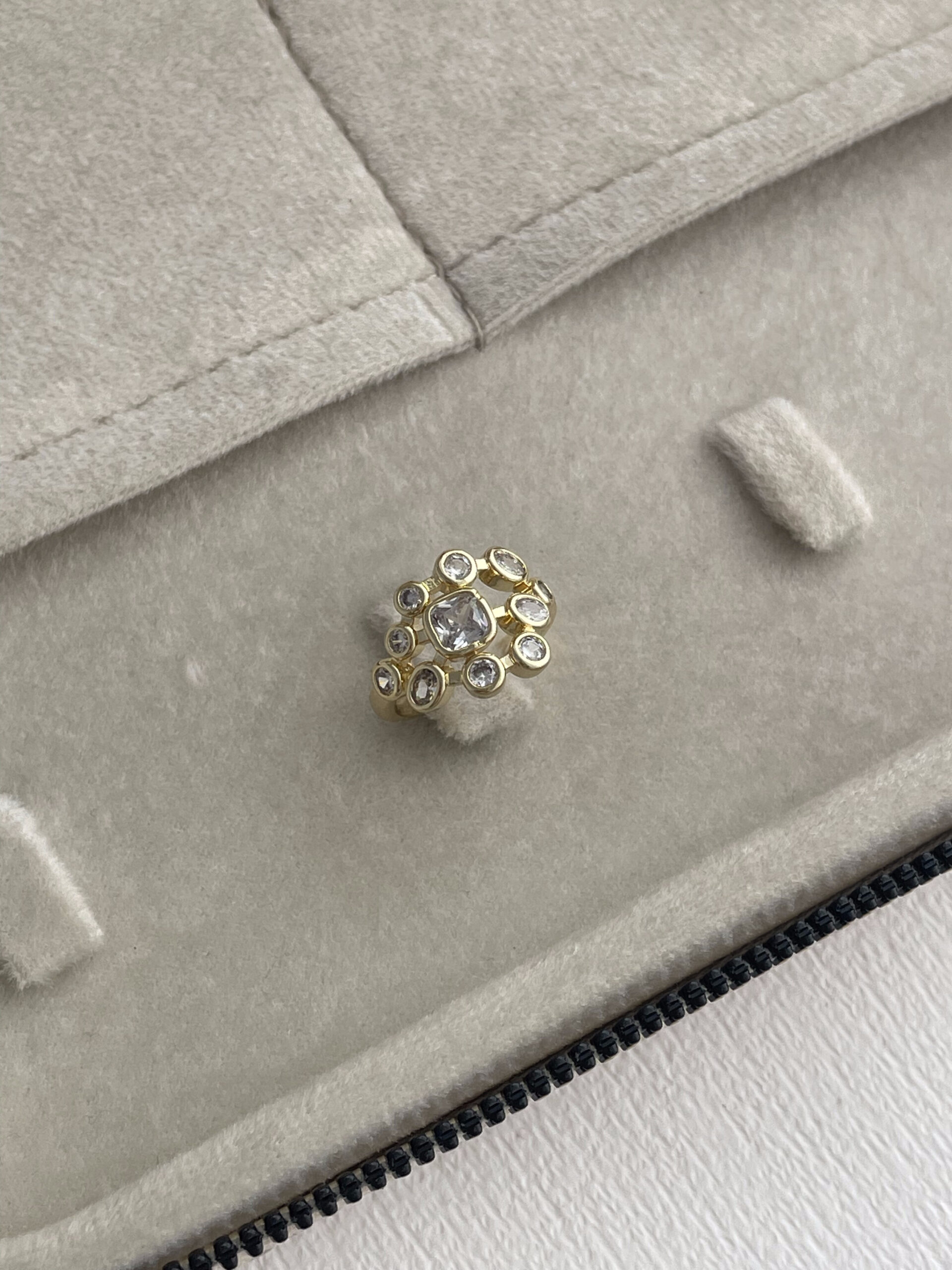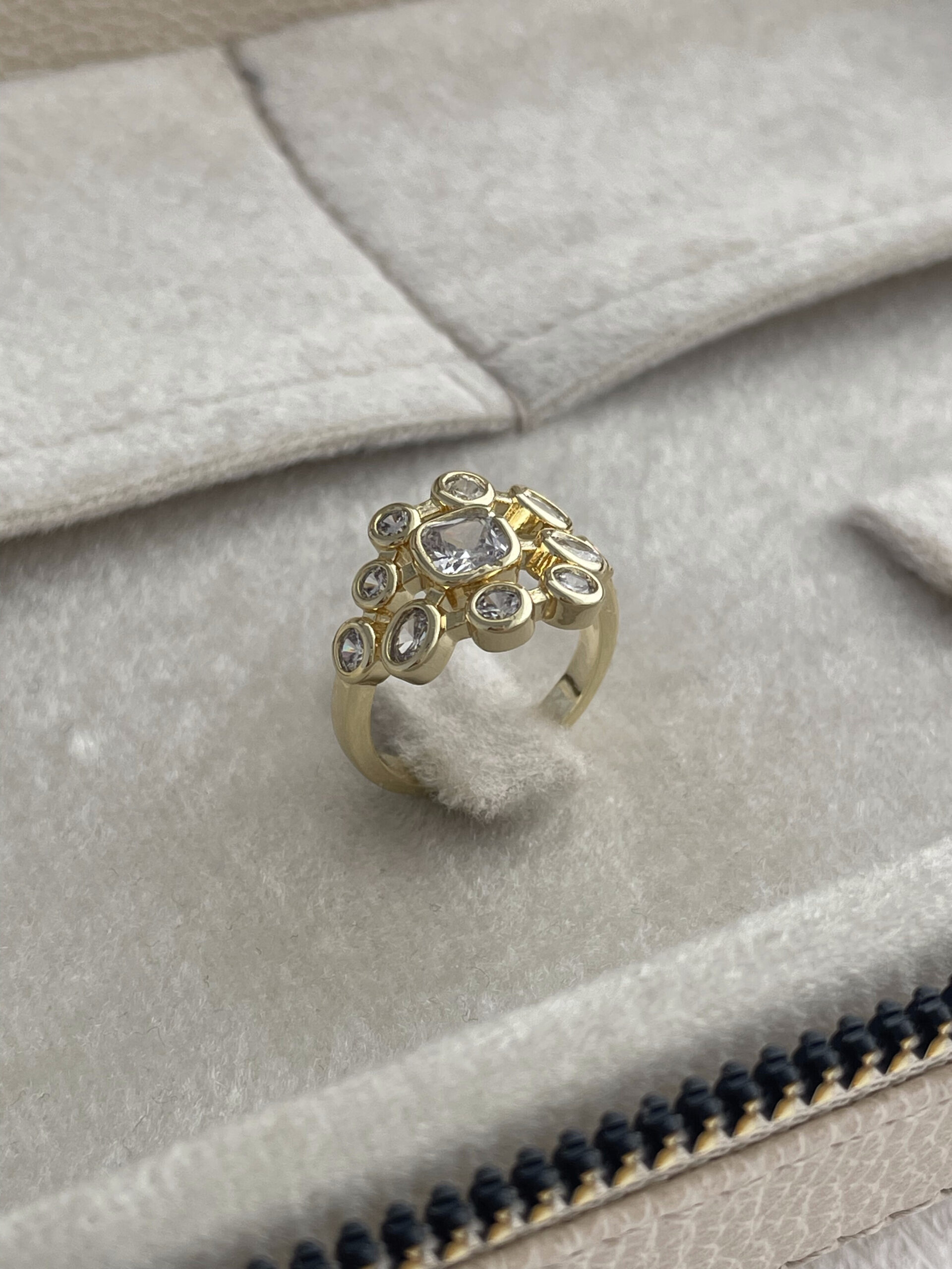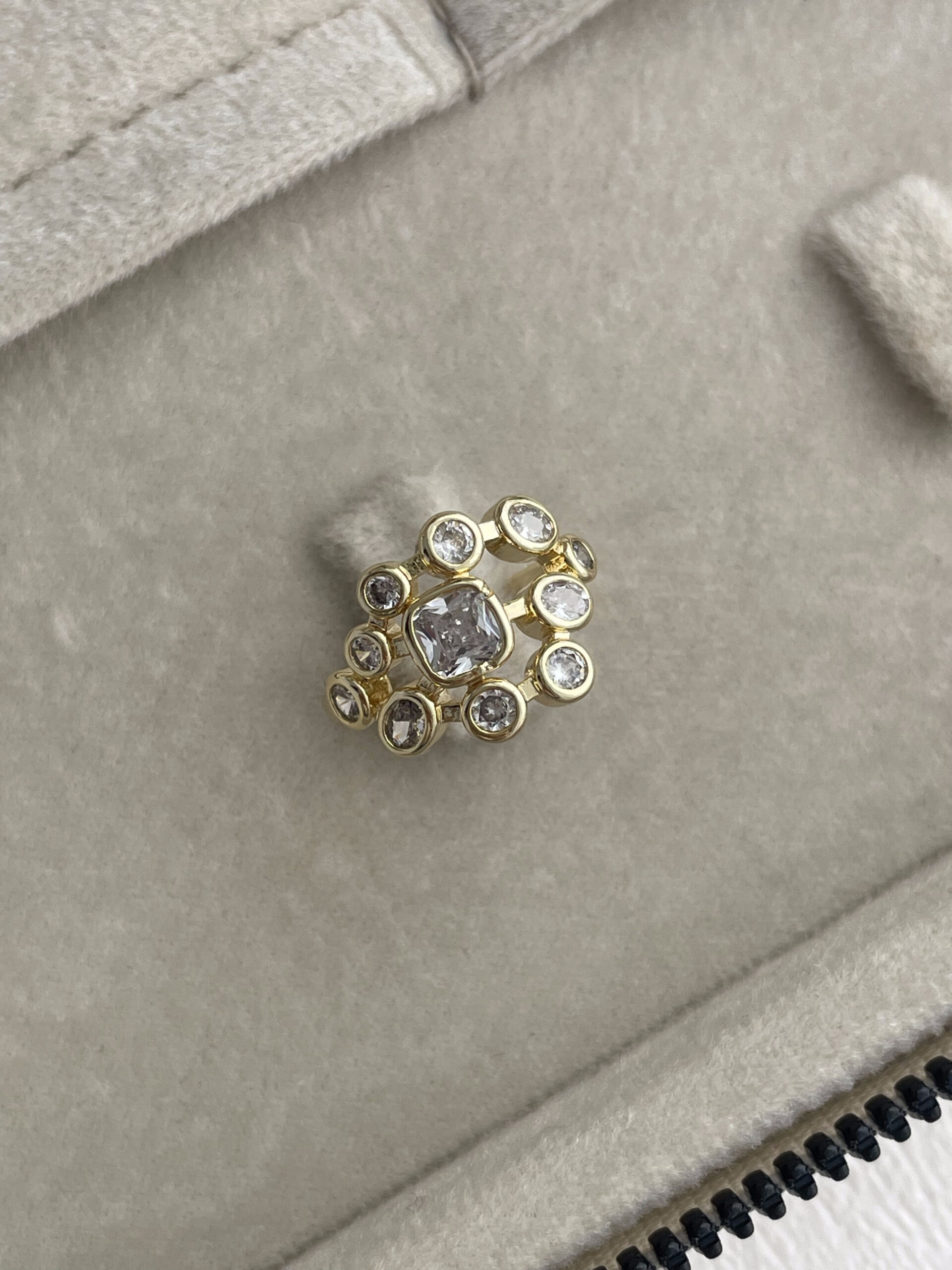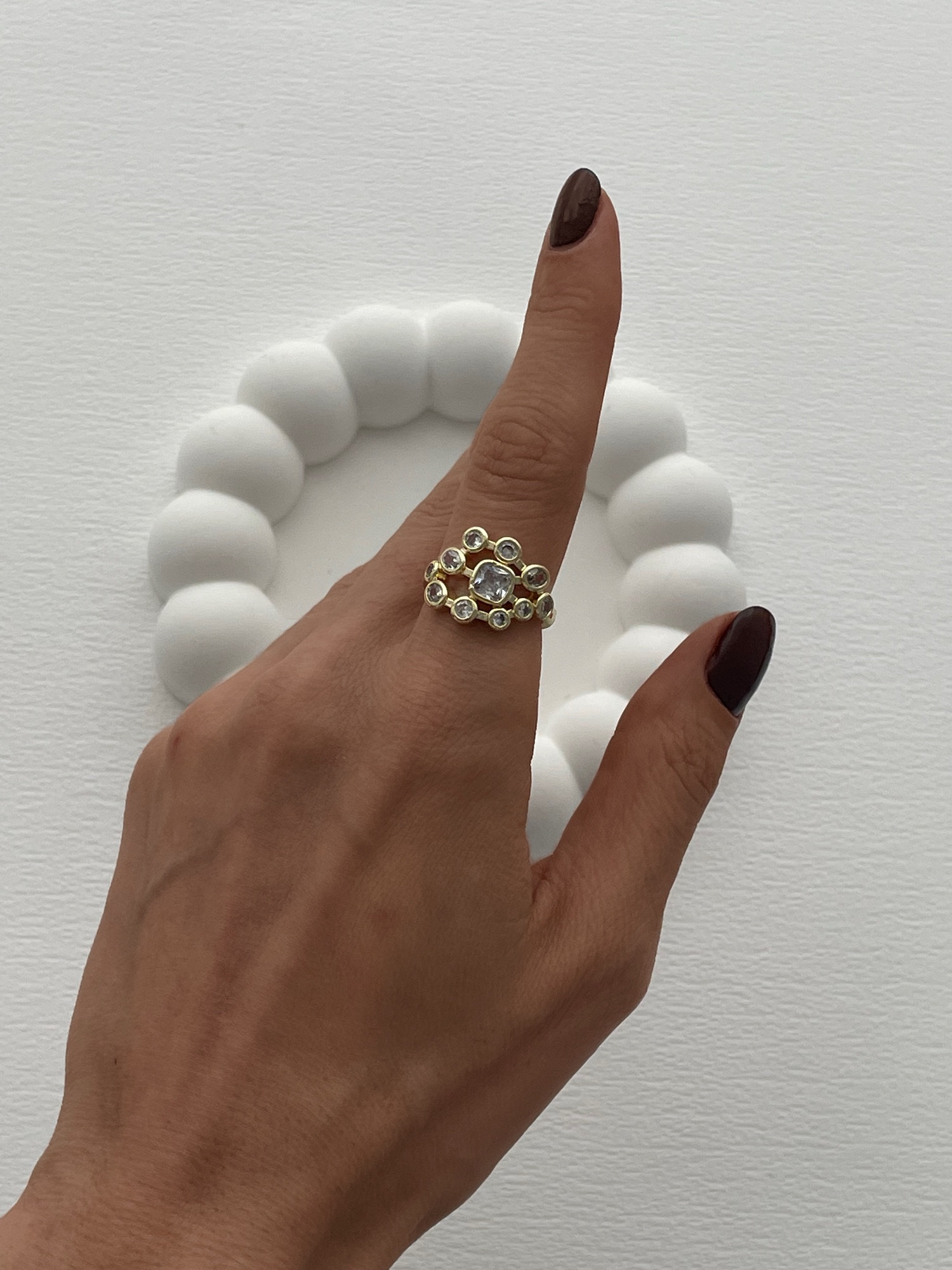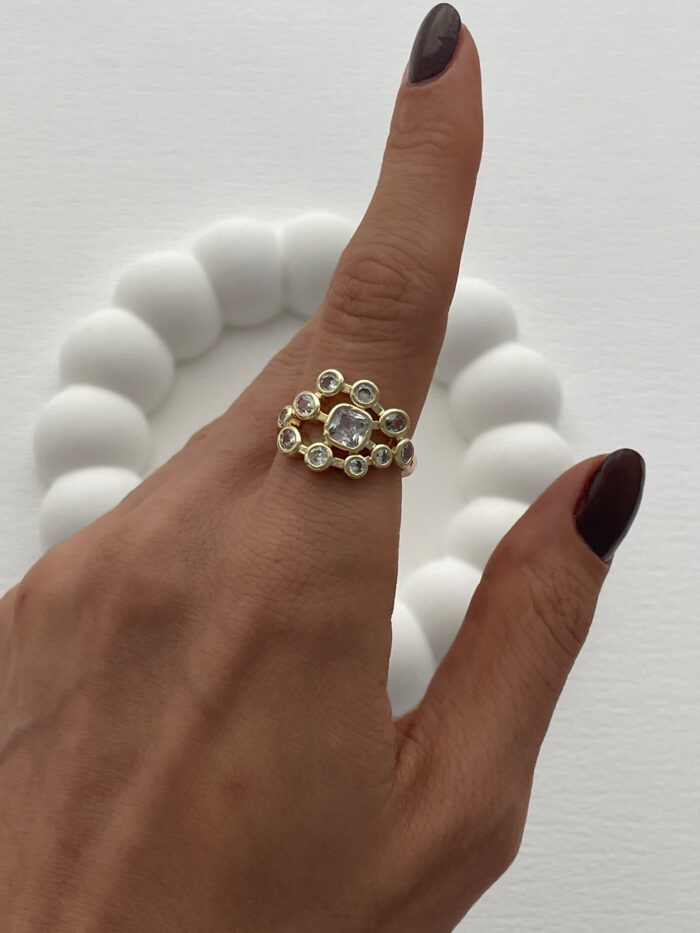 Özel Seri Zirkon Taş Yuvarlak Tasarım Ayarlanabilir Gold Yüzük
