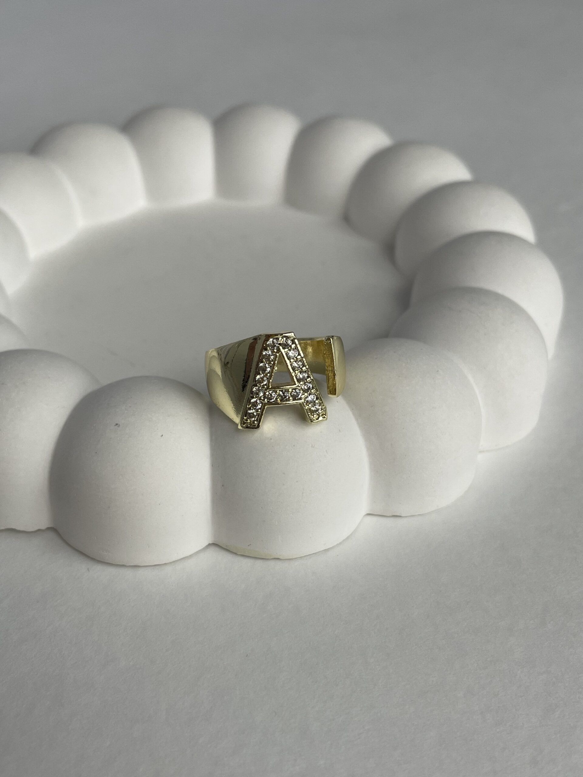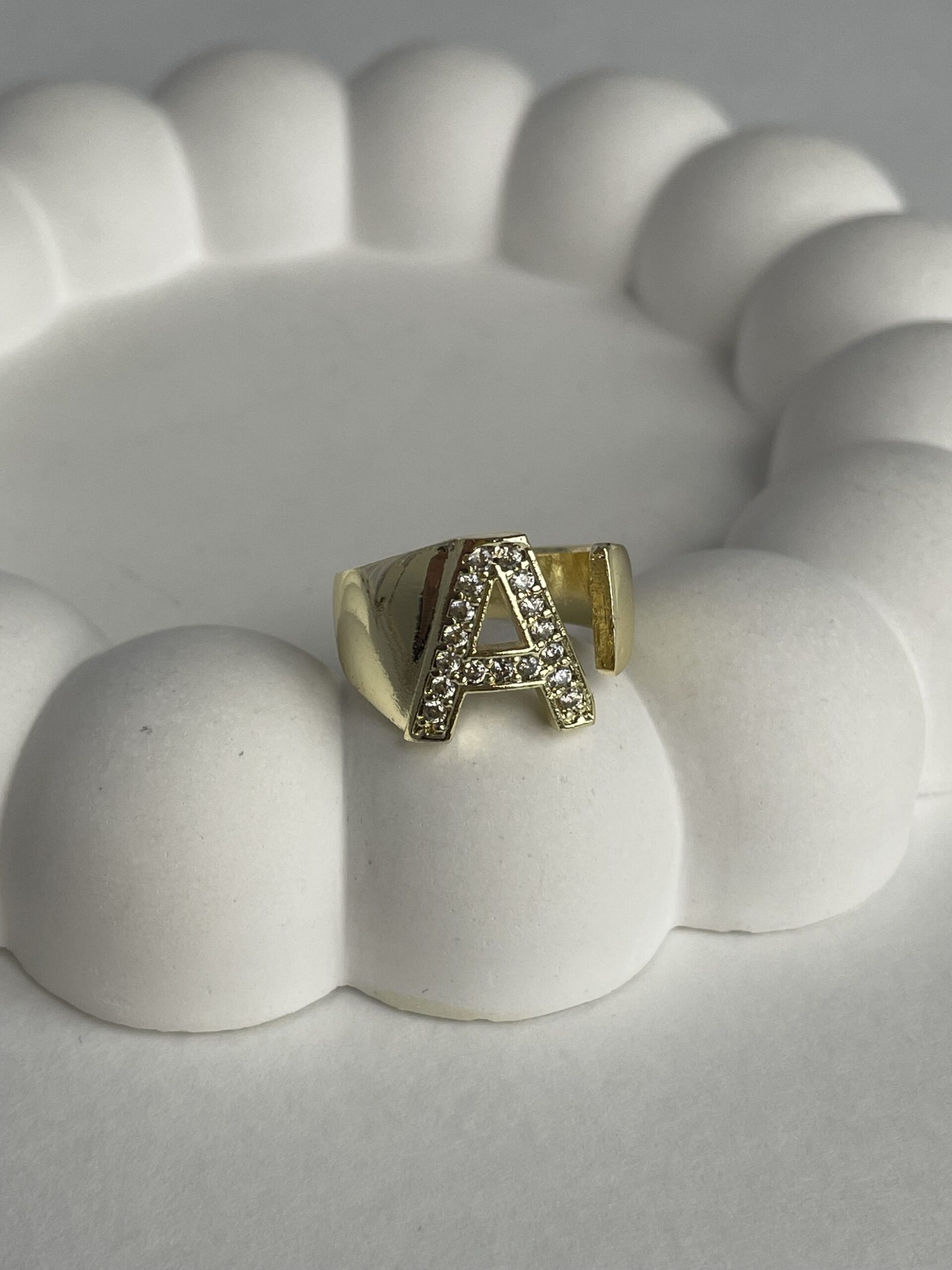 Özel Seri Zirkon Taşlı A Harf Gold Yüzük