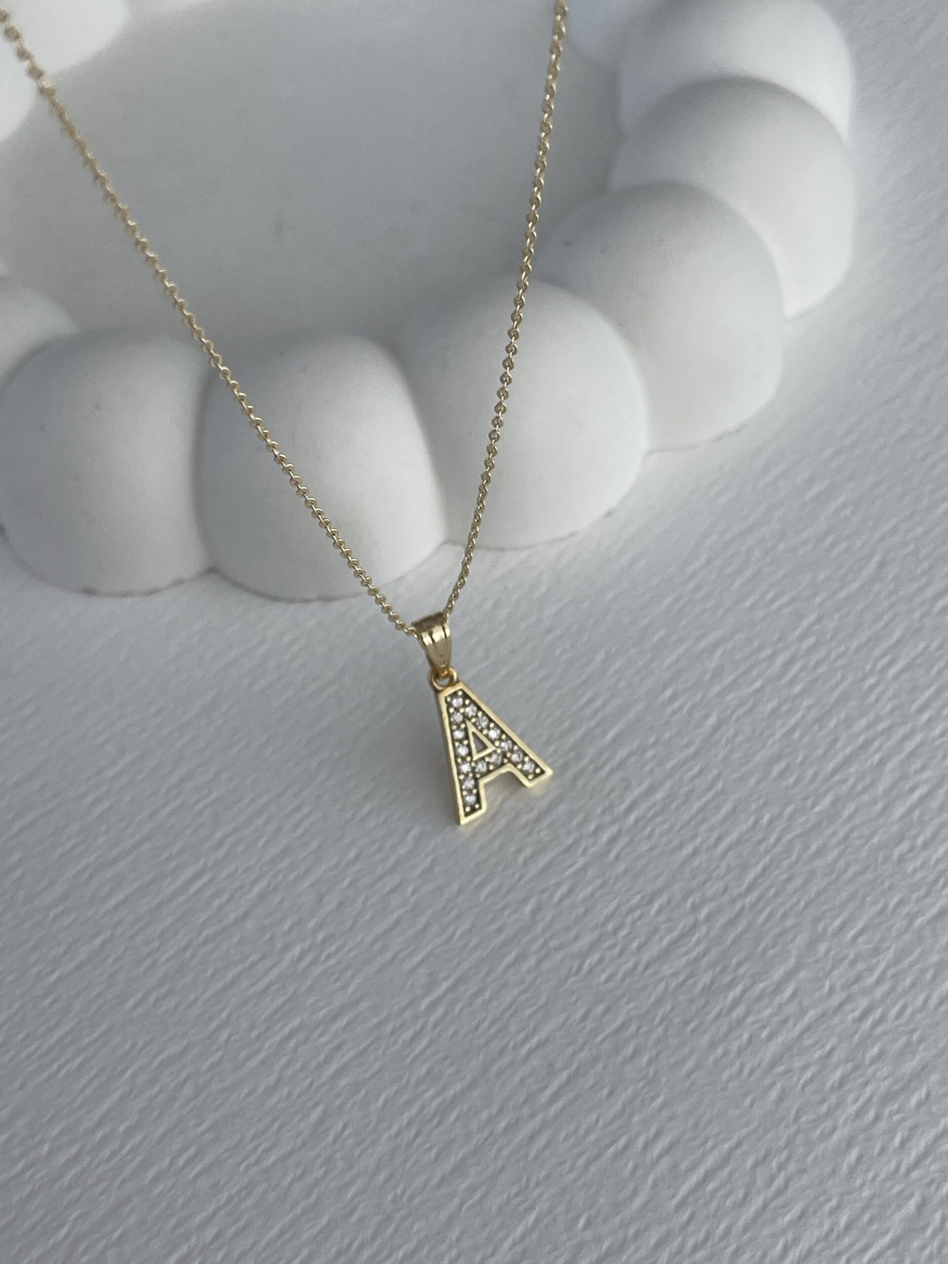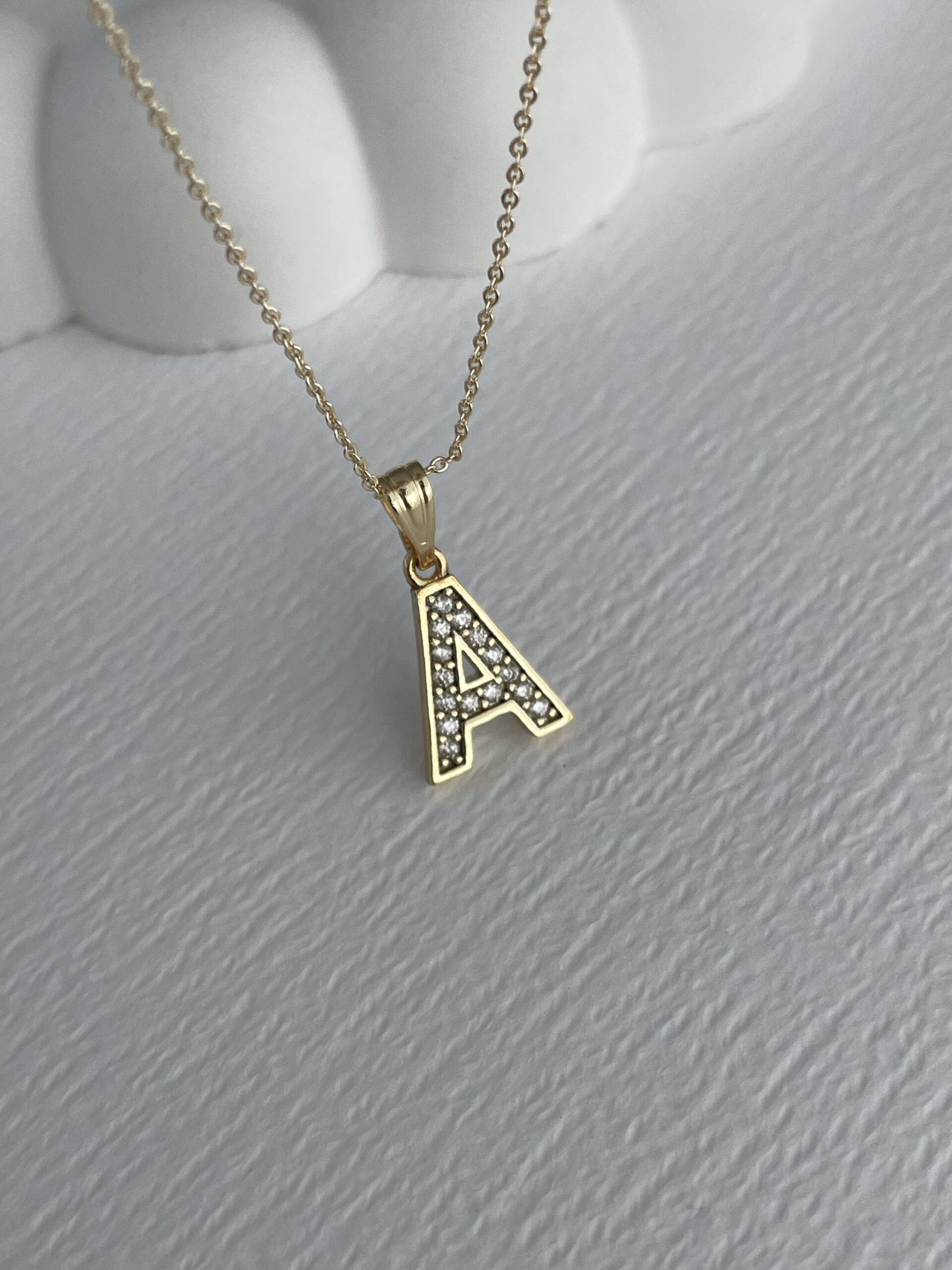 Özel Seri Zirkon Taşlı A Harf Minimal Gold Kolye