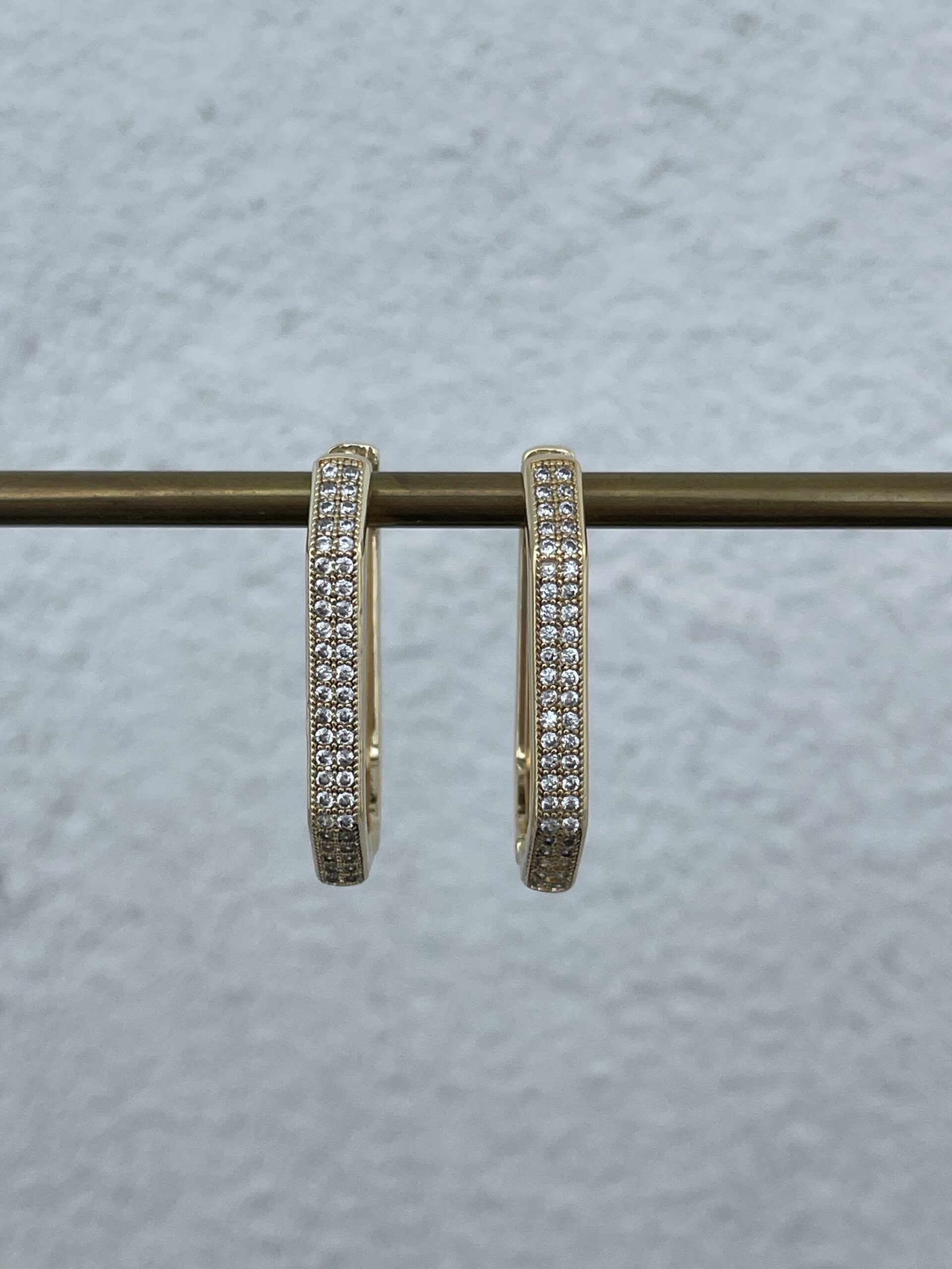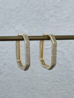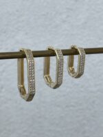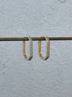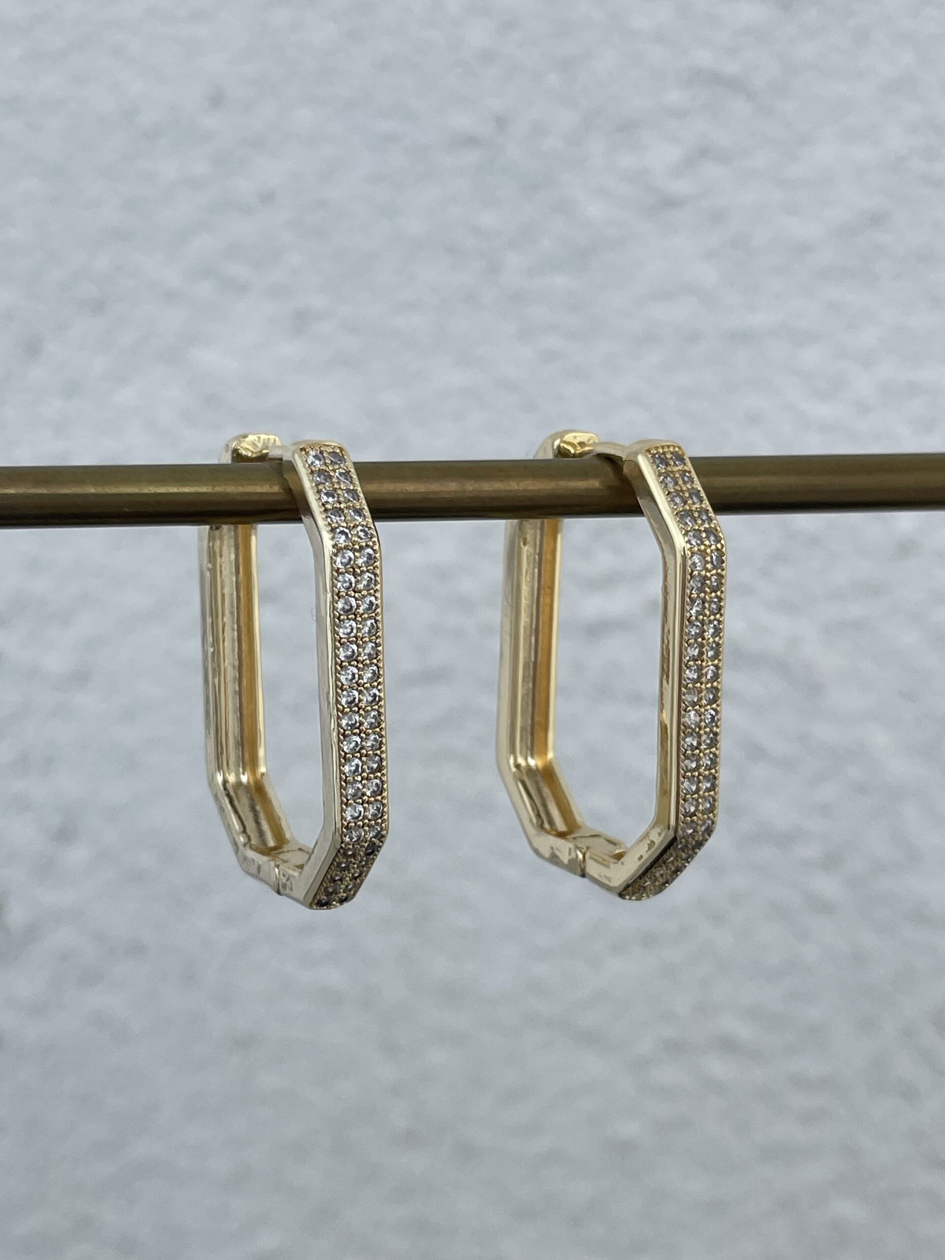 Özel Seri Zirkon Taşlı Altıgen Büyük Gold Küpe