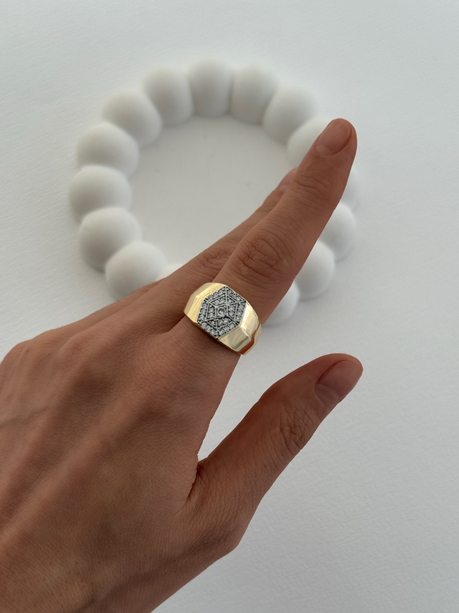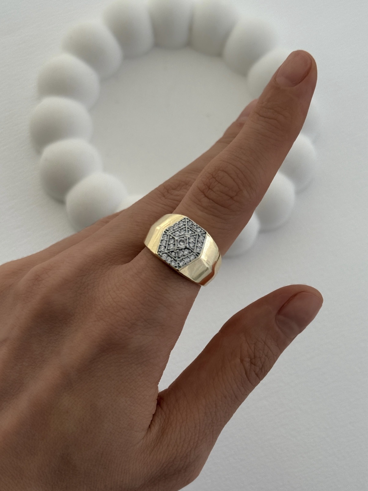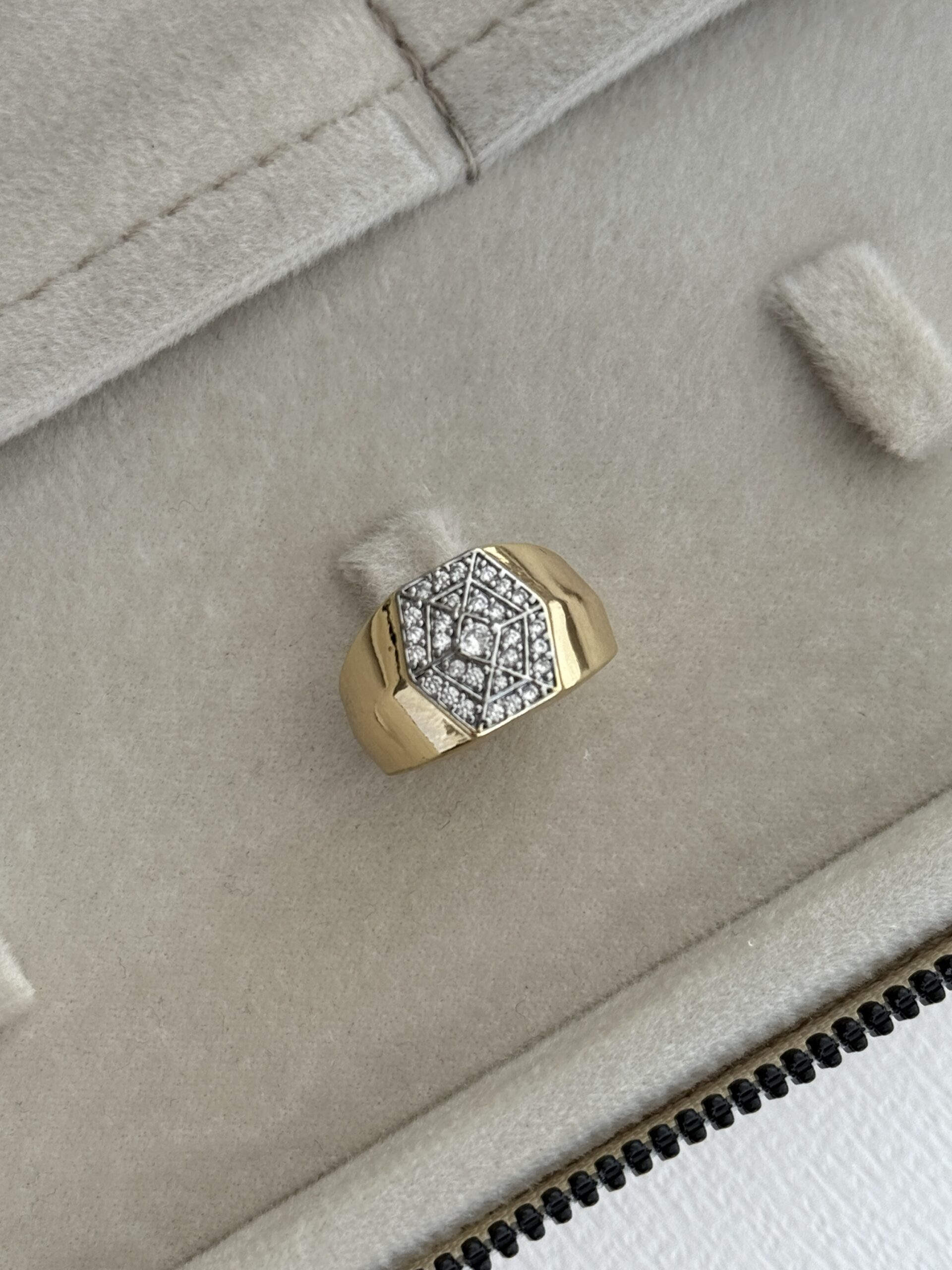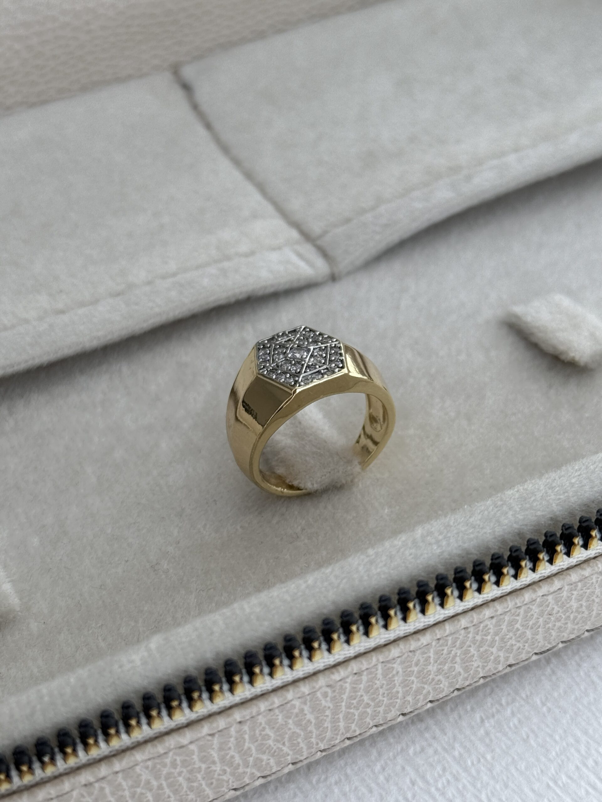 Özel Seri Zirkon Taşlı Altıgen Gold Ayarlanabilir Yüzük