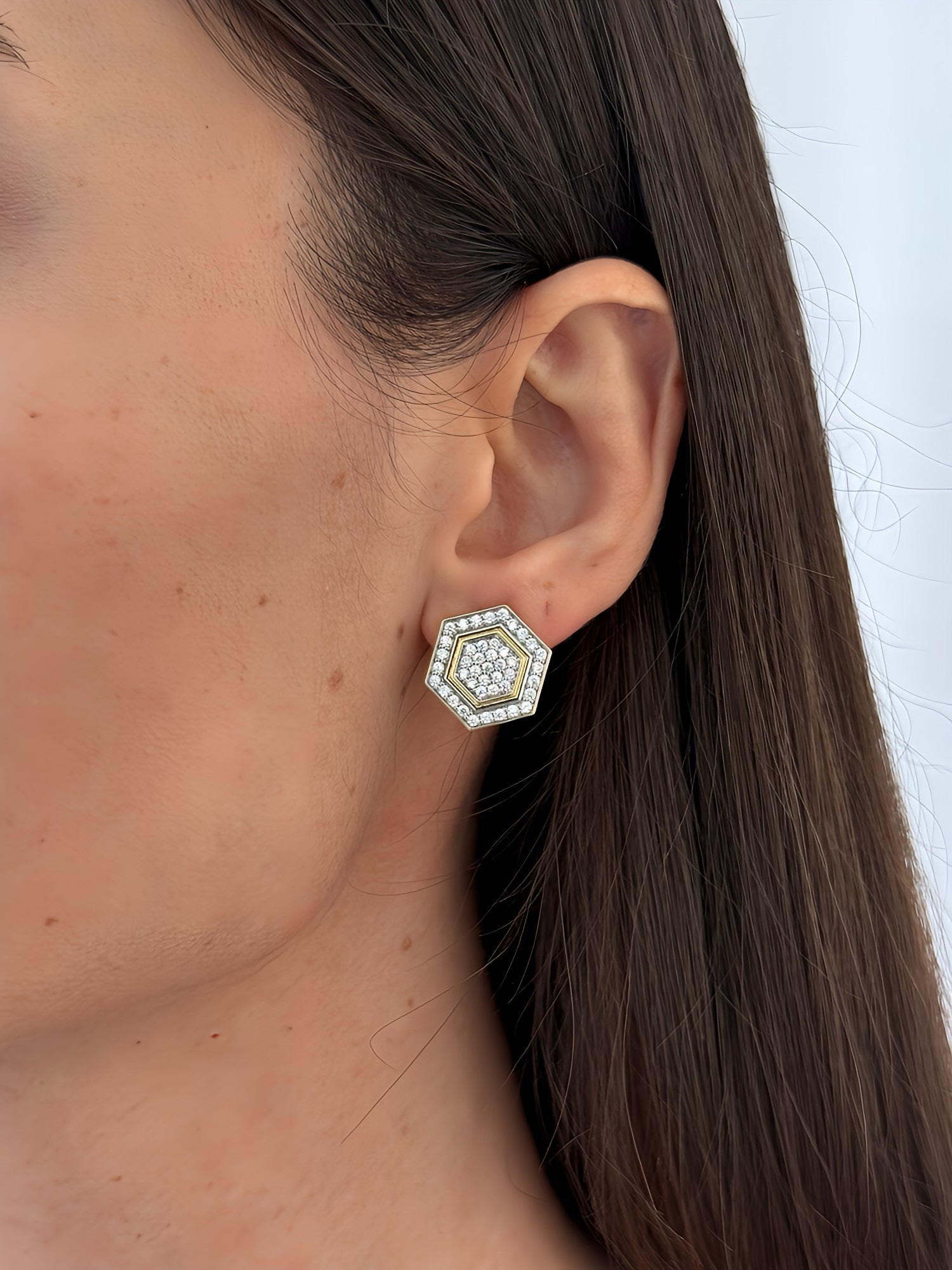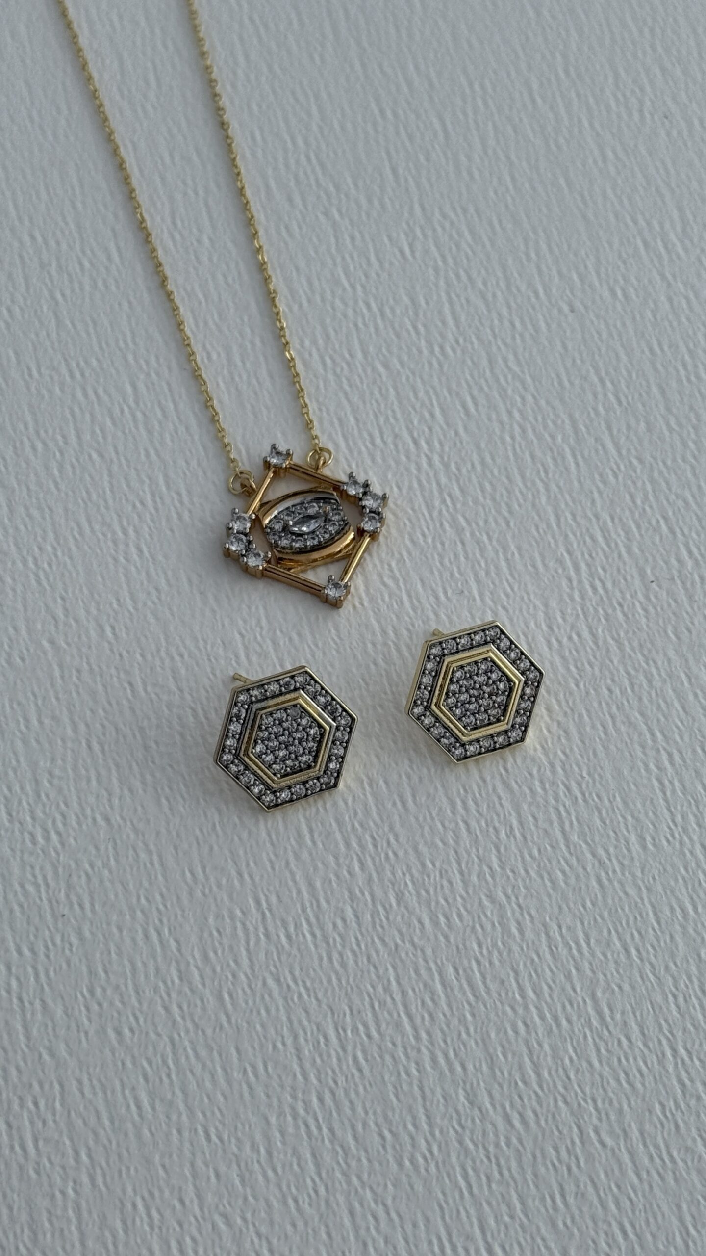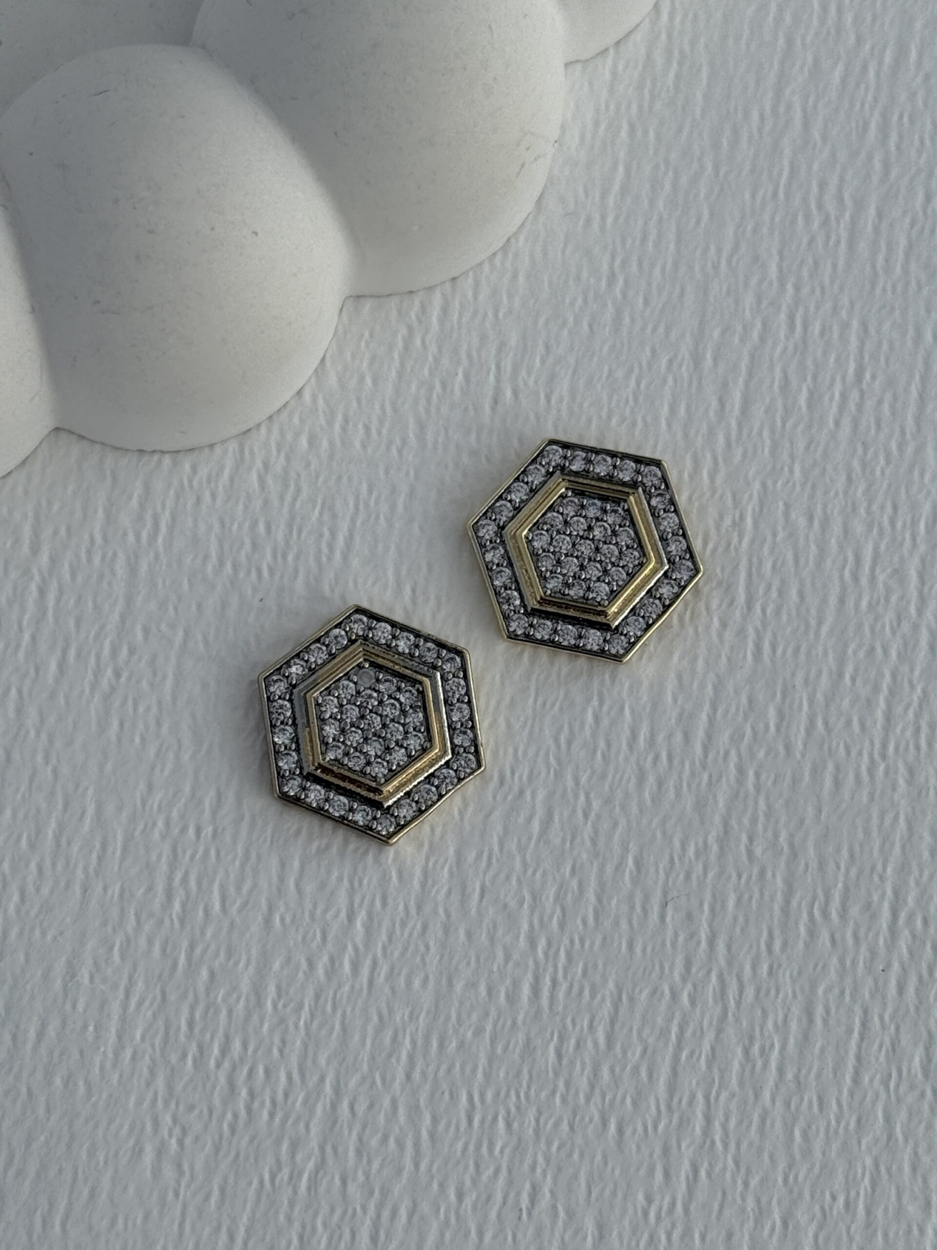 Özel Seri Zirkon Taşlı Altıgen Tasarım Gold Küpe