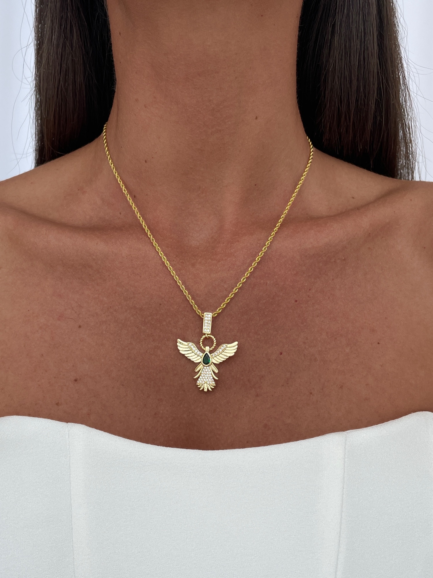 Özel Seri Zirkon Taşlı Anka Kuşu Marka Gold Kolye