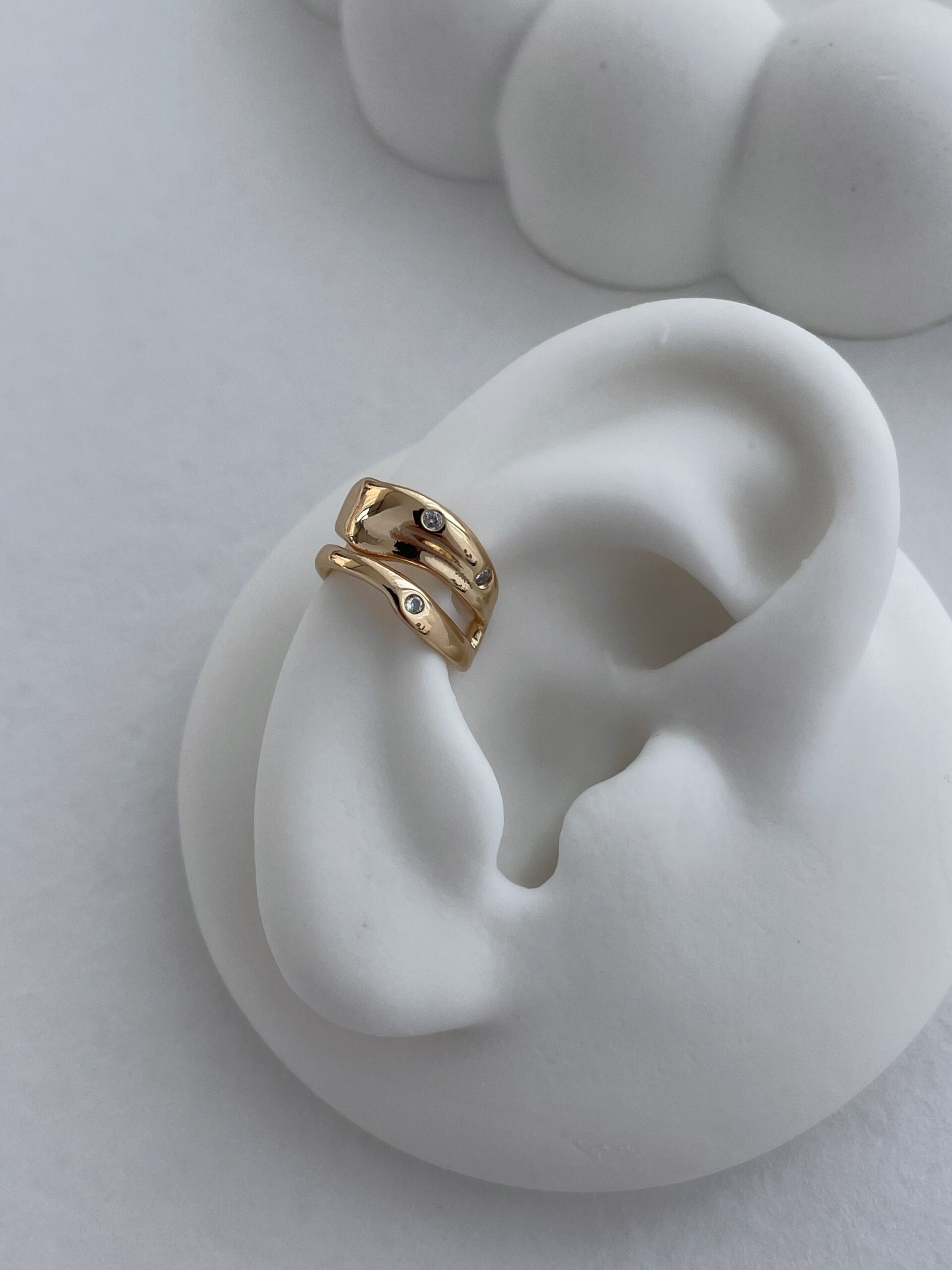 Özel Seri Zirkon Taşlı Asimetrik Desen Gold Earcuff
