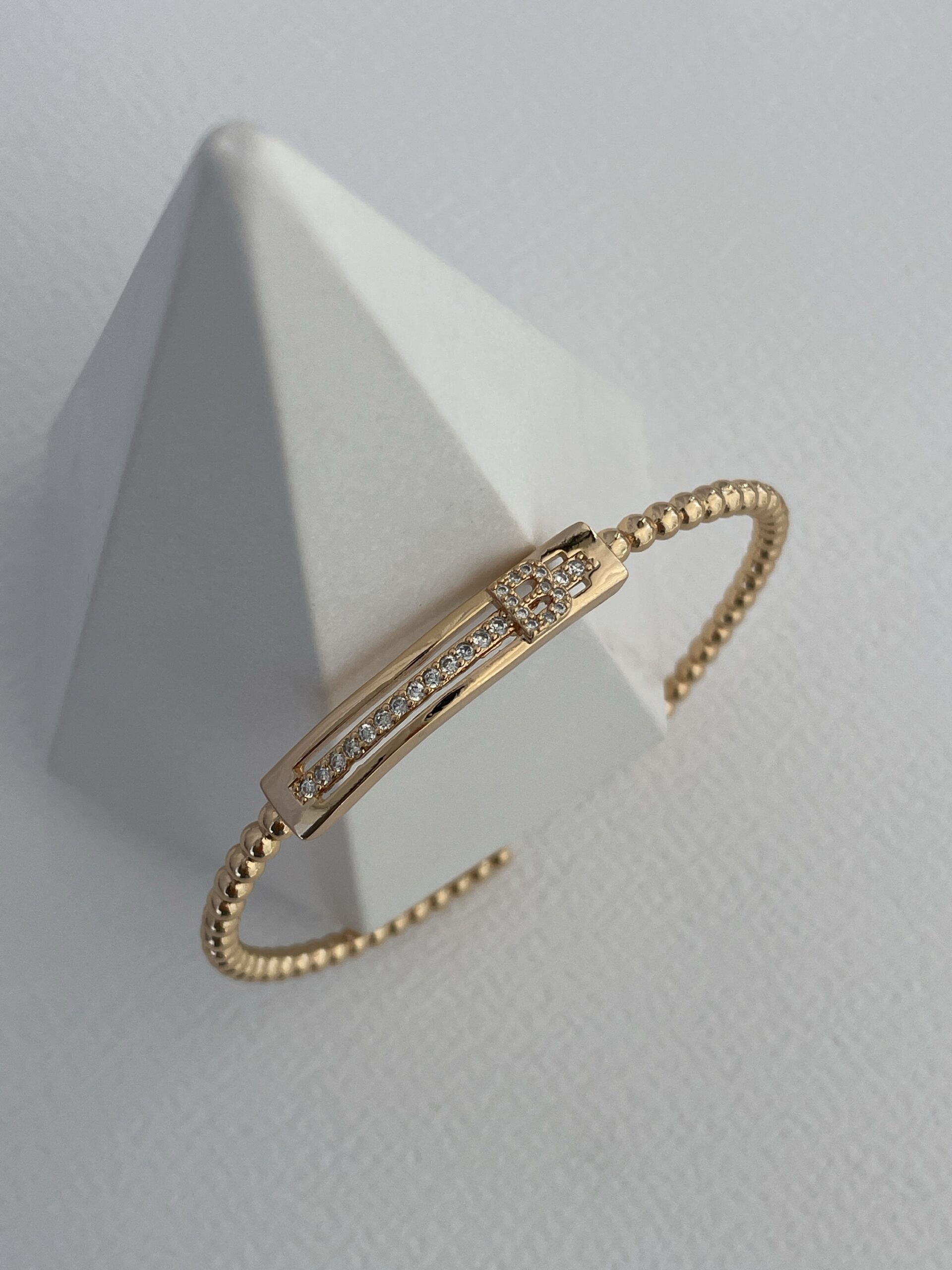 Özel Seri Zirkon Taşlı B Harf Gold Ayarlanabilir Bileklik