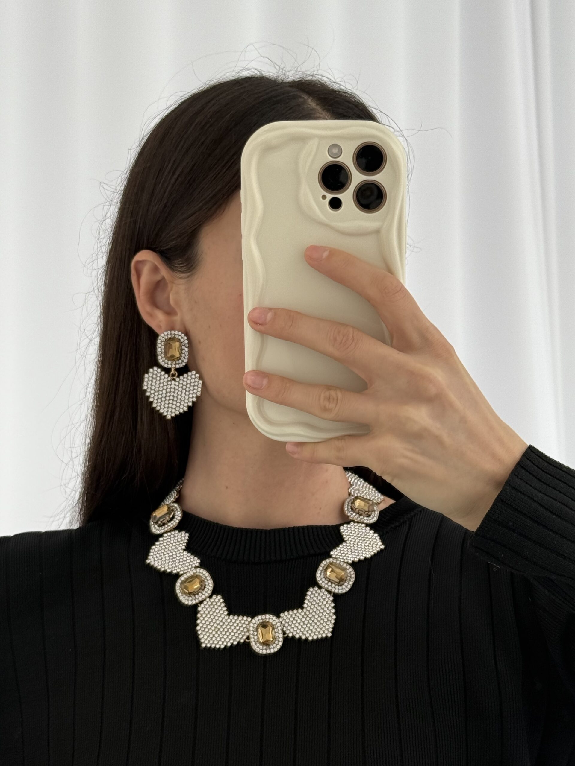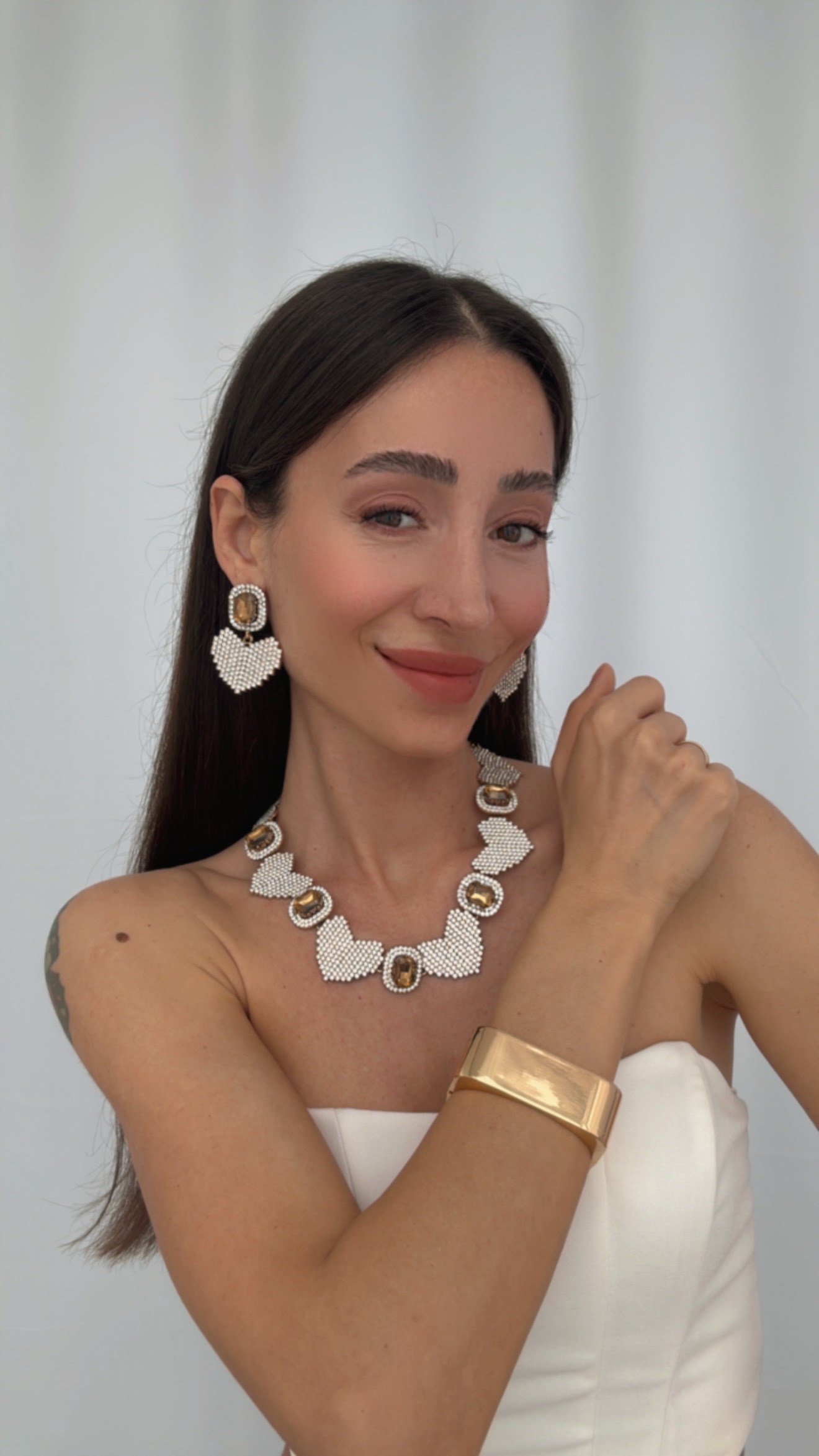 Özel Seri Zirkon Taşlı Baget Model Gold Kalp Kolye