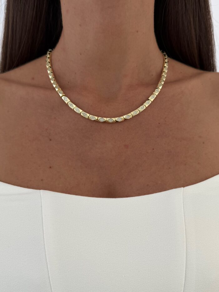 Özel Seri Zirkon Taşlı Baklava Desen 14k Gold Kolye