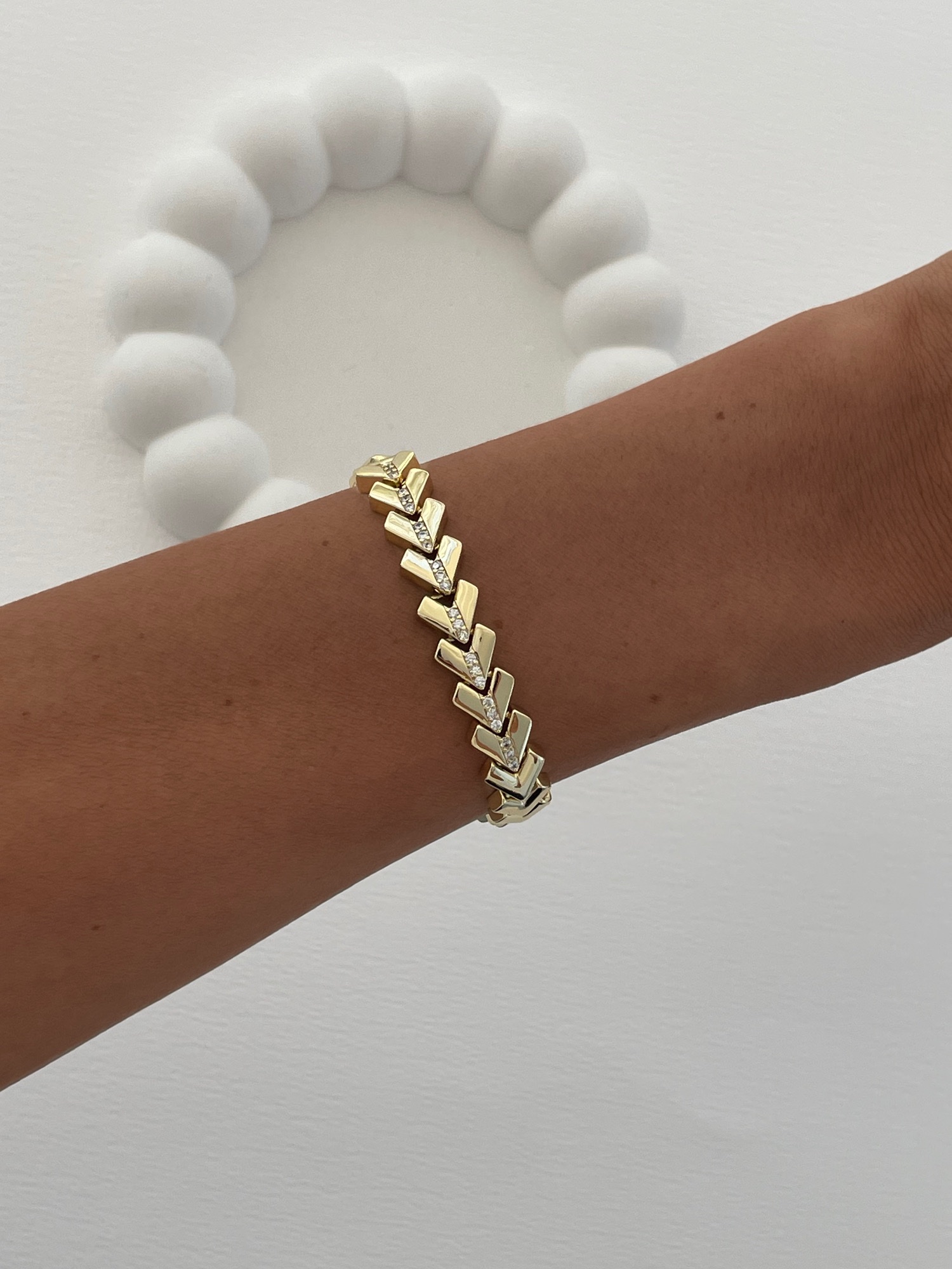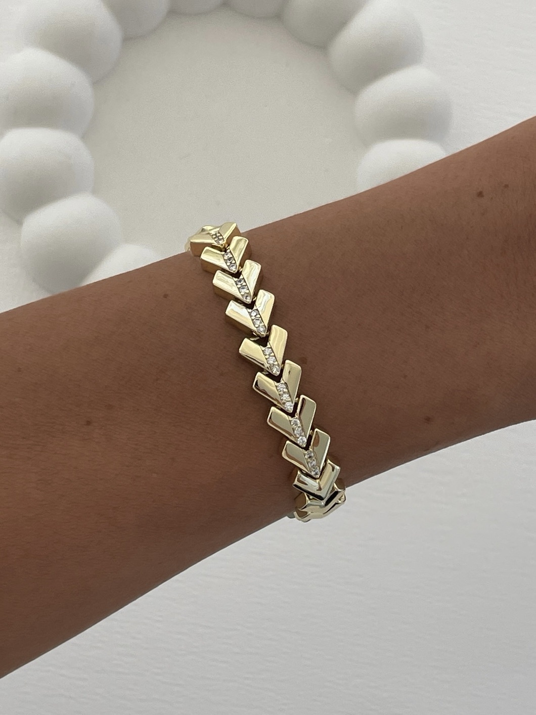 Özel Seri Zirkon Taşlı Başak Tasarım Gold Bileklik