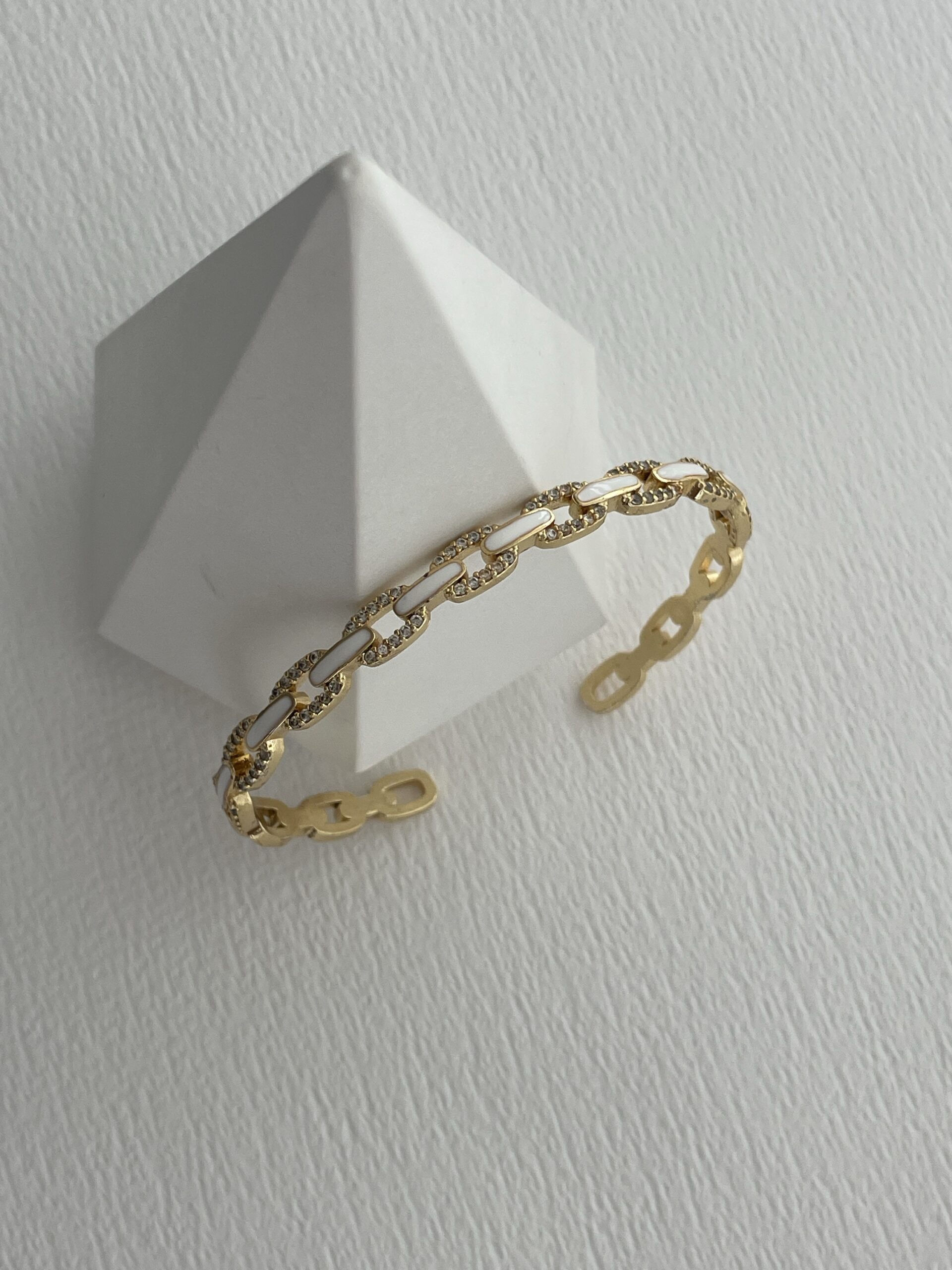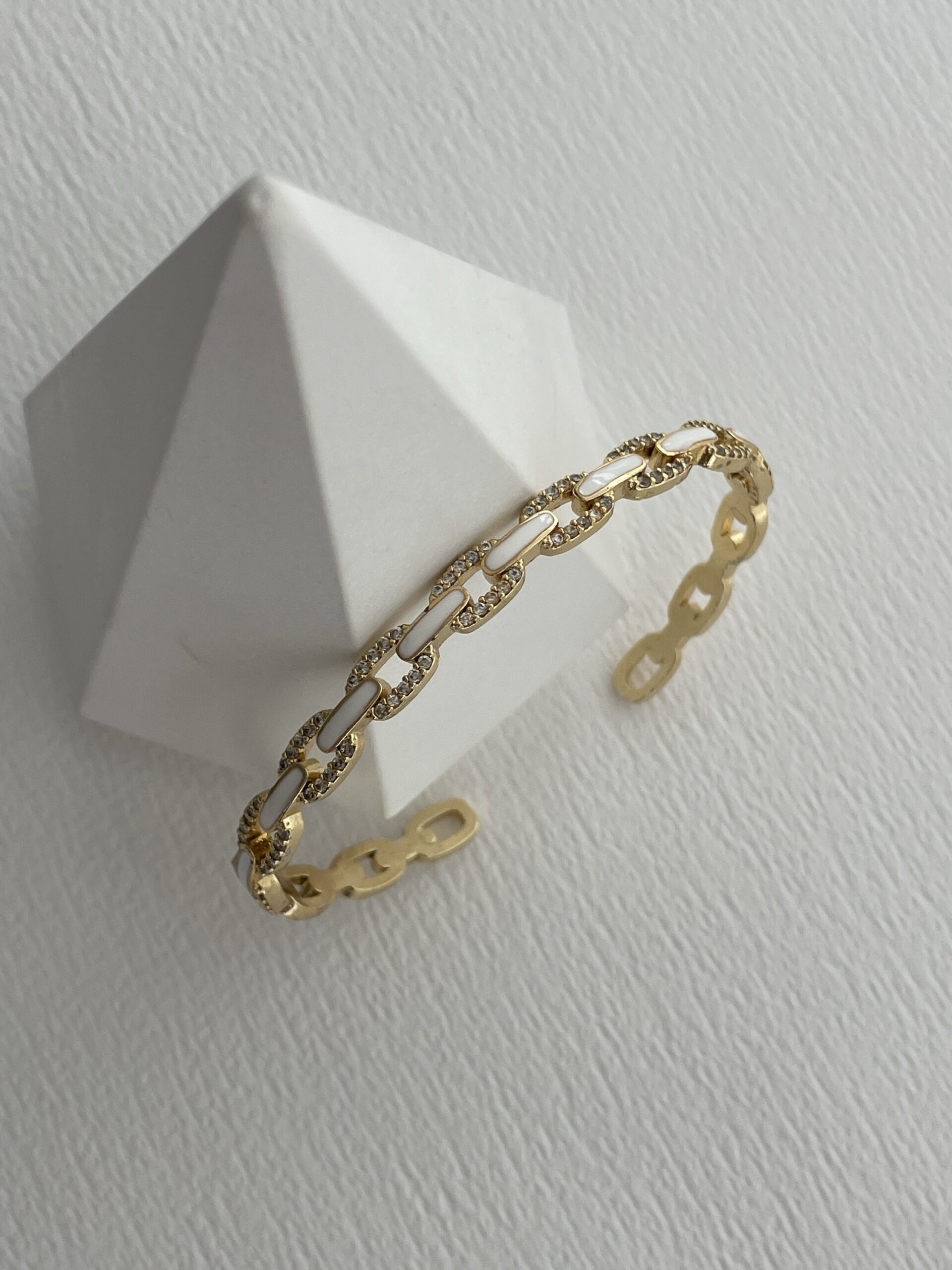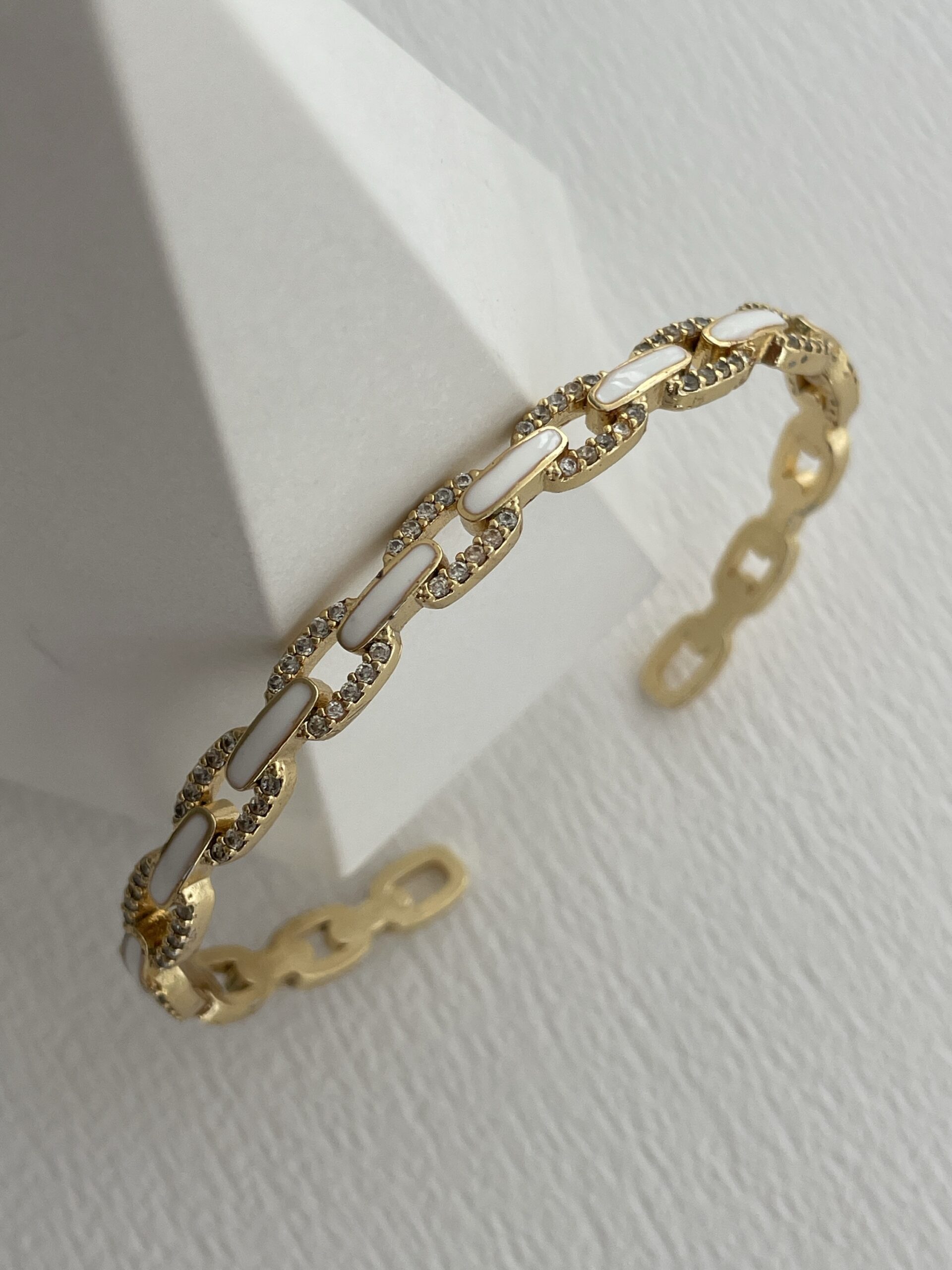 Özel Seri Zirkon Taşlı Beyaz Mineli Ayarlanabilir Gold Bileklik