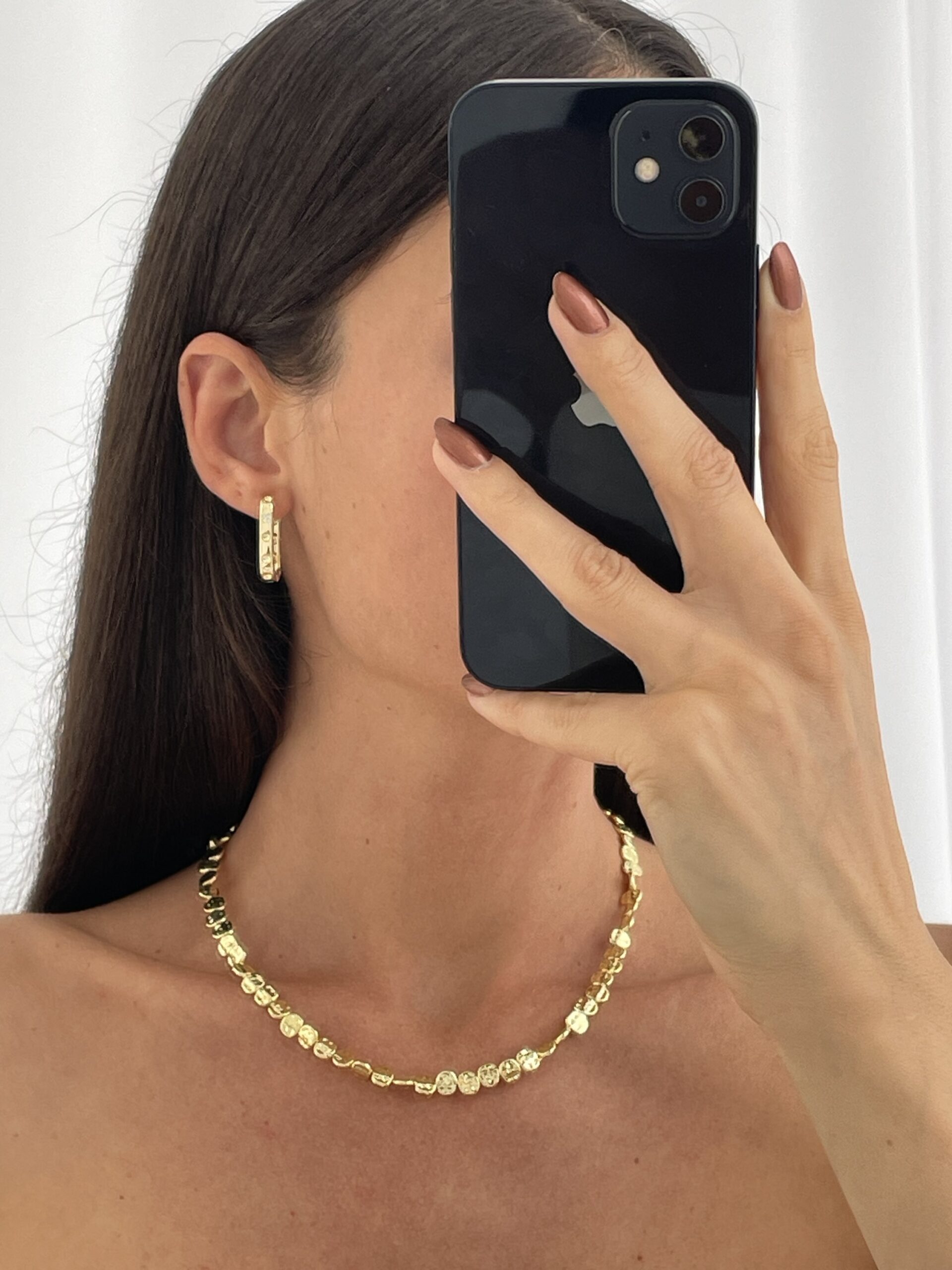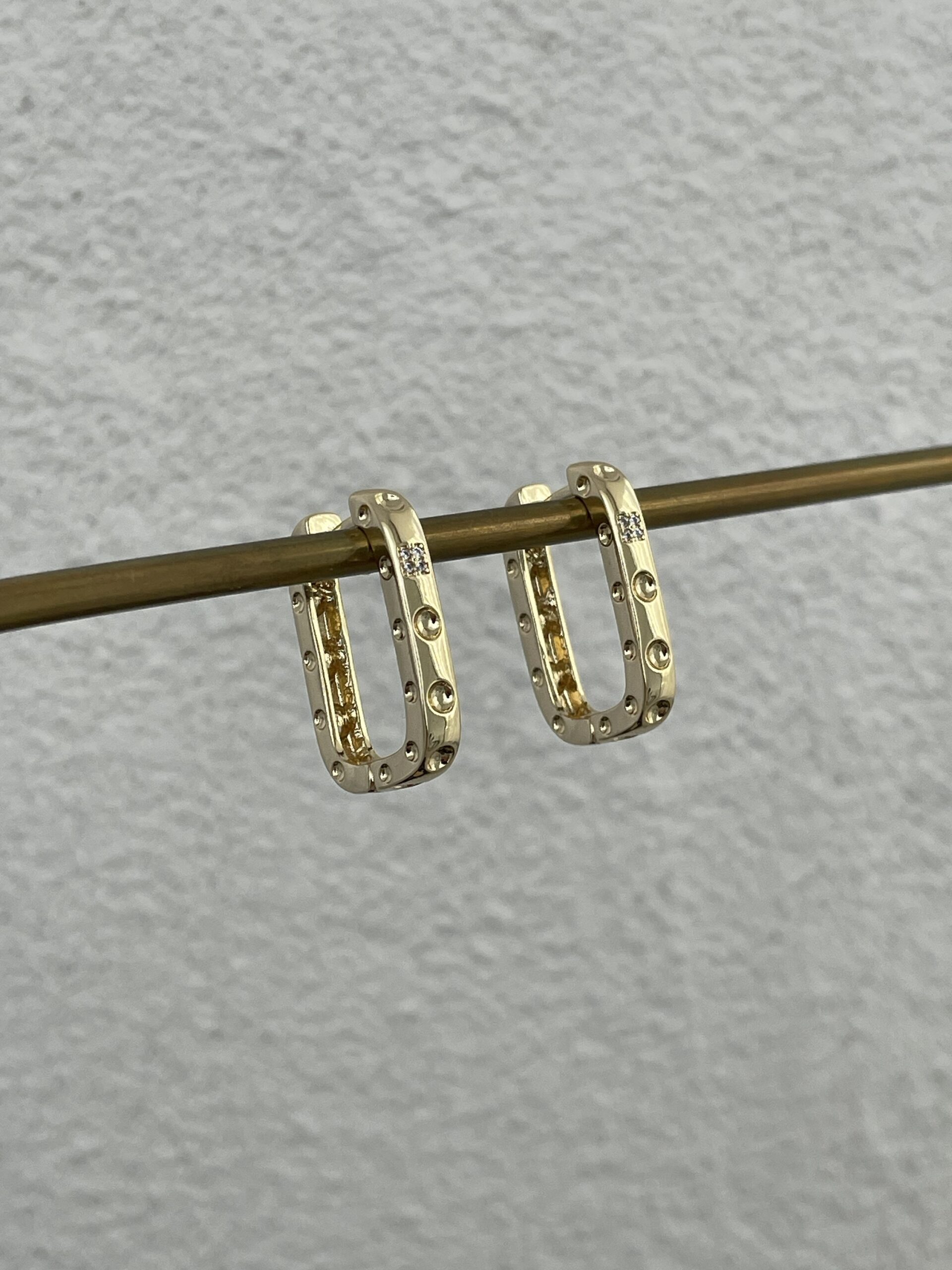 Özel Seri Zirkon Taşlı Büyük Dikdörtgen Gold Küpe