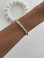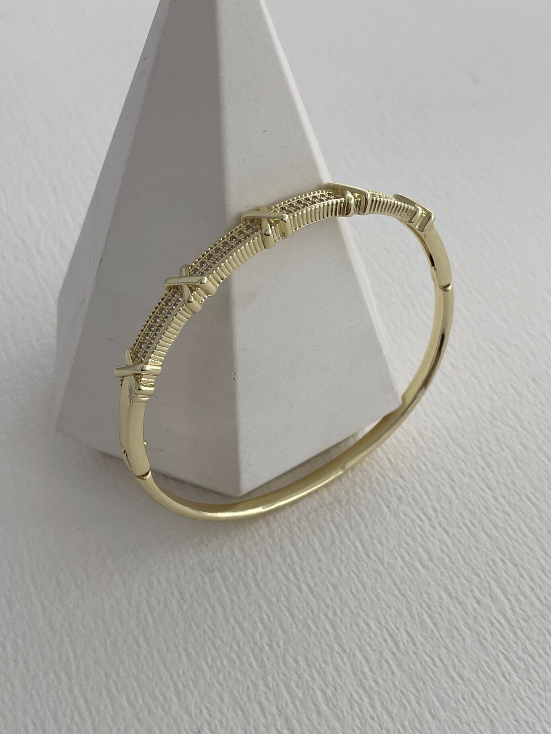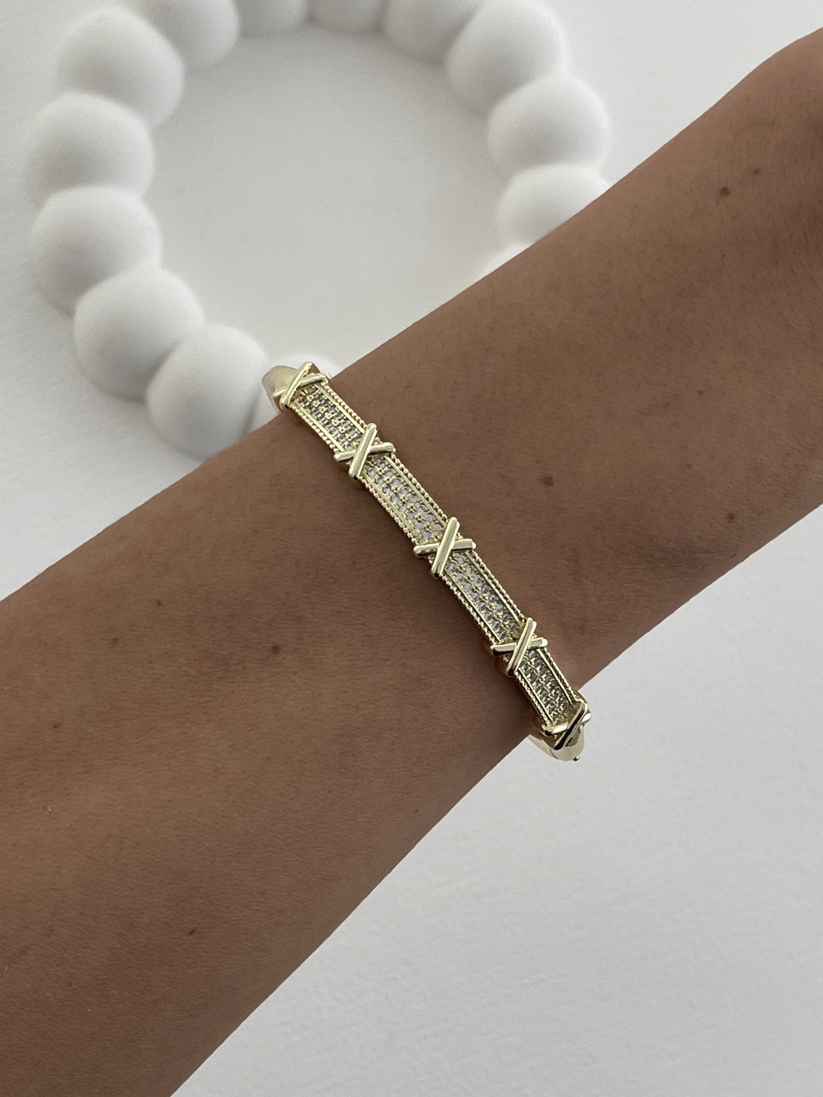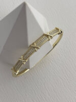 Özel Seri Zirkon Taşlı Büyük X Tasarım Gold Kelepçe Bileklik