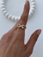 Özel Seri Zirkon Taşlı Çapraz Kemik Tasarım Ayarlanabilir Gold Yüzük