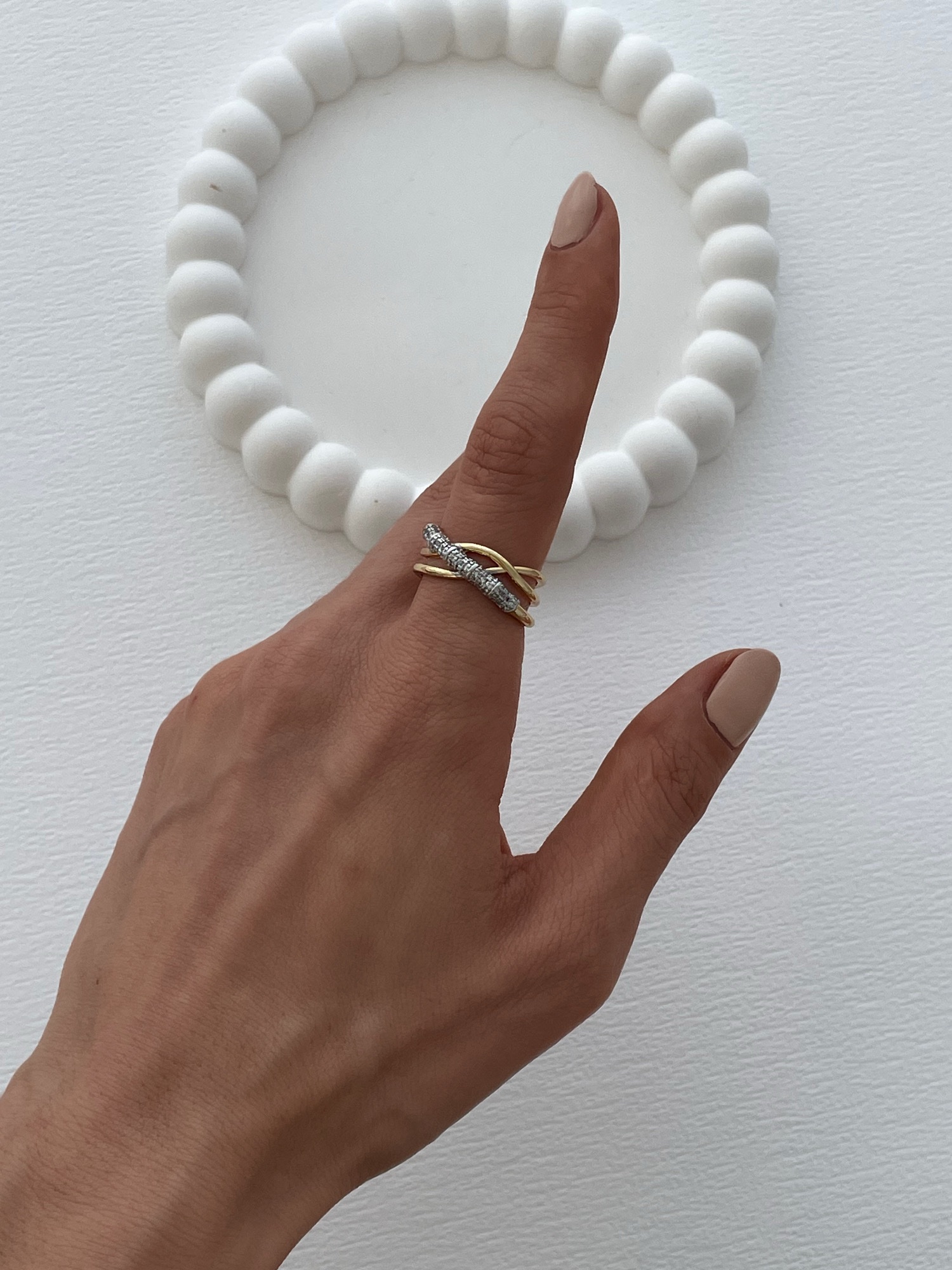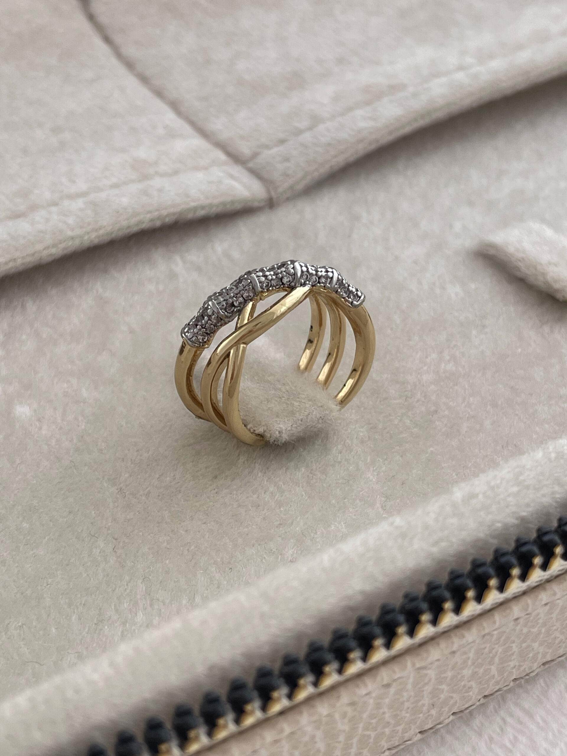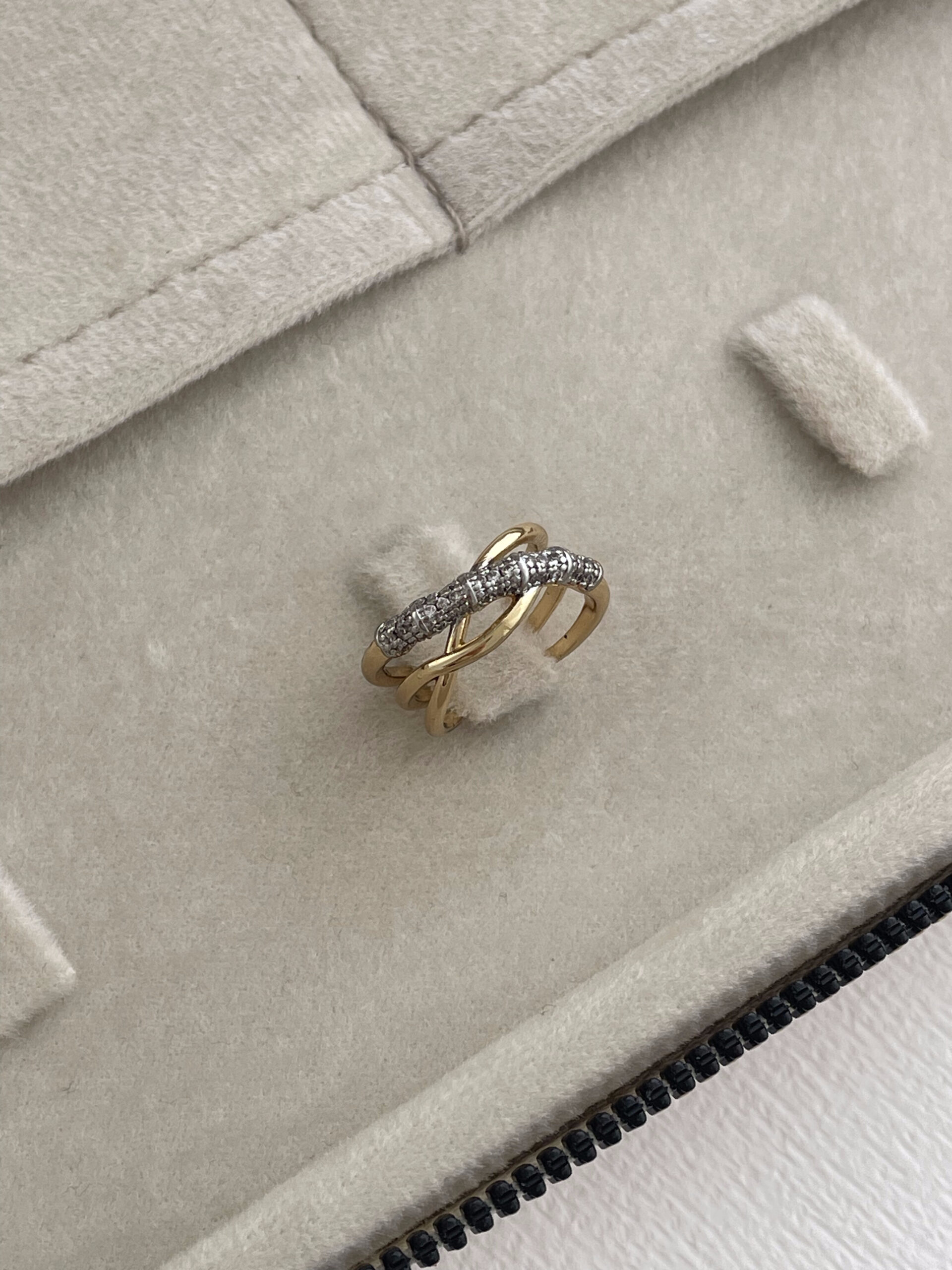 Özel Seri Zirkon Taşlı Çapraz Tasarım Ayarlanabilir Gold Yüzük