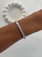 Özel Seri Zirkon Taşlı Çerçeveli Kare Gümüş Shiny Bileklik