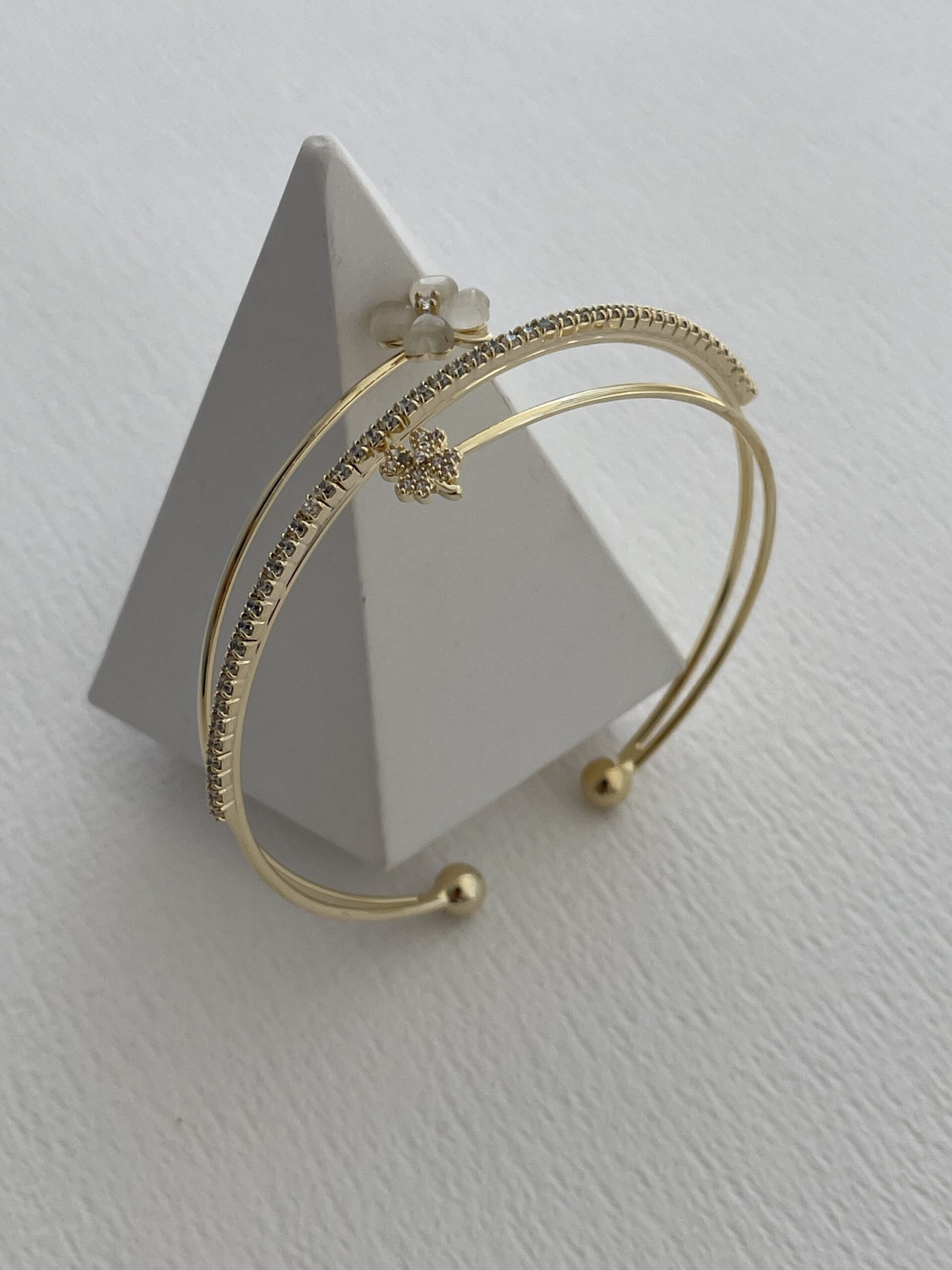 Özel Seri Zirkon Taşlı Çiçek Tasarım Gold Ayarlanabilir Bileklik