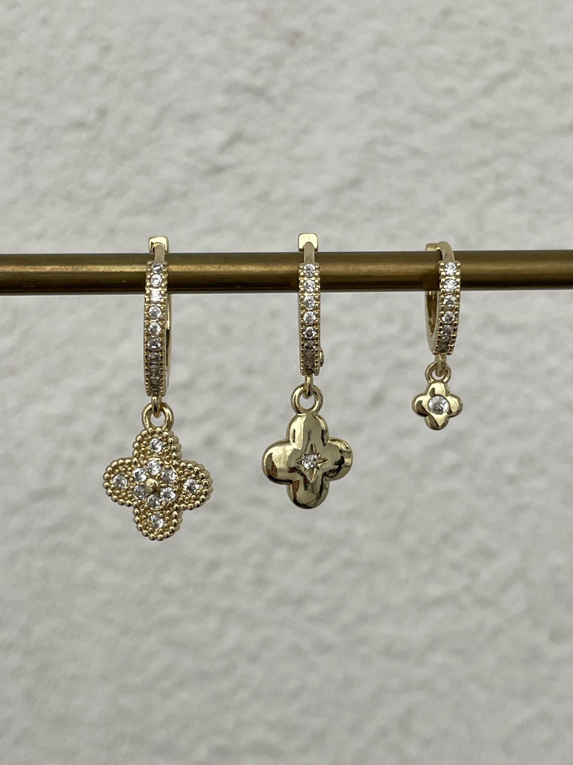 Özel Seri Zirkon Taşlı Çiçek Üçlü Halka Gold Küpe Seti