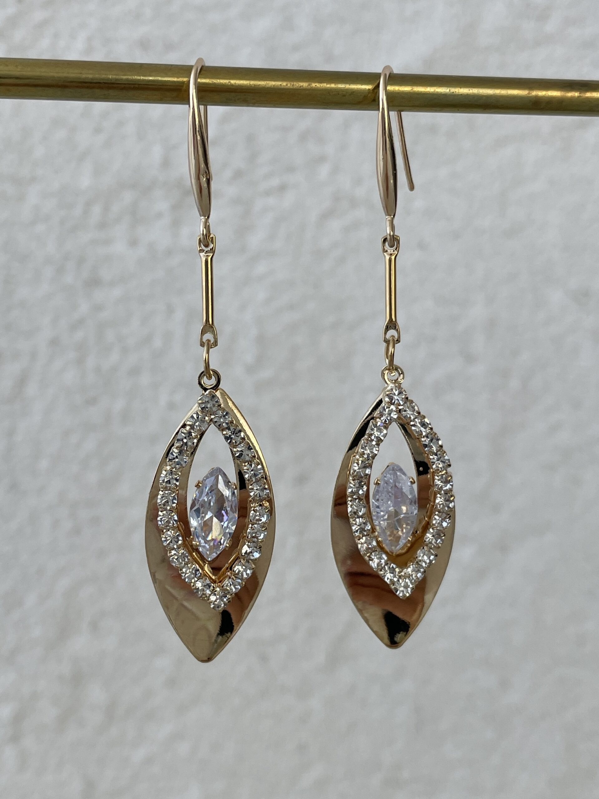 Özel Seri Zirkon Taşlı Çift Kat Yaprak Tasarım Gold Küpe