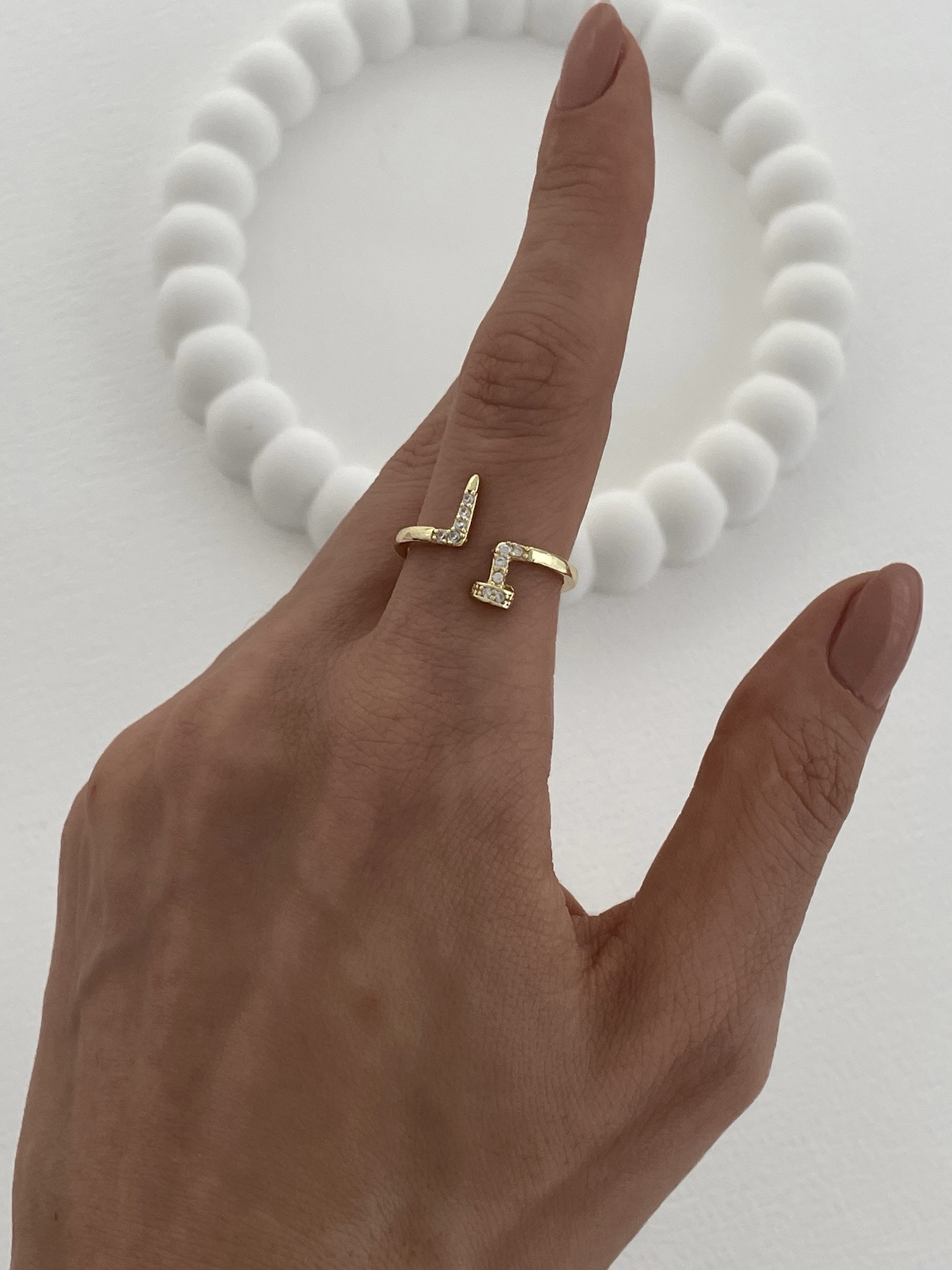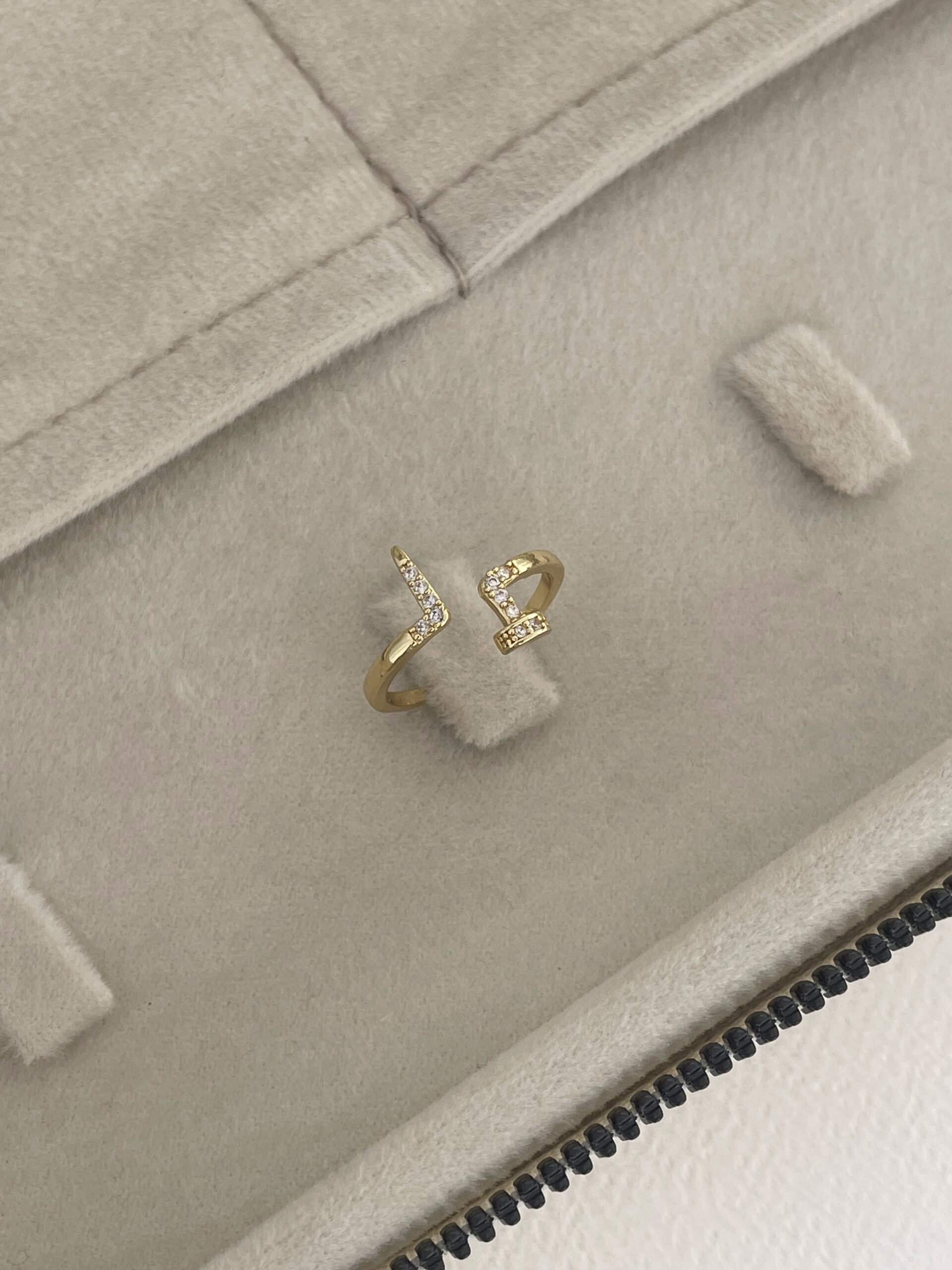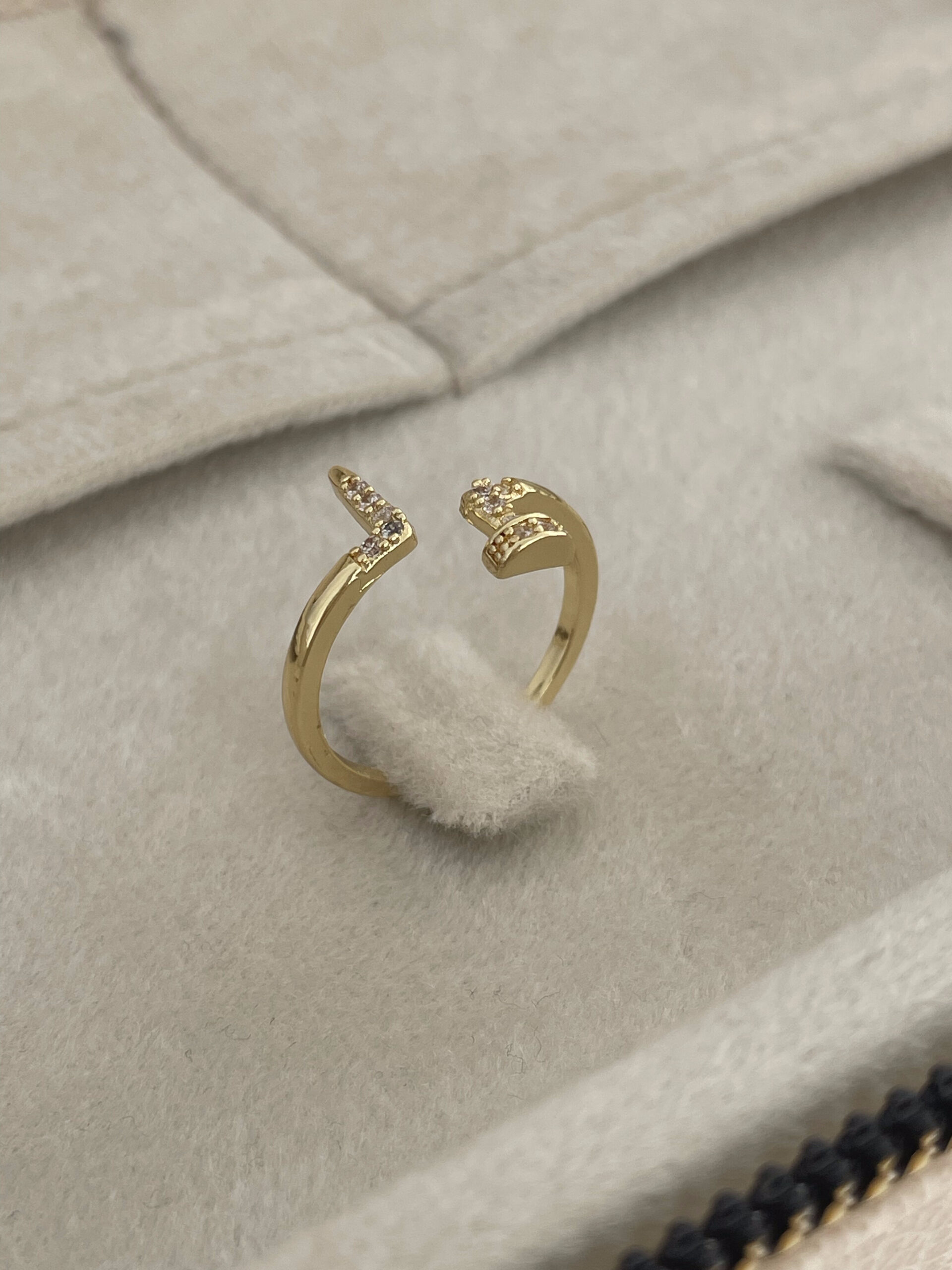 Özel Seri Zirkon Taşlı Çivi Tasarım Ayarlanabilir Gold Yüzük