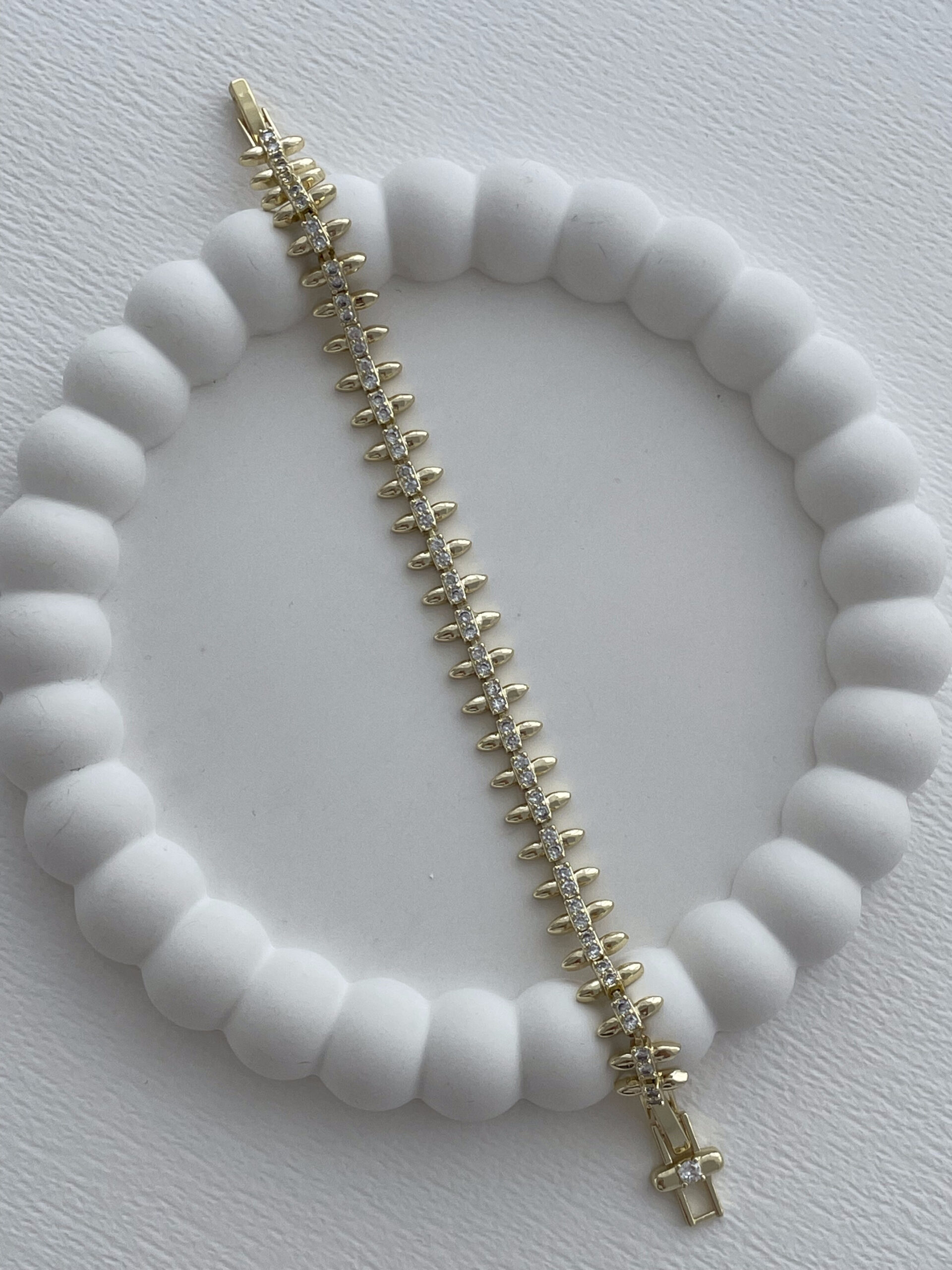 Özel Seri Zirkon Taşlı Çivi Tasarım Gold Bileklik