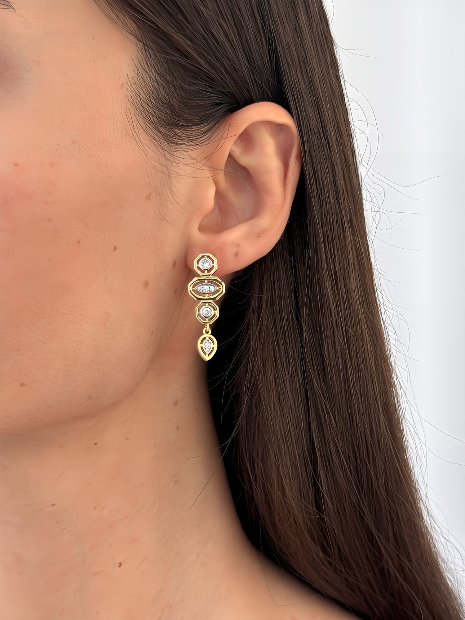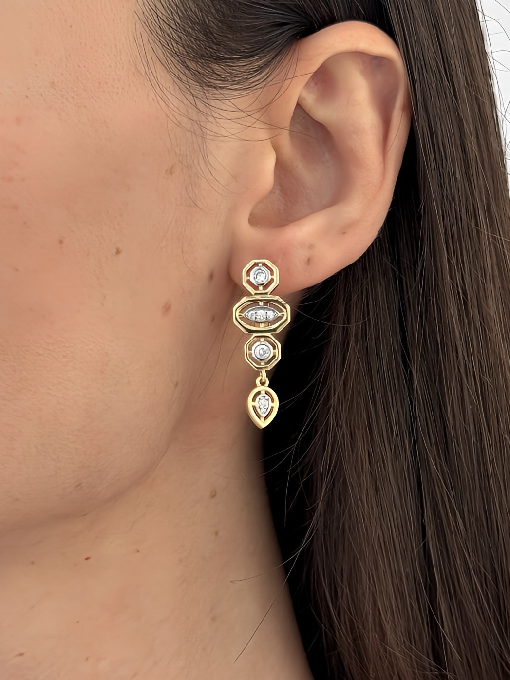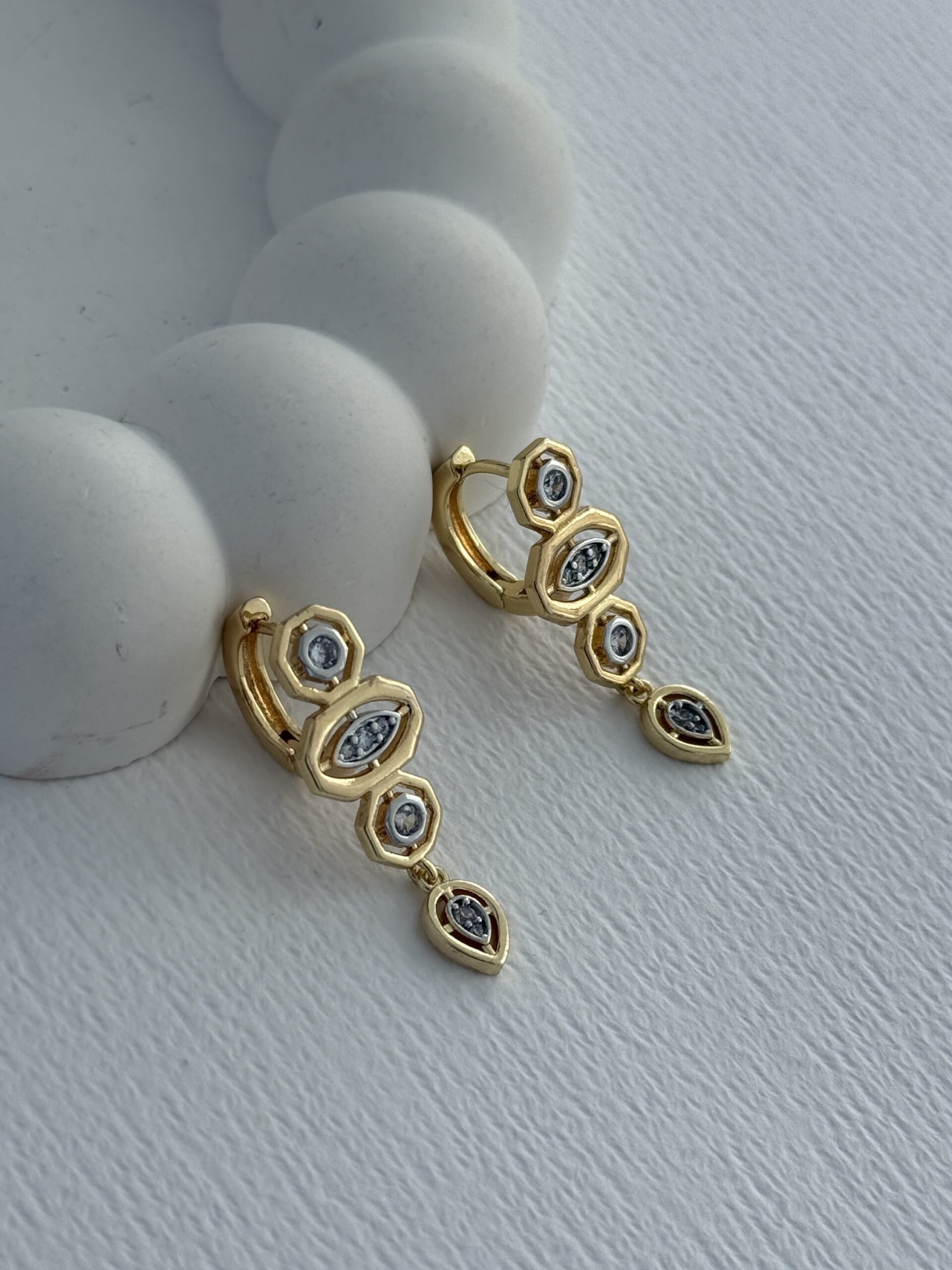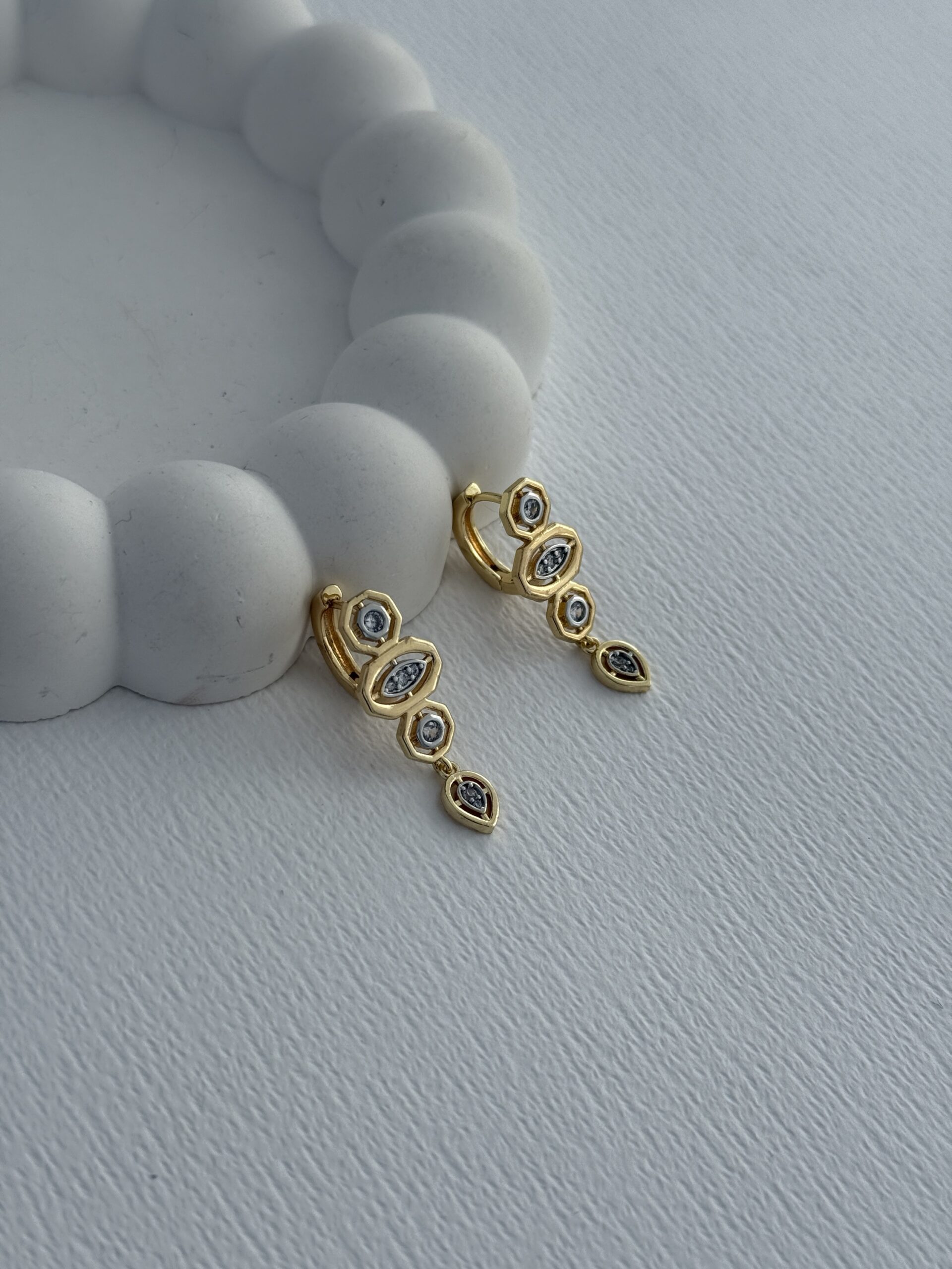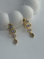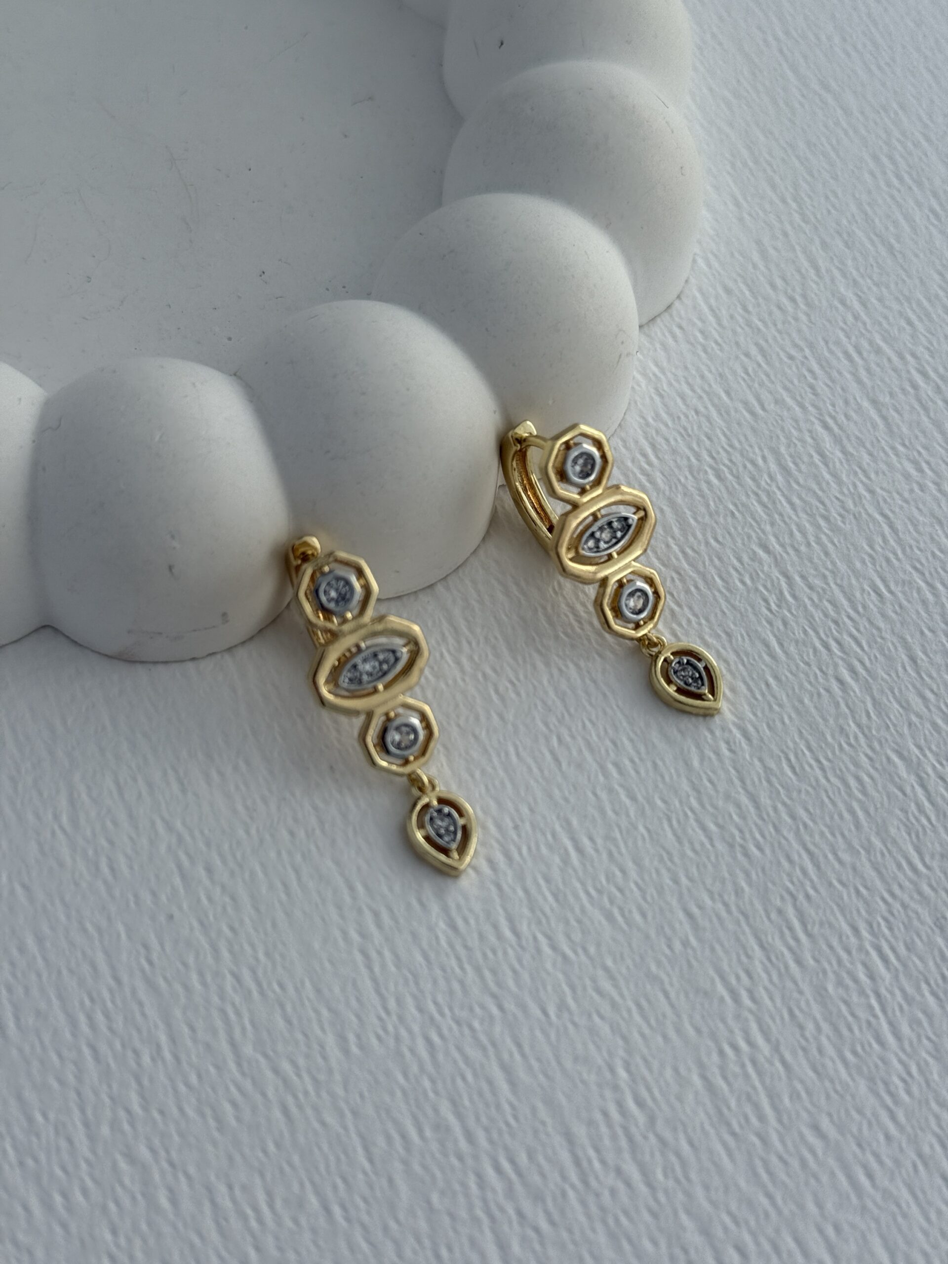 Özel Seri Zirkon Taşlı Çoklu Damla Tasarım Gold Küpe