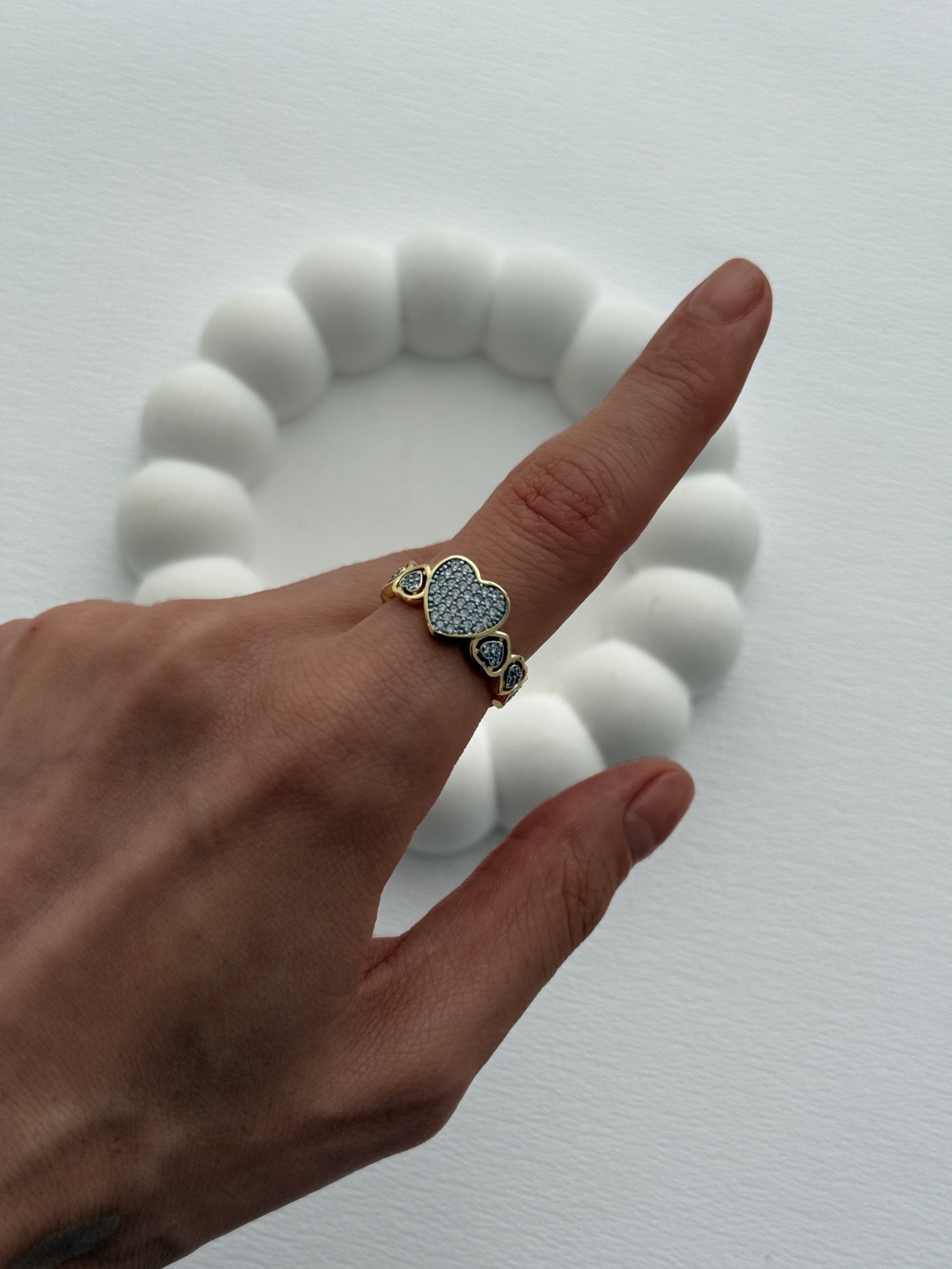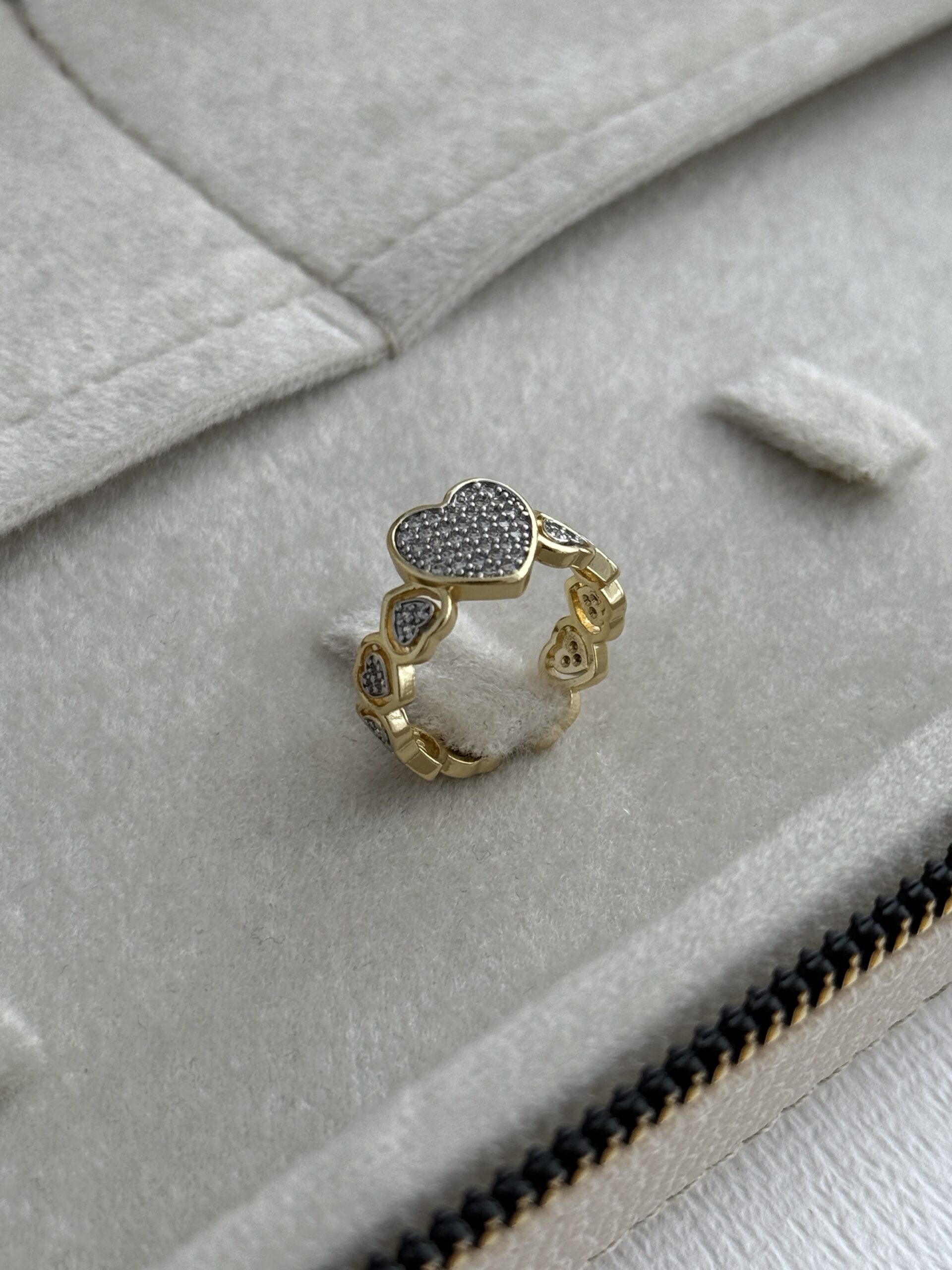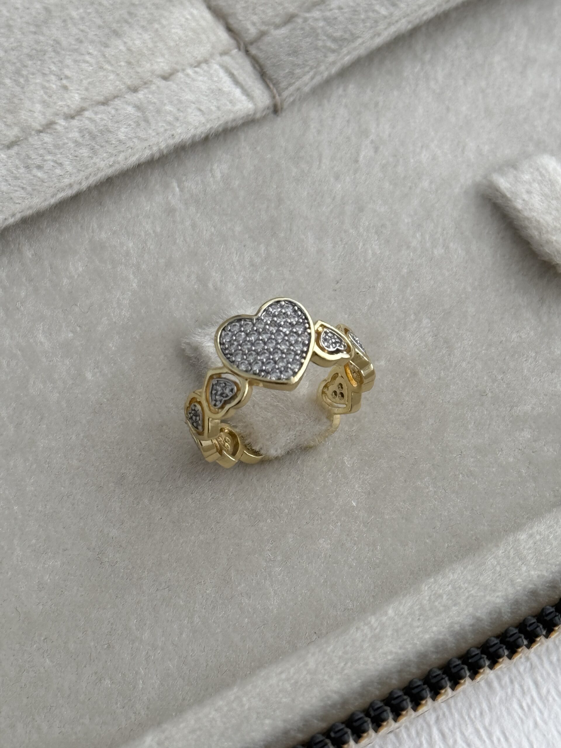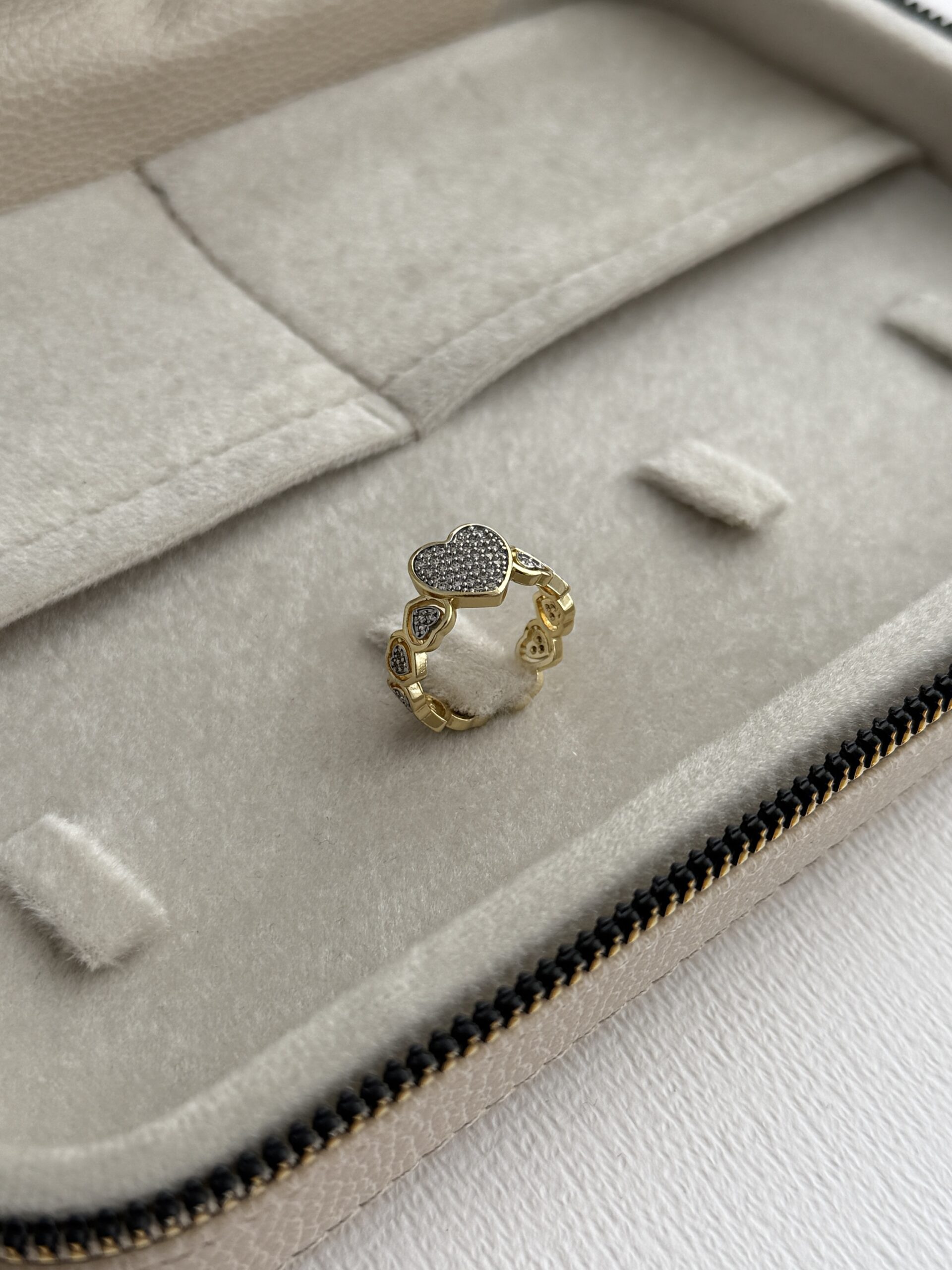 Özel Seri Zirkon Taşlı Çoklu Kalp Tasarım Ayarlanabilir Gold Yüzük