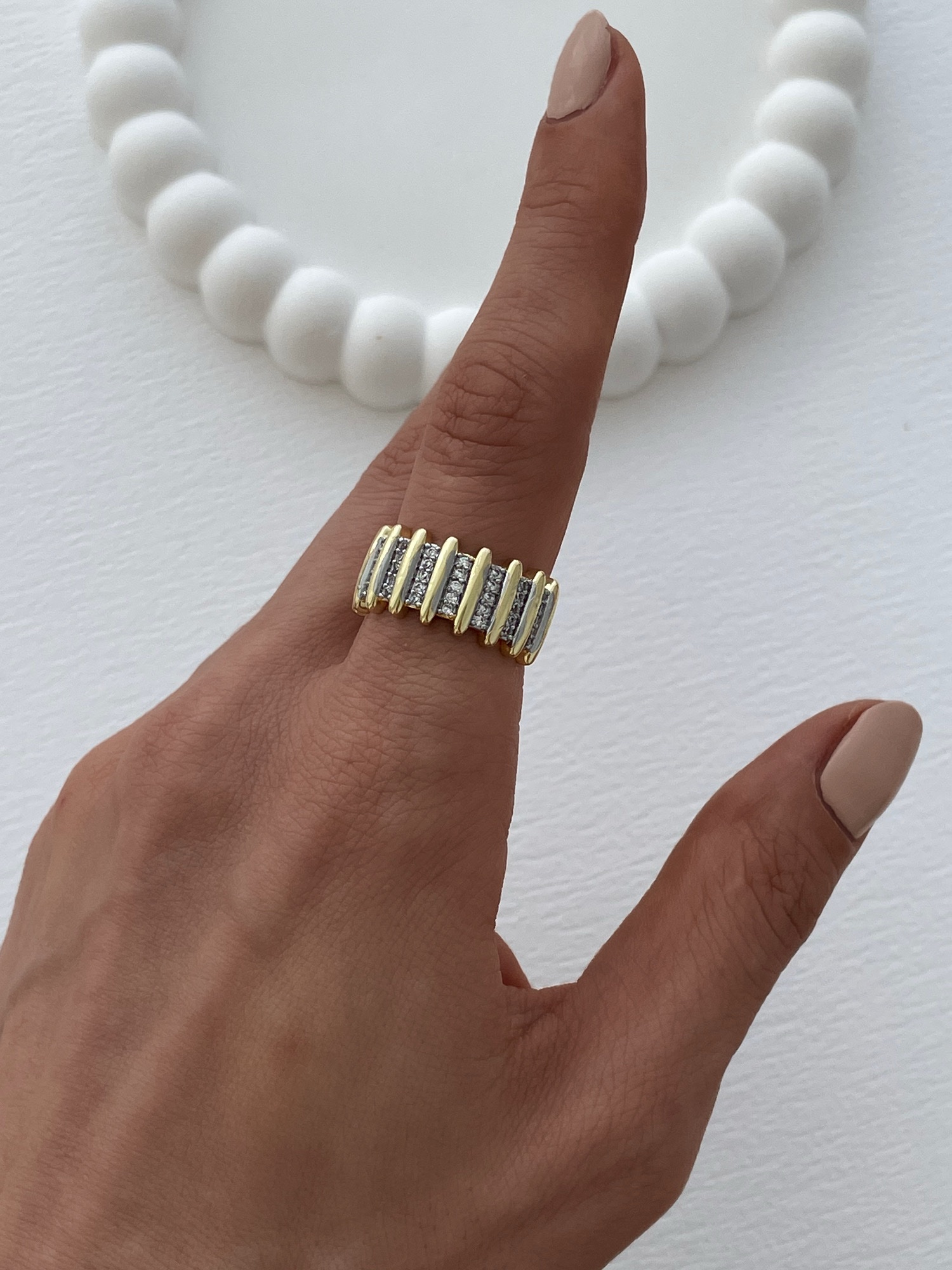 Özel Seri Zirkon Taşlı Çubuk Tasarım Ayarlanabilir Gold Yüzük