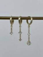 Özel Seri Zirkon Taşlı Çubuk Tasarım Gold Üçlü Küpe Set