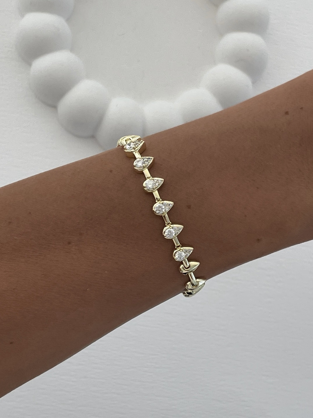 Özel Seri Zirkon Taşlı Damla Tasarım Gold Bileklik